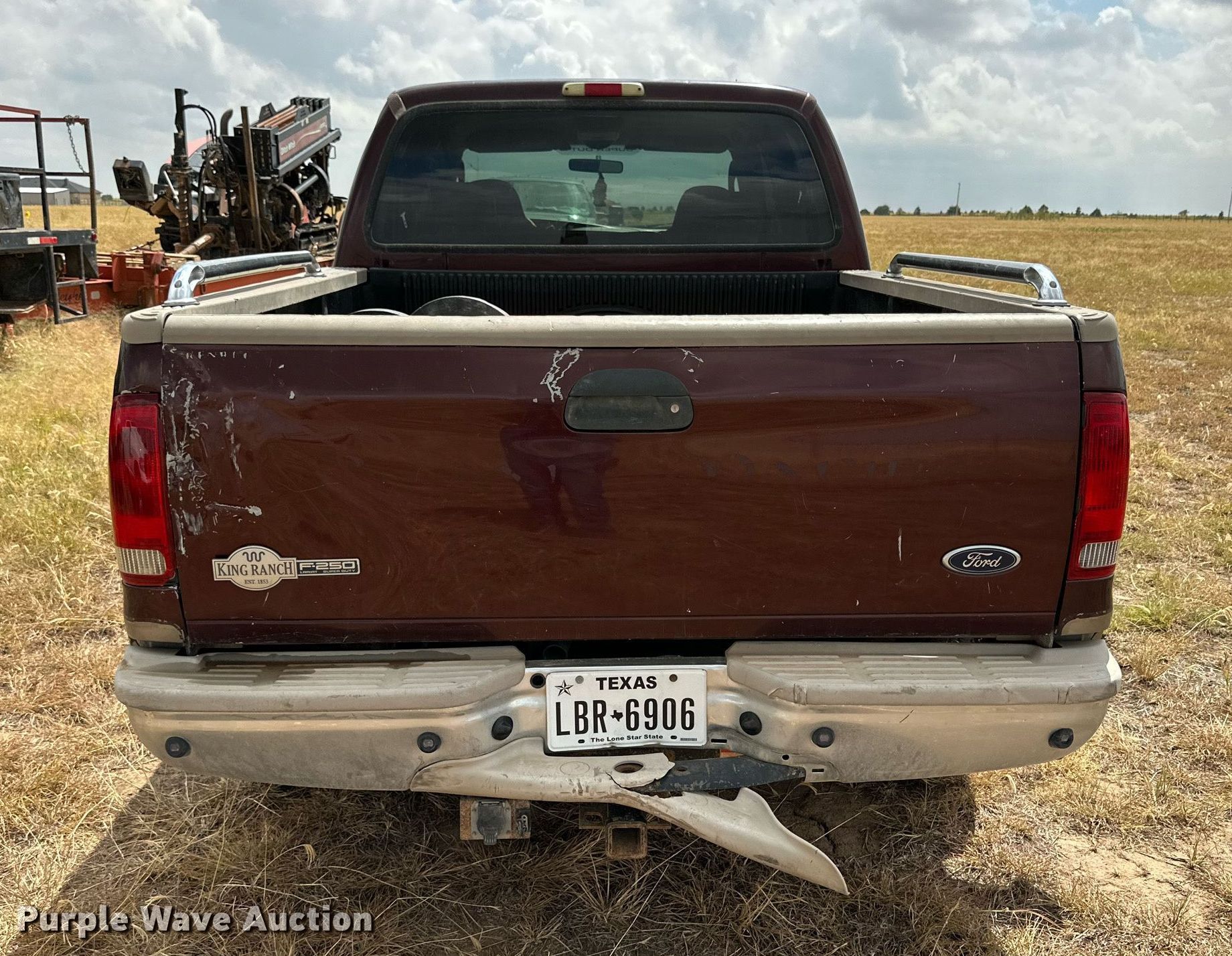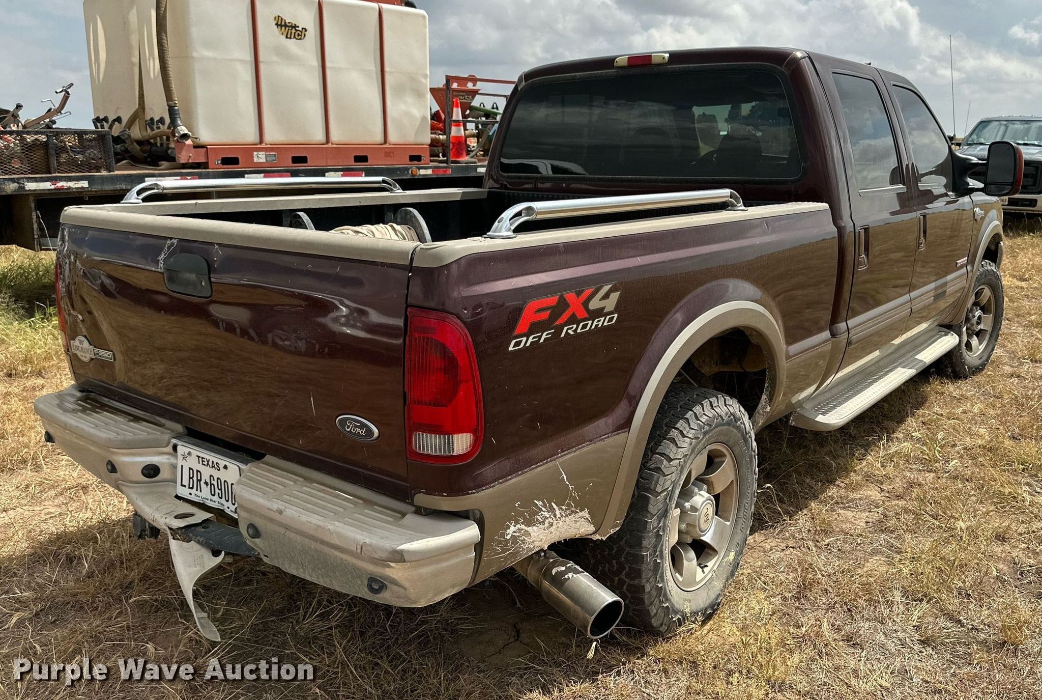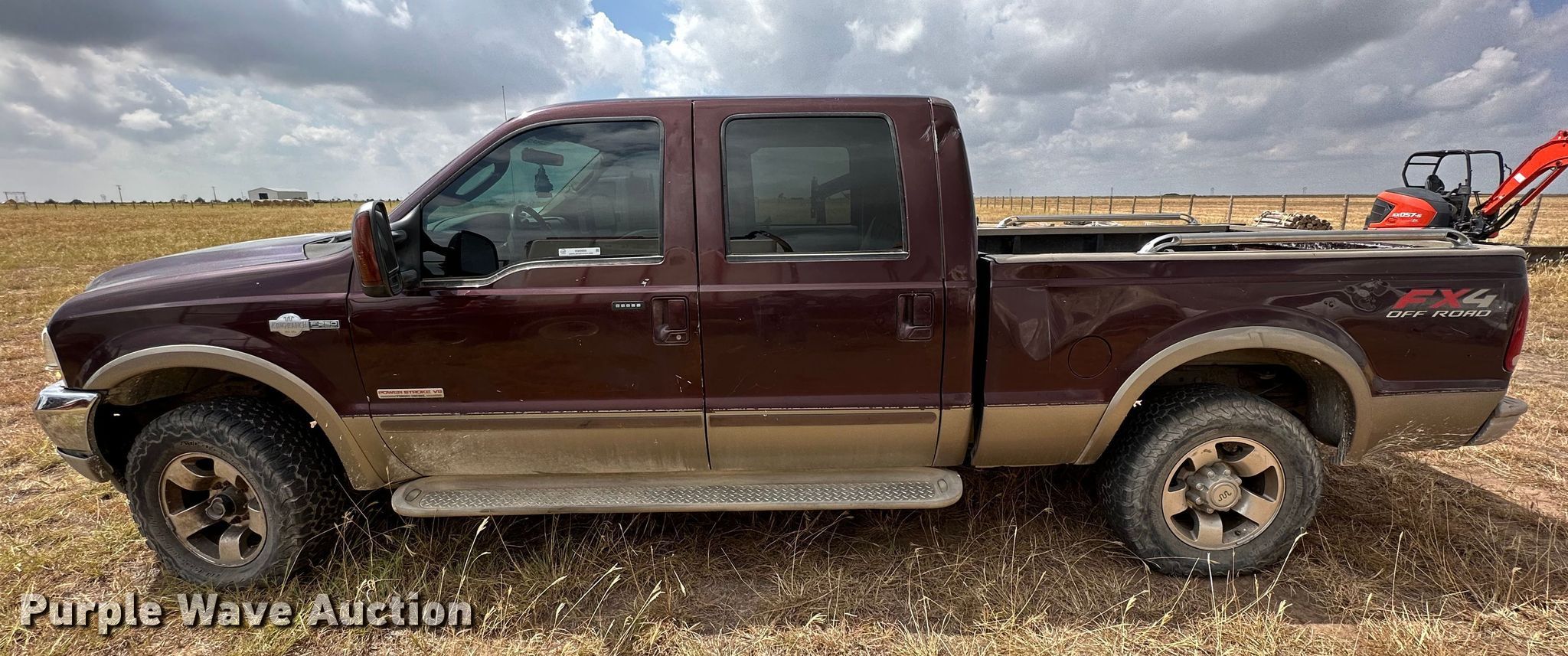 2004 Ford F250 Super Duty Lariat King Ranch Crew Cab pickup truck. Miles: 277,206 on odometer, VIN: 1FTNW21P74EC82576. Engine Displacement: 6.0L V8 OHV, Cylinders: 8, Fuel type: Diesel. Transmission Automatic, Four wheel drive. Interior AC, Heat, Seat: Power driver, Power passenger, Heated mirrors, Power windows, Power locks, Cruise control. Features Hitch: Gooseneck. Tires Size: 275/70R18. Texas title. Title distribution may be delayed up to 14 days from verification of funds. Bar J Enterprises Inc. Farm to Market 2219. Amarillo, TX 79119