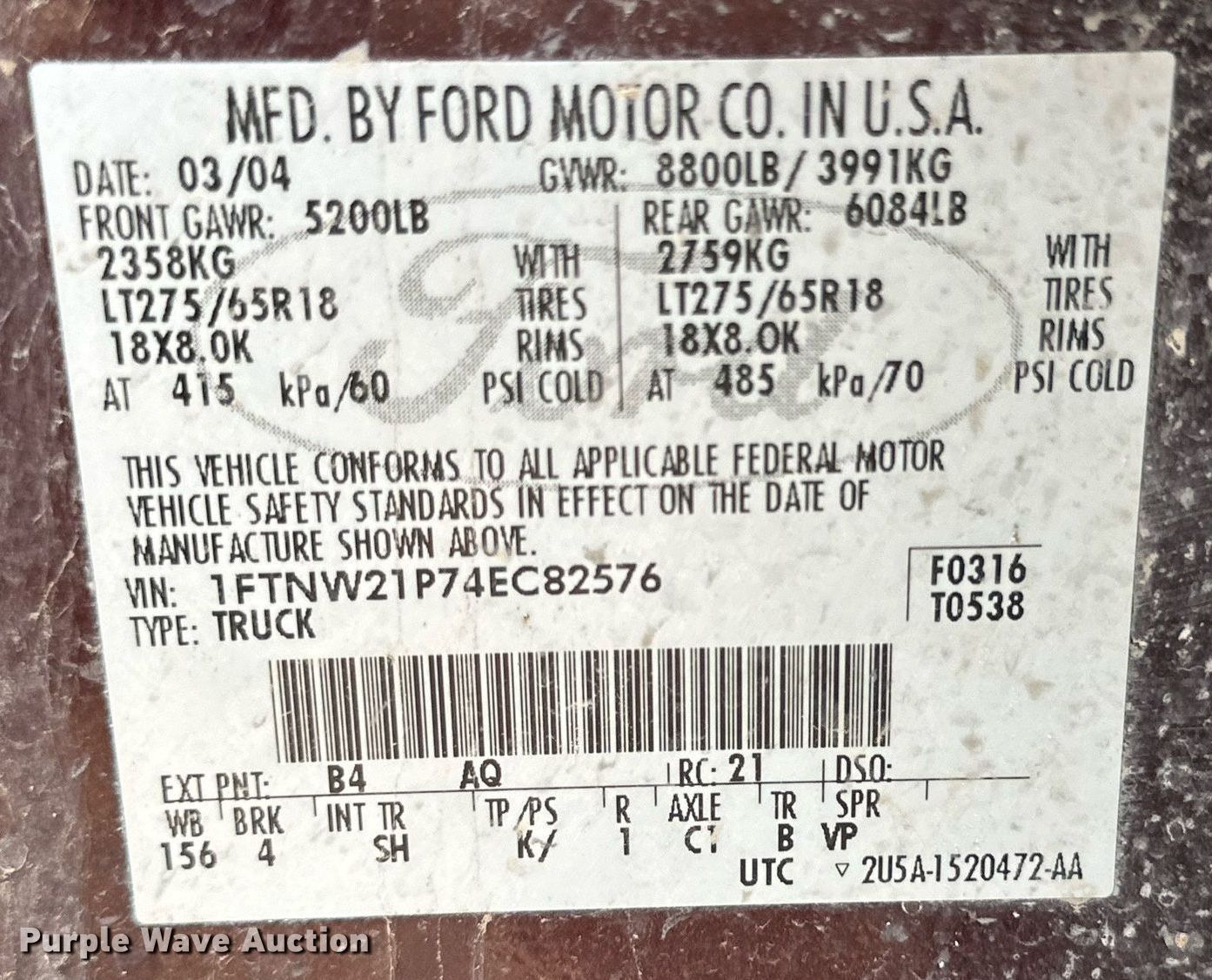 Purple Wave is selling a used 3/4 or 1 Ton Pickup or Van in Texas. This item is a 2004 Ford F250 Super Duty Lariat King Ranch Crew Cab pickup truck with the following: Miles: 277,206 on odometer, VIN: 1FTNW21P74EC82576