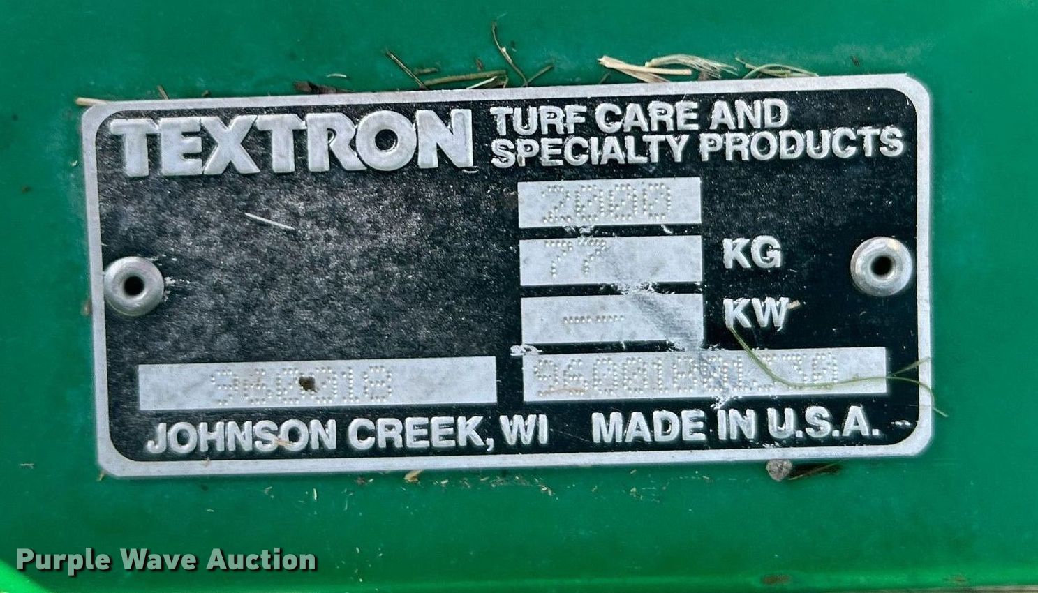 Purple Wave is selling a used Commercial Turf Mower in Oklahoma. This item is a Textron 945015 ZTR lawn mower with the following: Hours: 1,581 on meter, Cutting width: 120", Serial: 94501500269