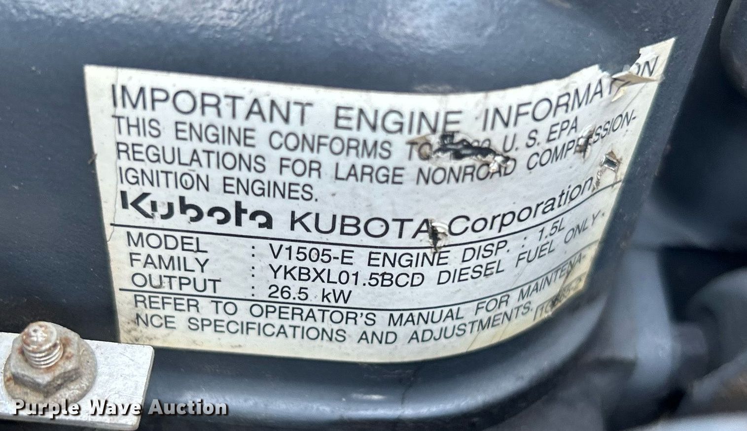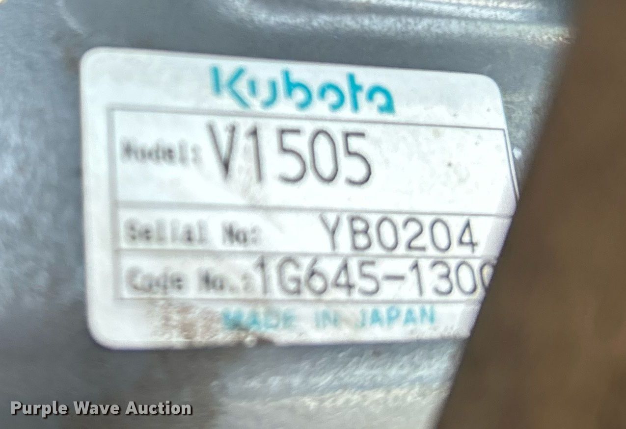 Textron 945015 ZTR lawn mower. Hours: 1,581 on meter, Cutting width: 120", Serial: 94501500269. Engine Kubota V1505, Serial: YB0204, Displacement: 1.5L, Cylinders: 4, Fuel type: Diesel. Transmission Hydrostatic. Chassis Four wheel drive. Tires Front: 26.5x14.00-12 , Rear: 20x10.00-8. 15107 North 137th East Avenue. Collinsville, OK 74021