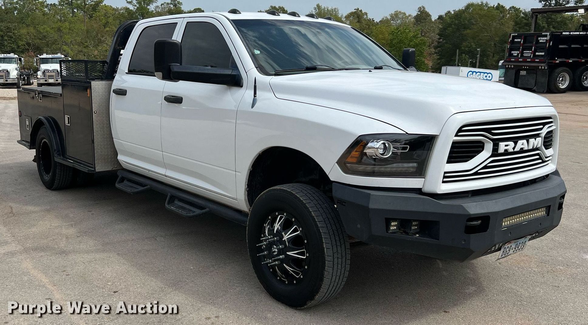 2012 Dodge Ram 3500HD Crew Cab flatbed pickup truck. Miles: 301,972 on odometer, VIN: 3C7WDSCL2CG231338. Engine Displacement: 6.7L L6 OHV, Cylinders: 6, Fuel type: Diesel. Transmission Automatic. Interior AC, Heat, Heated mirrors, Power windows, Power locks, Cruise control. Features Flatbed CM, 9' 4" L x 7' 4" W, Hitch: Gooseneck. Tires Size: 245/75R17. Notes Exhaust system modified, Windshield chipped or cracked. Texas title. Title distribution may be delayed up to 14 days from verification of funds. Gageco Inc. 10313 Barksdale Road. Magnolia, TX 77354
