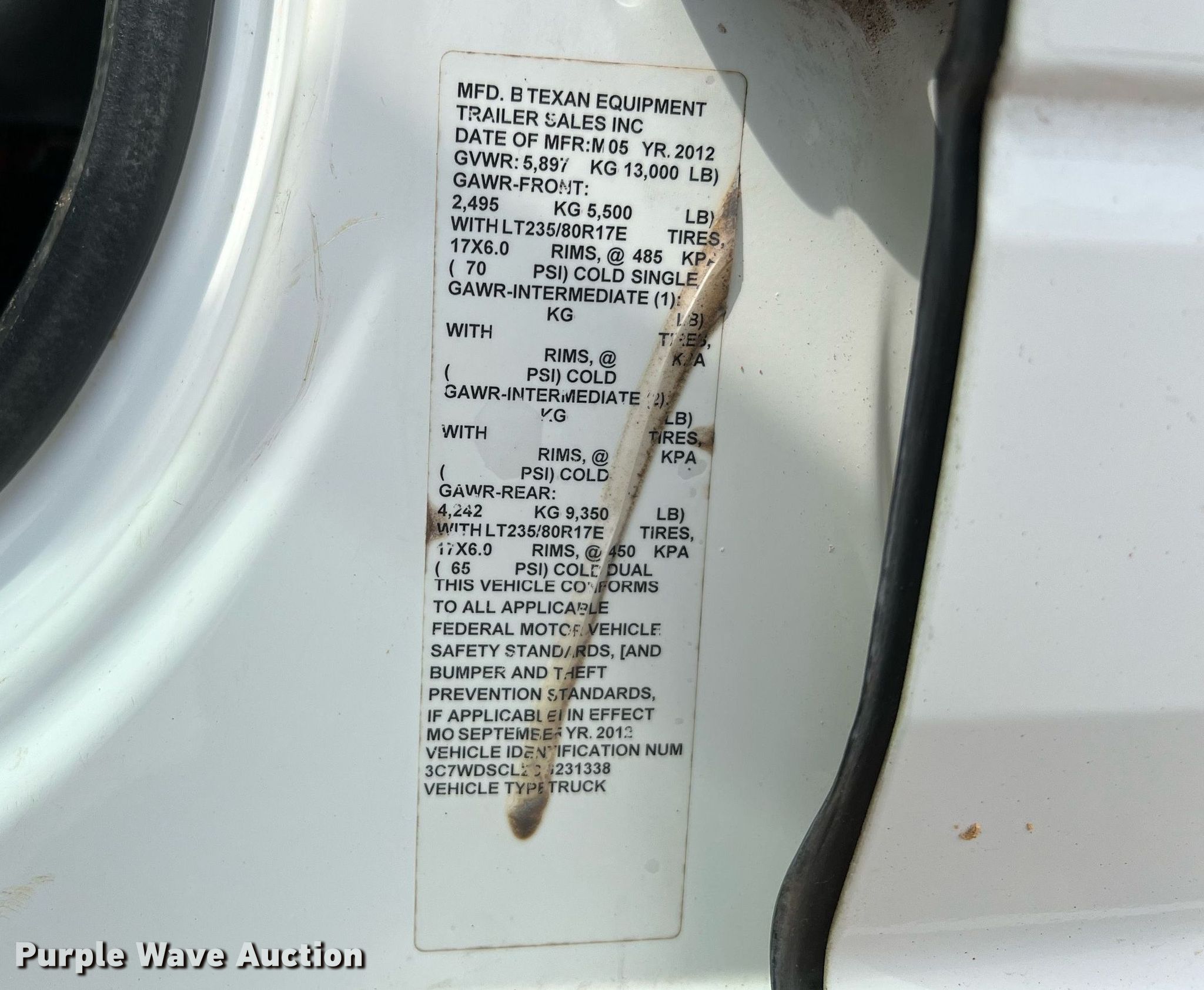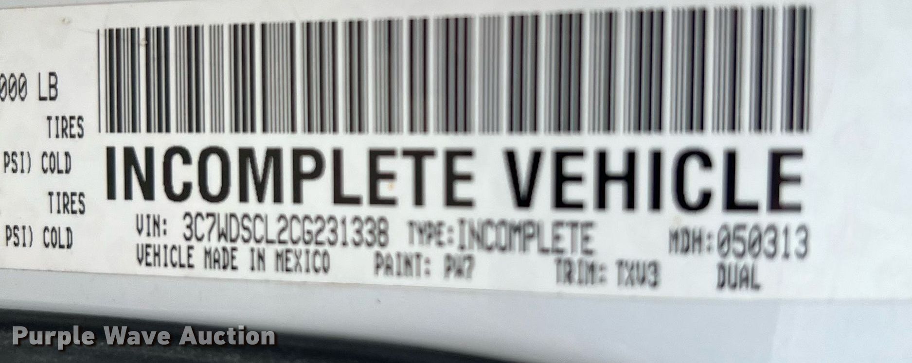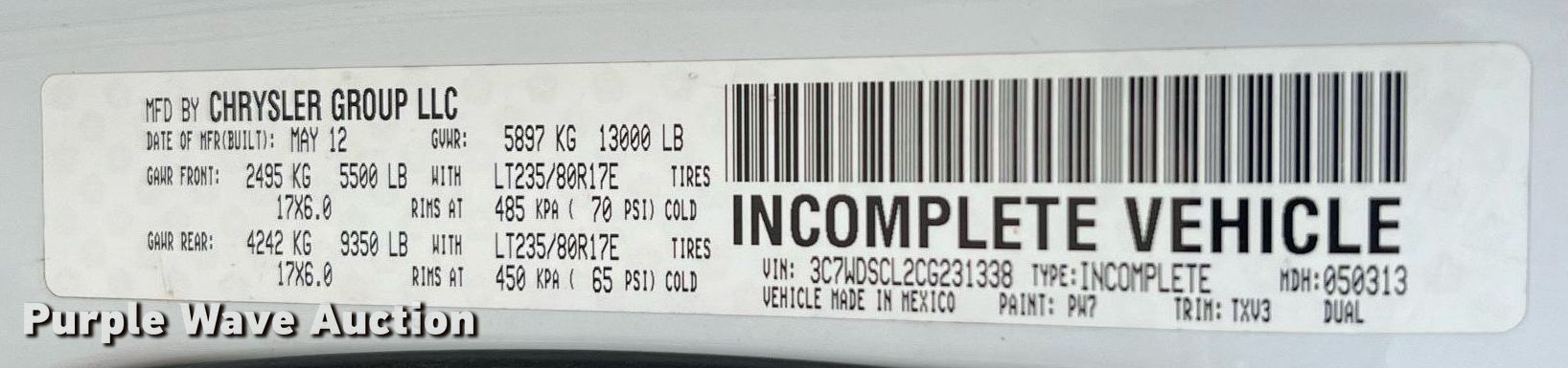 - VIN: 3C7WDSCL2CG231338