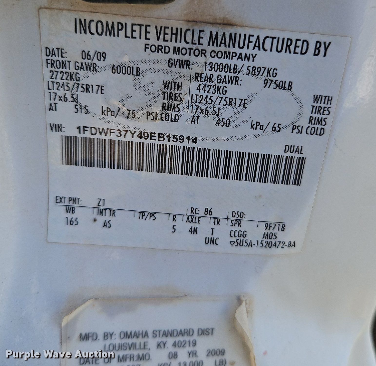 - VIN: 1FDWF37Y49EB15914