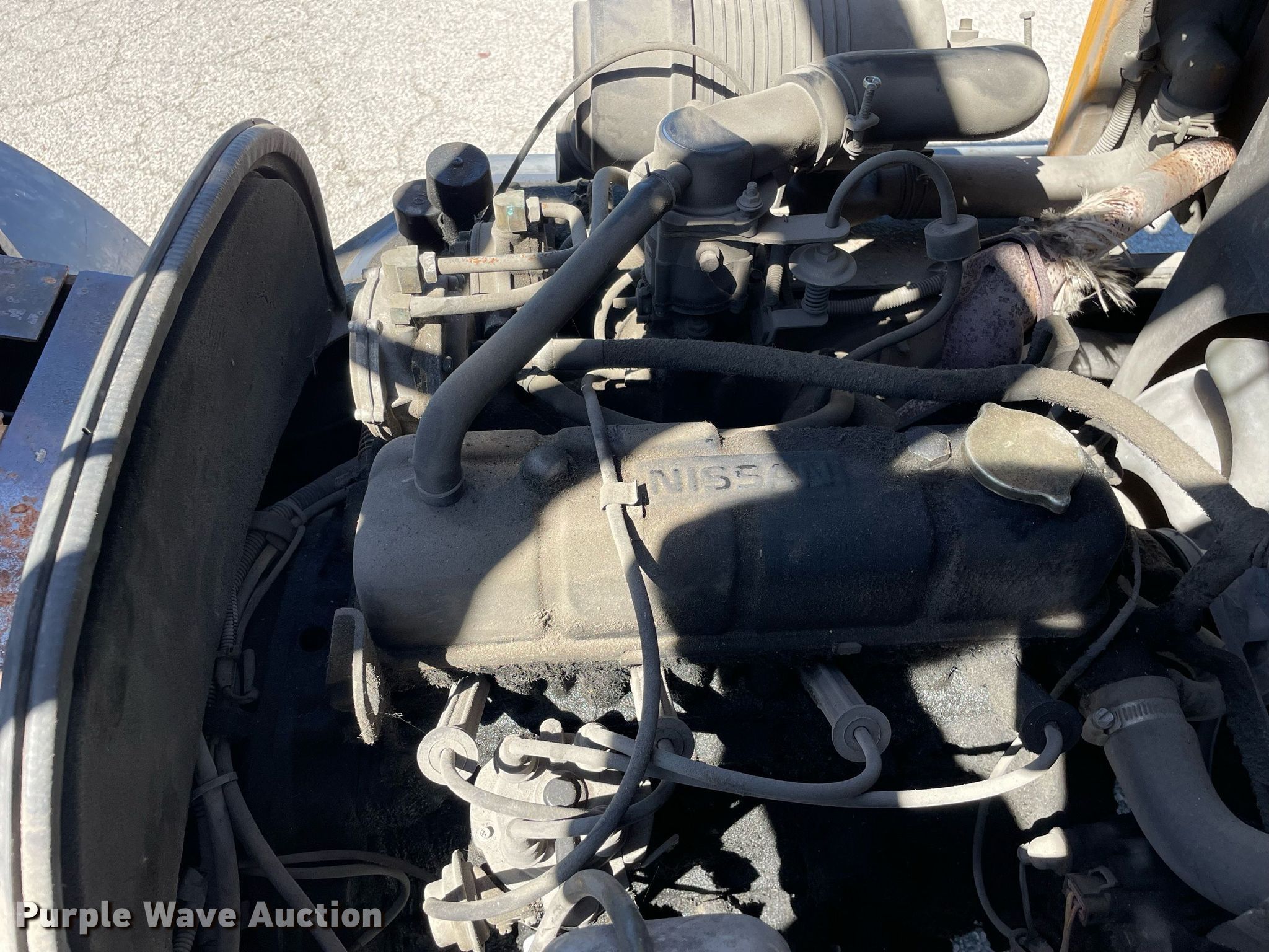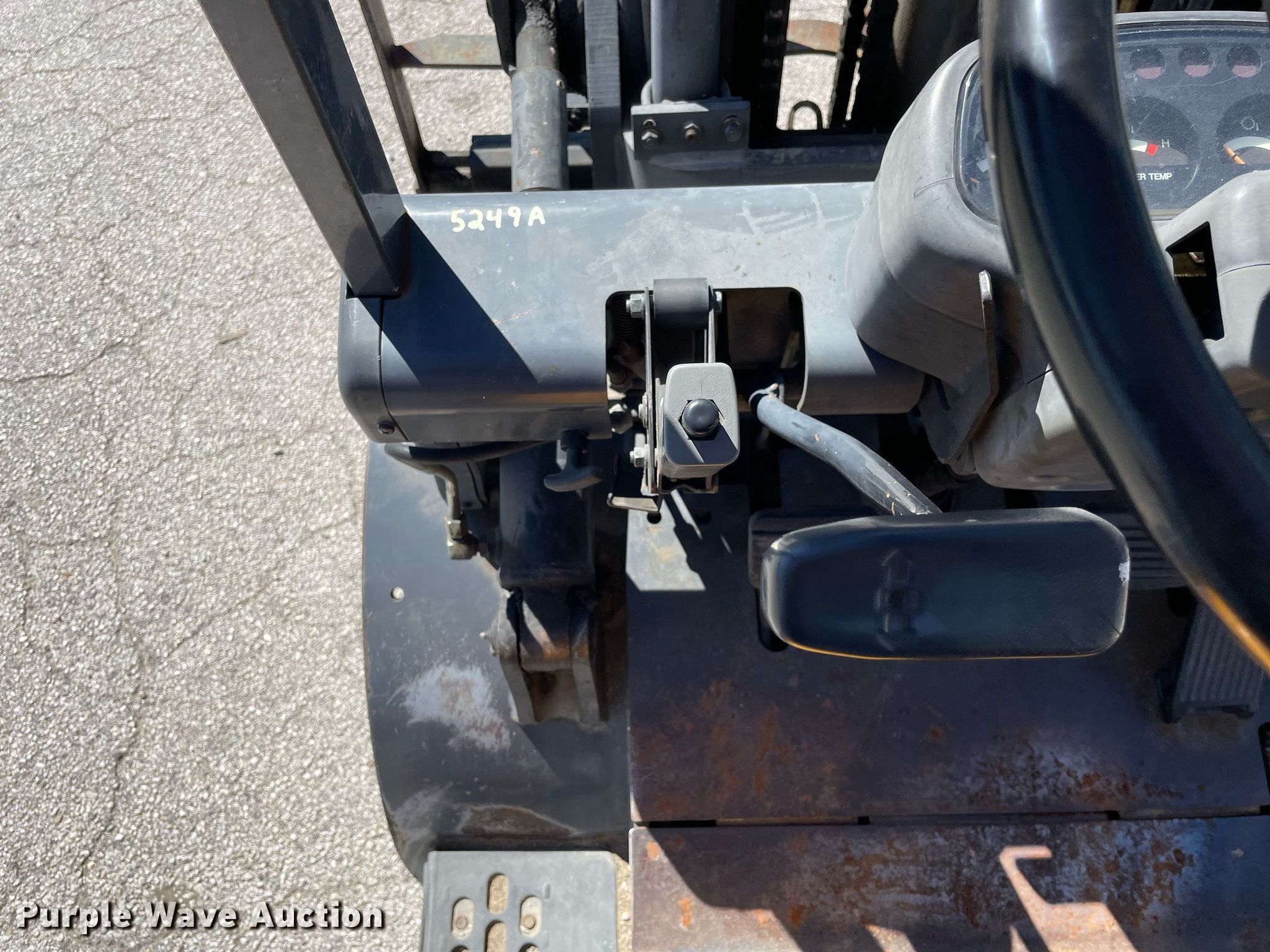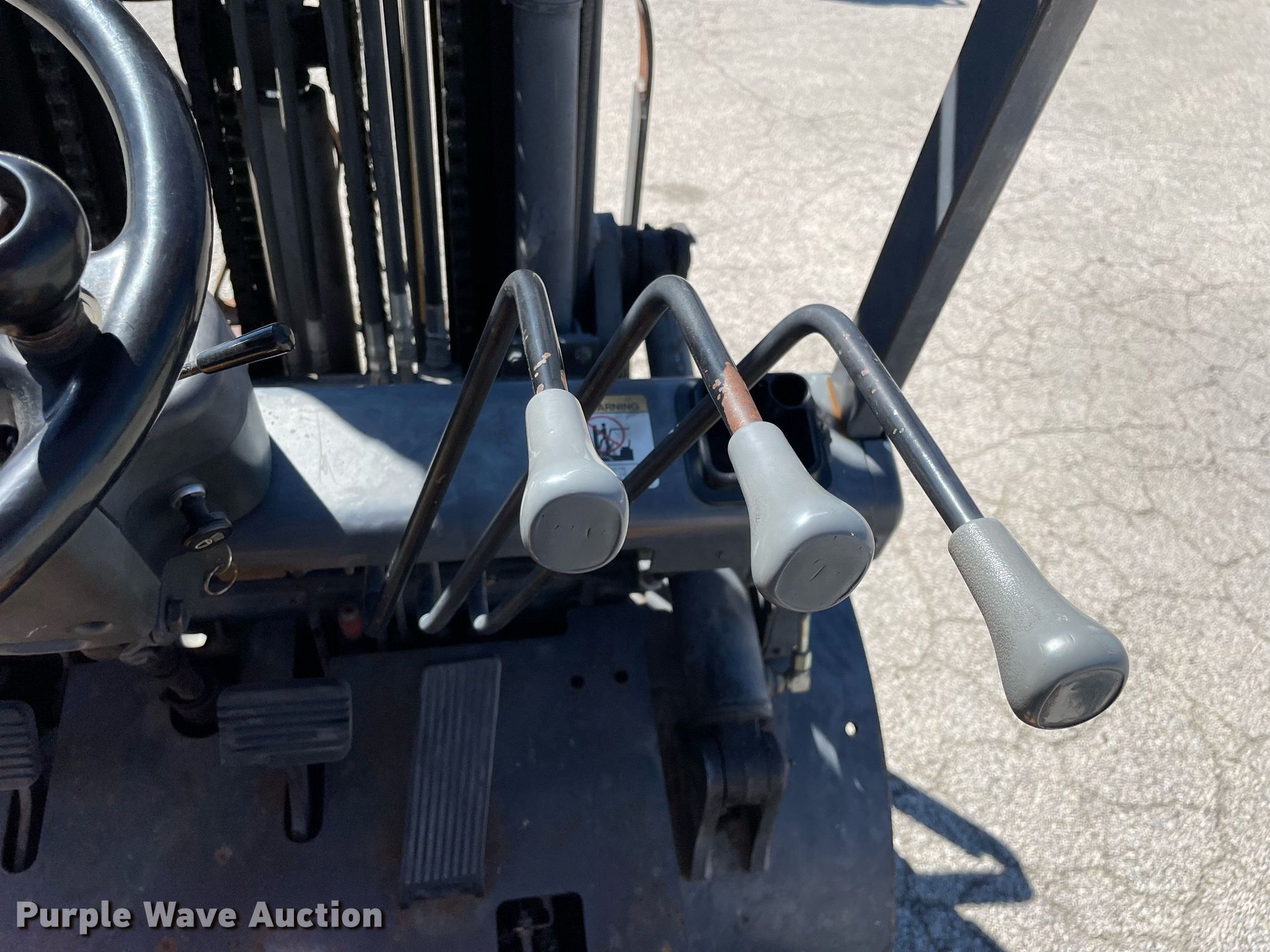 TCM FG30N5T forklift. Hours: 7,866 on meter, Serial: A31M72409. Engine Nissan, Cylinders: 4, Fuel type: LPG LP bottle: Not included. Transmission Powershift. Operators station OROPS. Features Maximum lift capacity: 4,700 lbs, Maximum lift height: 189", Mast stages: 3, Side shift, Mast tilt, Fork length: 47". Tires Front: 815-15, Rear: 650-10, Solid. R.P. Lumber Co., Inc.. Taylorville, IL 62568