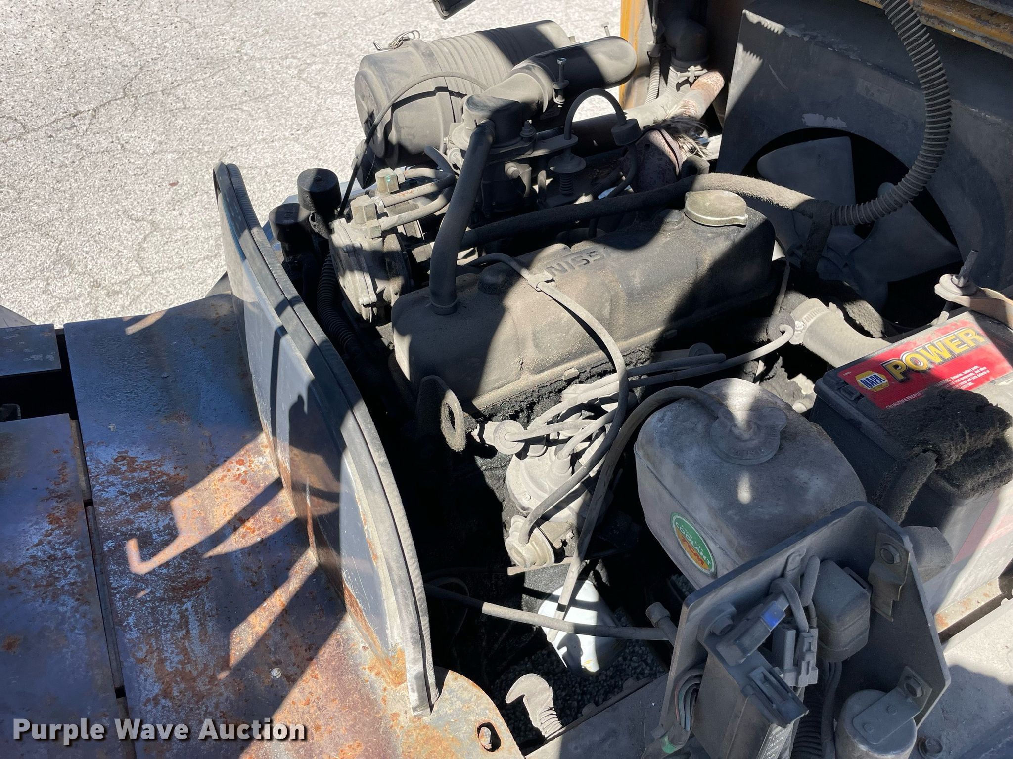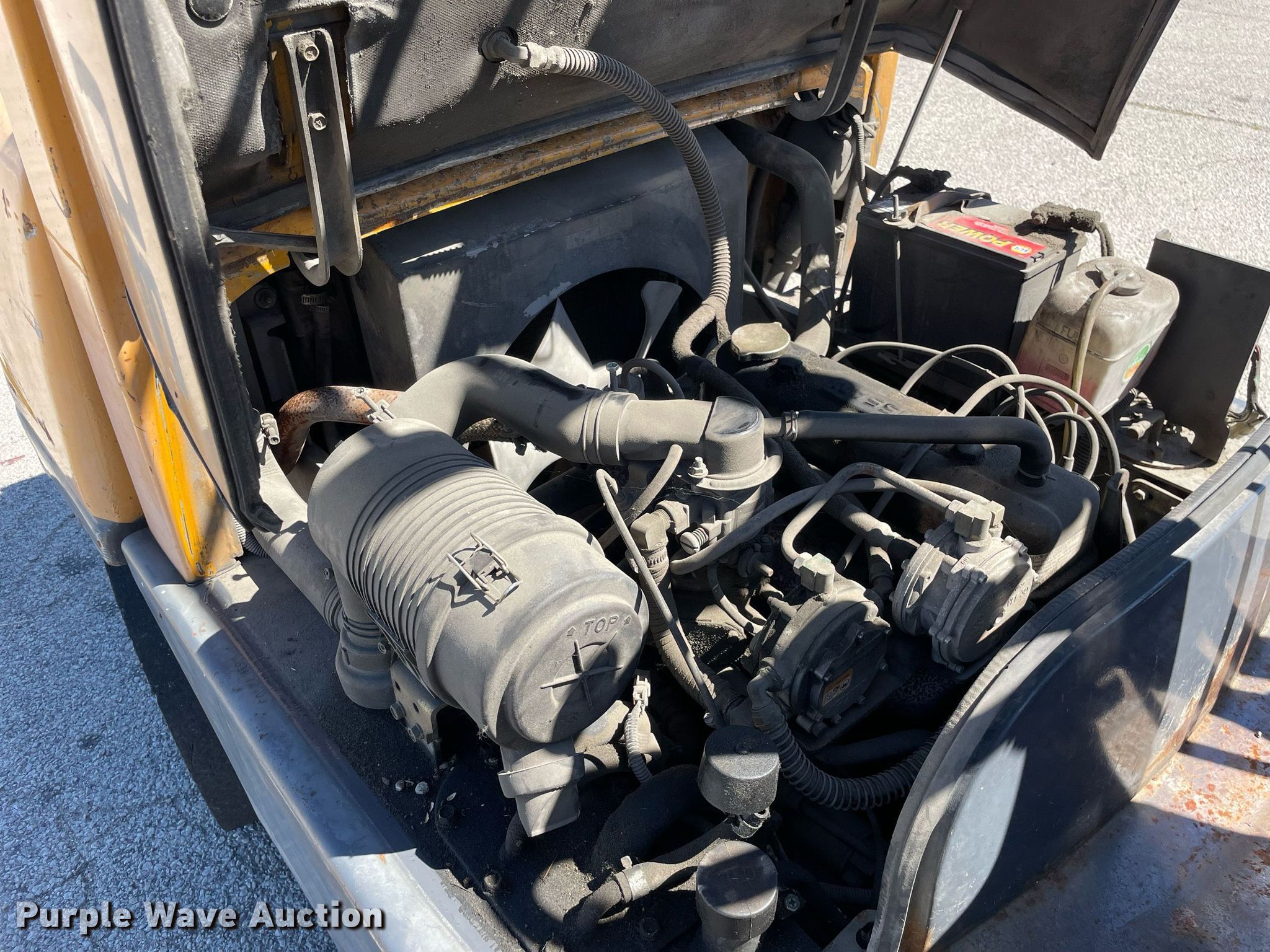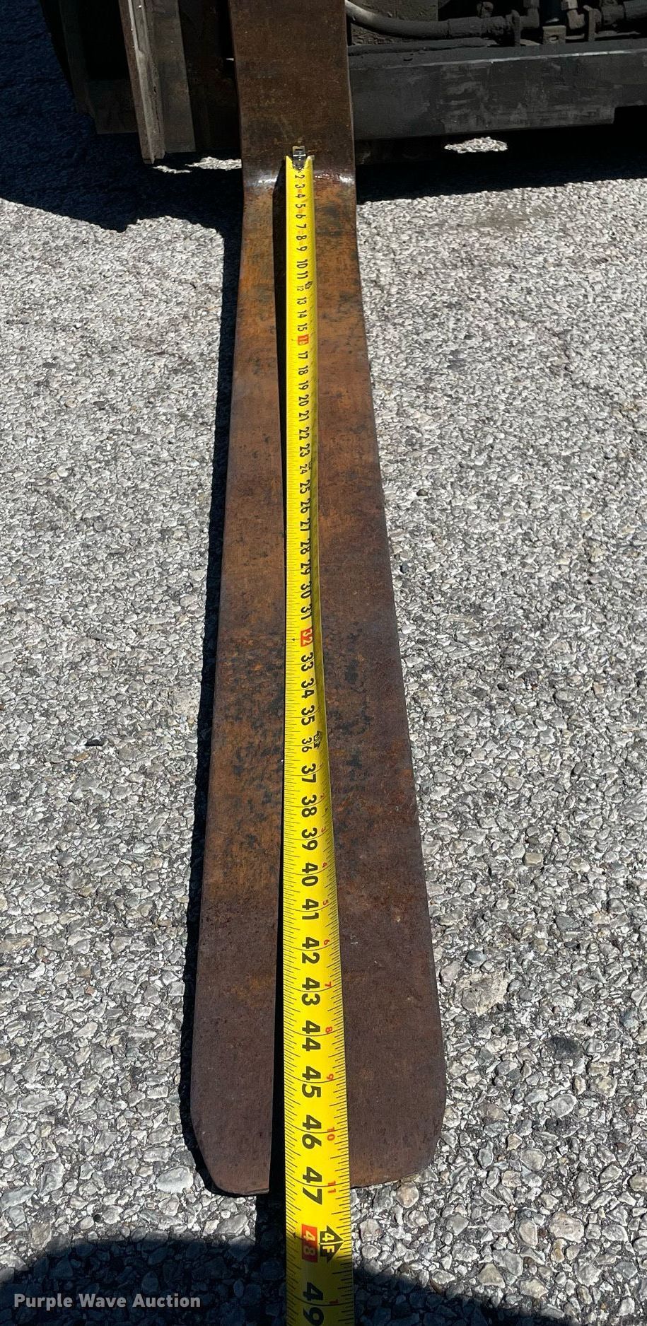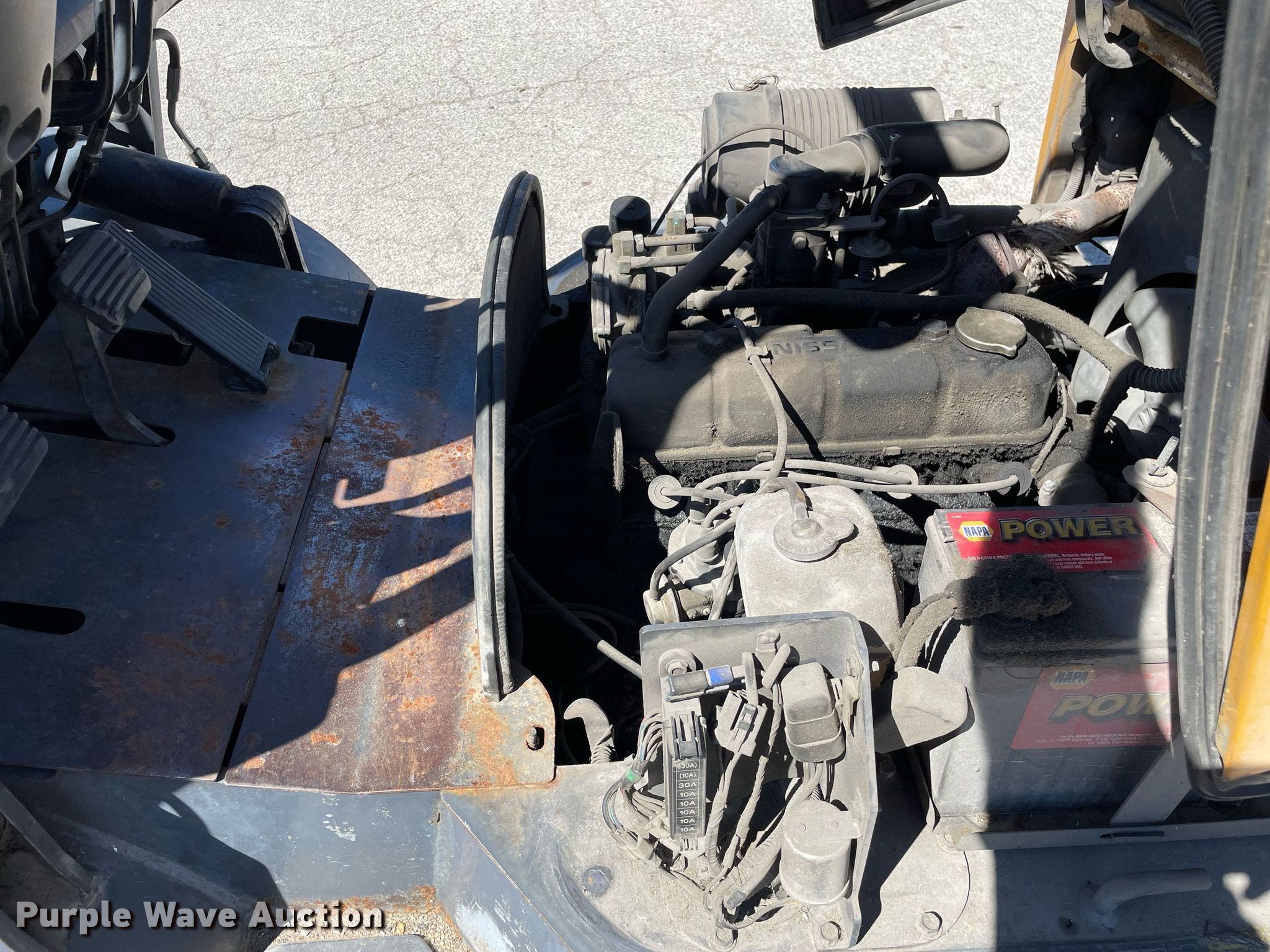 TCM FG30N5T forklift. Hours: 7,866 on meter, Serial: A31M72409. Engine Nissan, Cylinders: 4, Fuel type: LPG LP bottle: Not included. Transmission Powershift. Operators station OROPS. Features Maximum lift capacity: 4,700 lbs, Maximum lift height: 189", Mast stages: 3, Side shift, Mast tilt, Fork length: 47". Tires Front: 815-15, Rear: 650-10, Solid. R.P. Lumber Co., Inc.. Taylorville, IL 62568