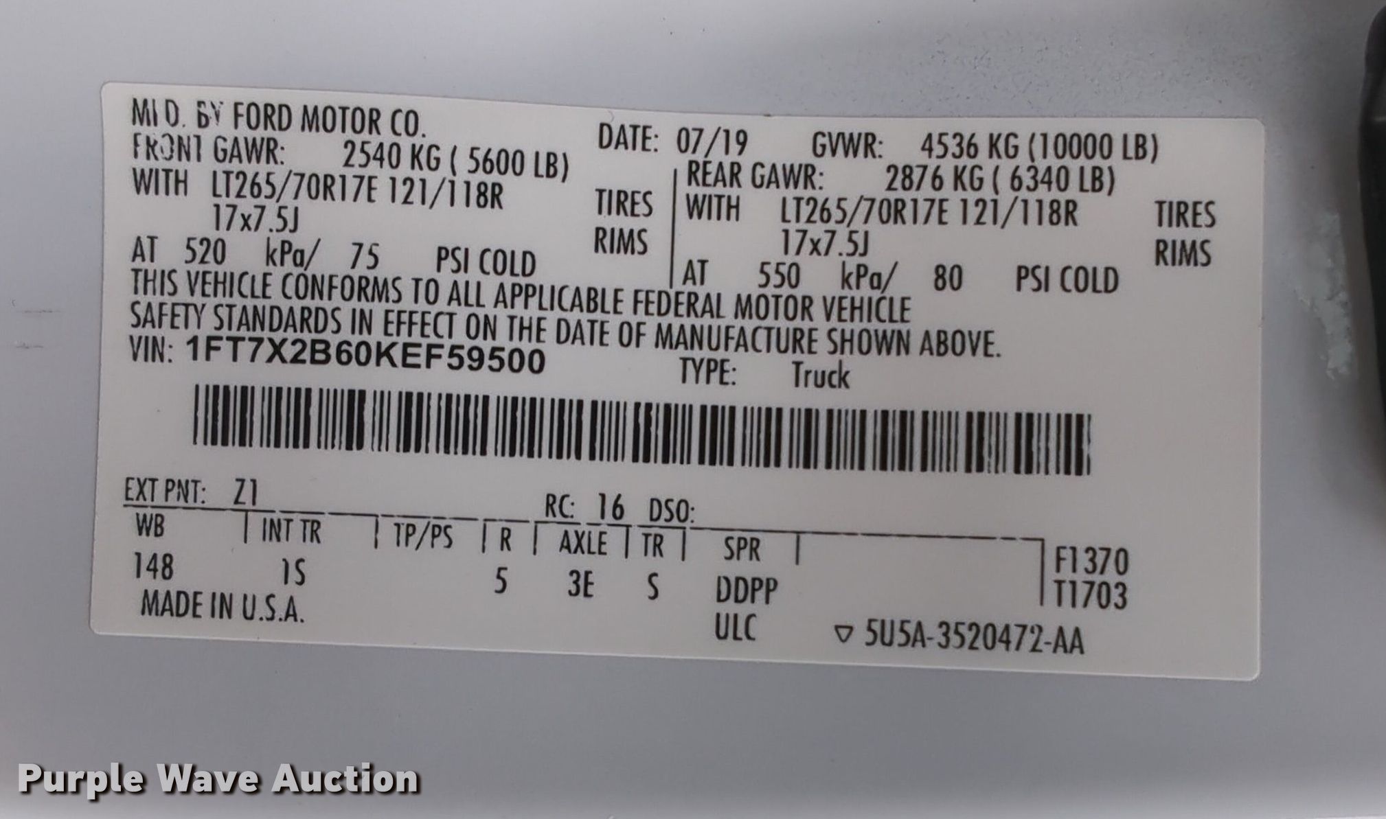 - VIN: 1FT7X2B60KEF59500