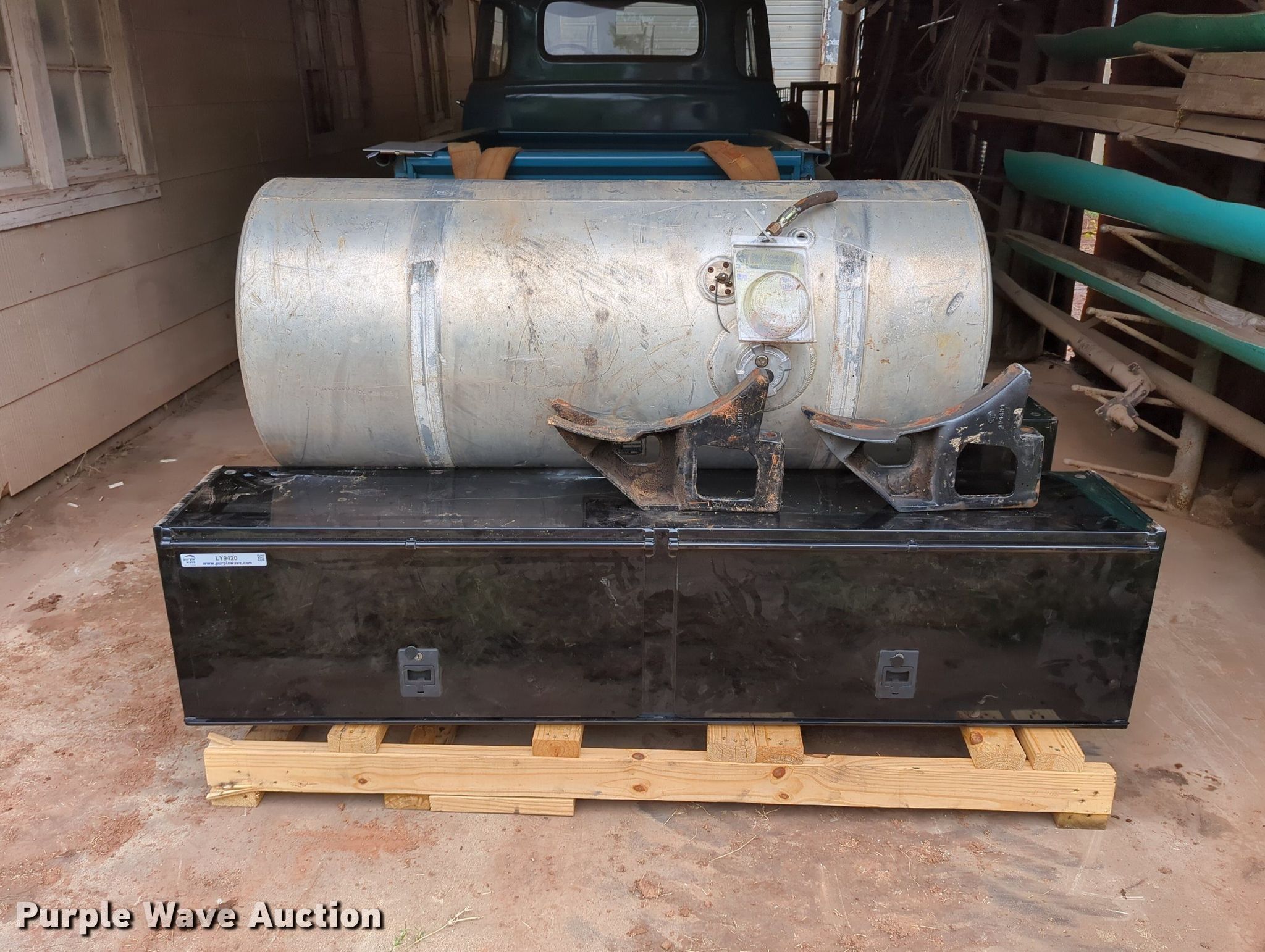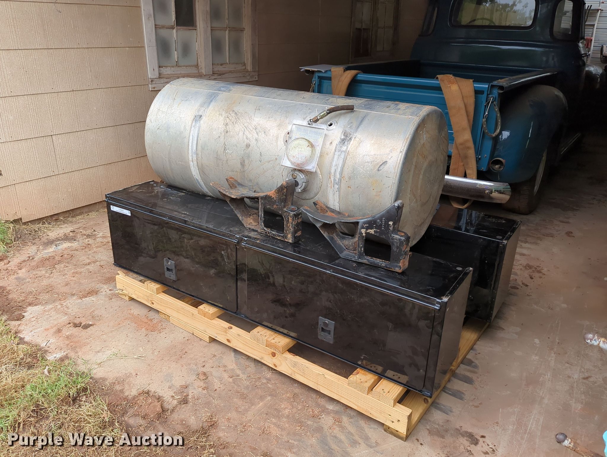Purple Wave is selling a used Truck Part and Attach. in Oklahoma. This item is a (2) toolboxes with the following: Dimensions: 72" x 12" x 16", Fuel tank included