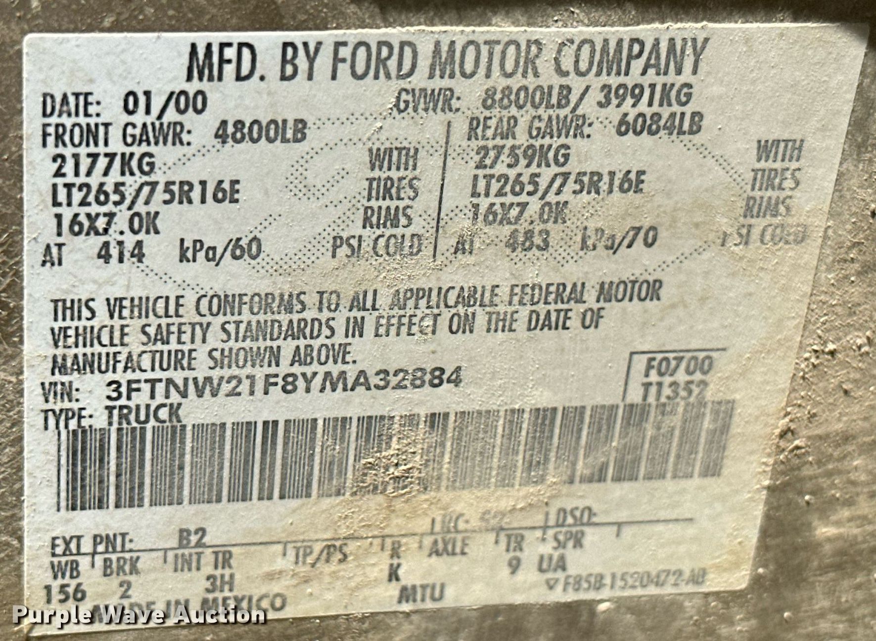 - VIN: 3FTNW21F8YMA32884