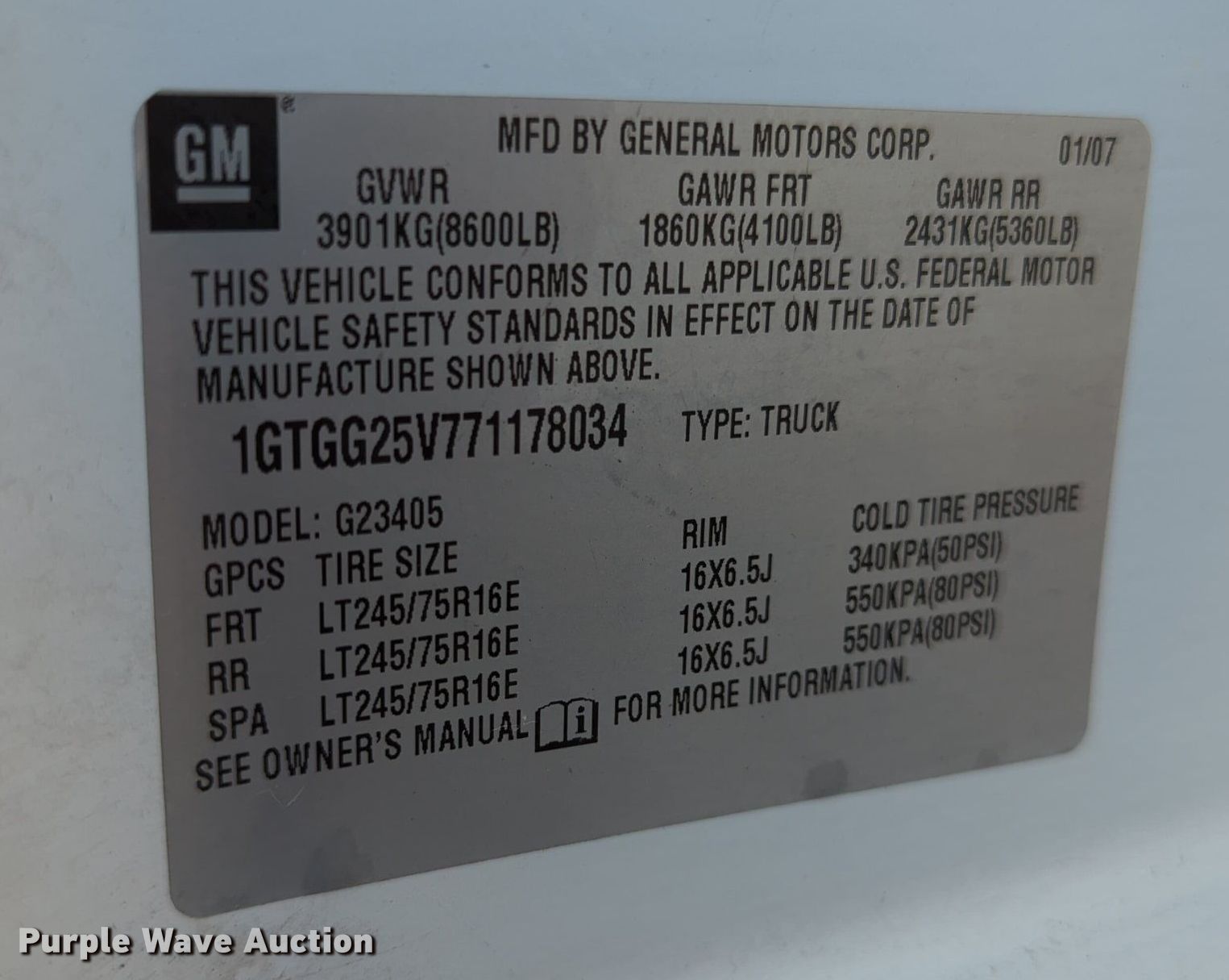 - VIN: 1GTGG25V771178034