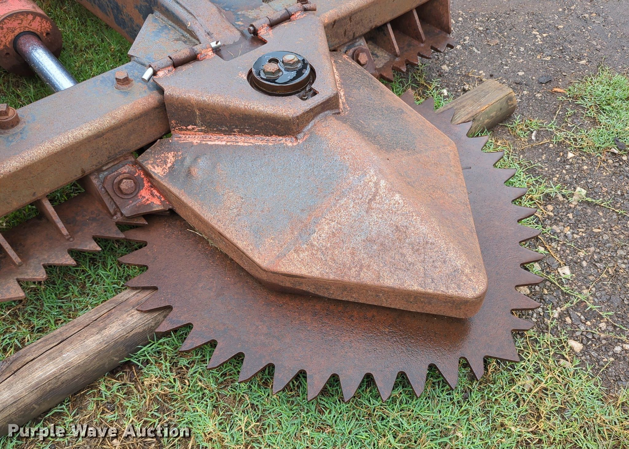 Purple Wave is selling a used Skid Steer Attach. in Oklahoma. This item is a Marshall skid steer tree saw with the following: Width: 54", Blade diameter: 36"