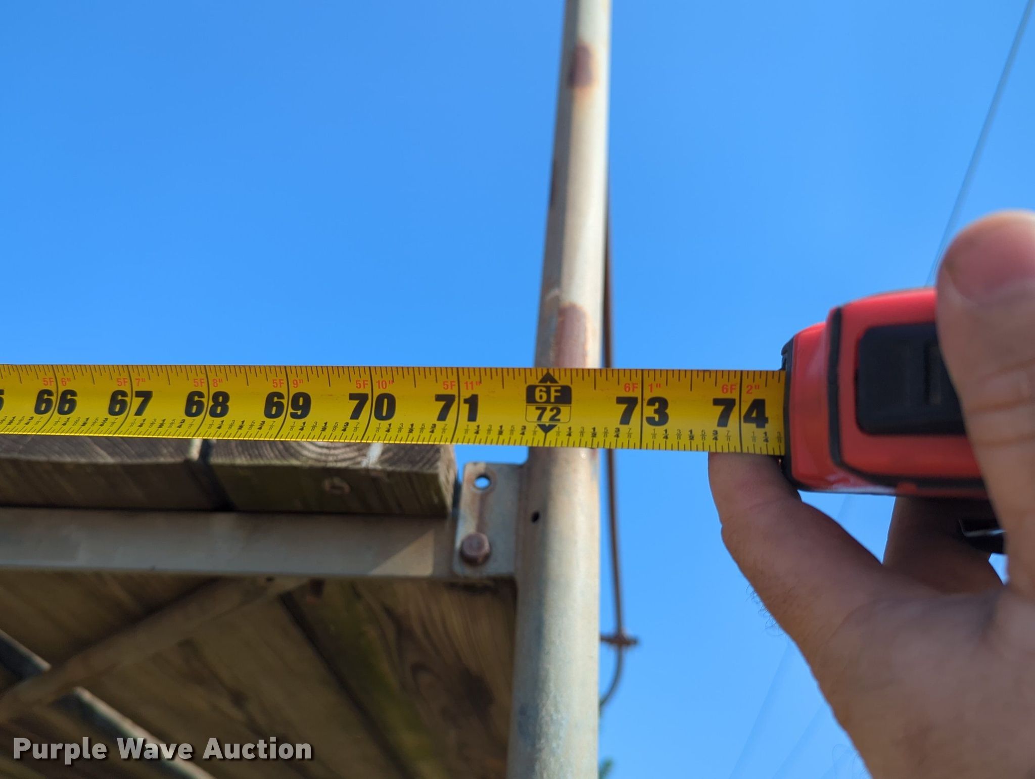 Purple Wave is selling a used Tools in Oklahoma. This item is a Scaffolding with the following: Approx. 11' x 6' x 7', Caster wheels