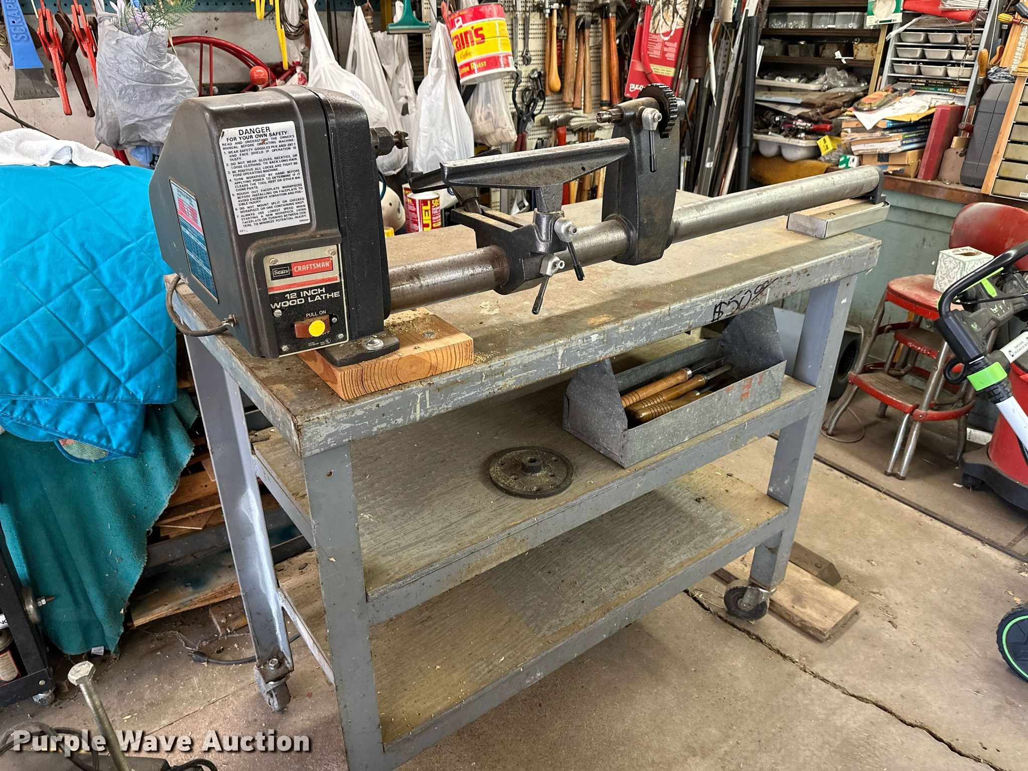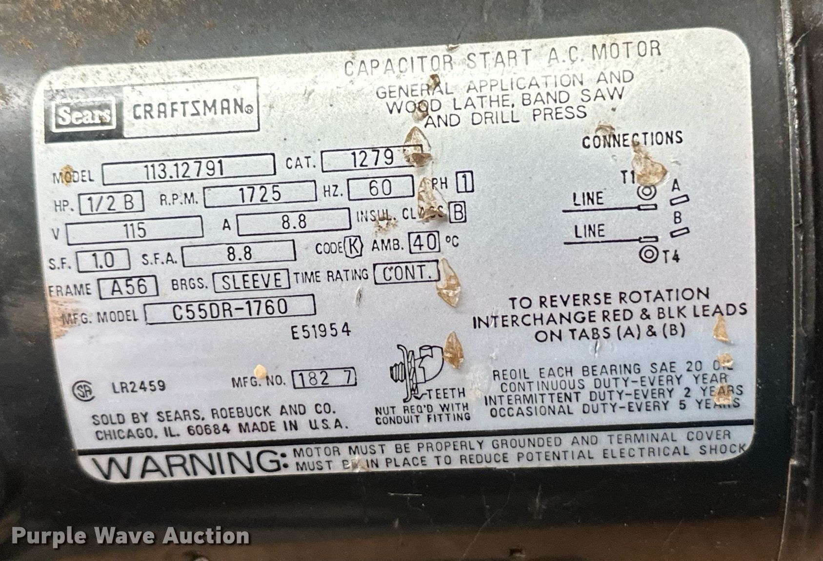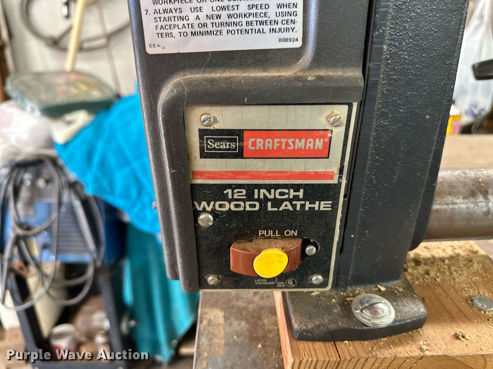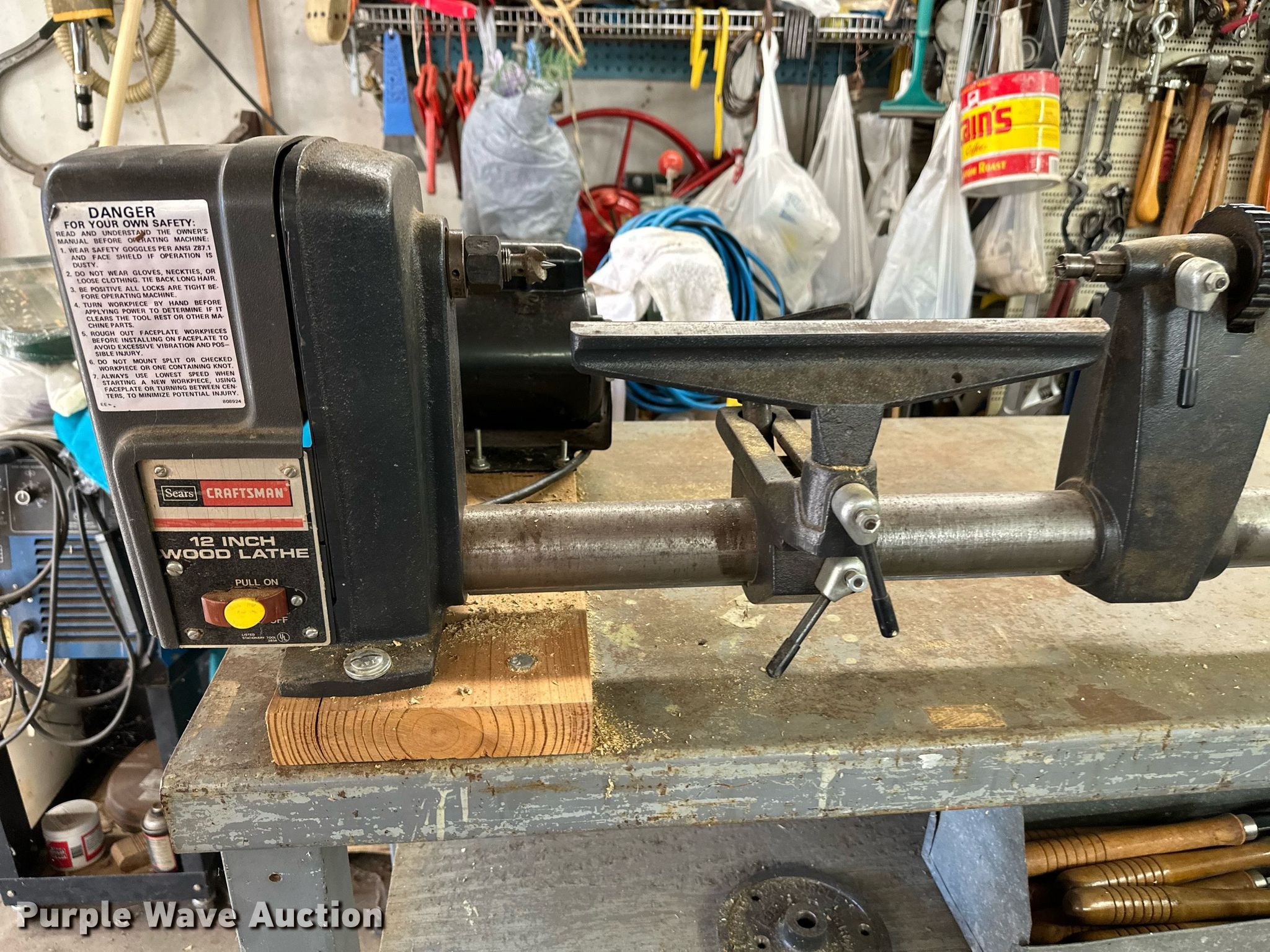 Purple Wave is selling a used Tools in Kansas. This item is a Tools with the following: Sears Craftsman 12" wood lathe, Electric motor, Sears Craftsman, HP: 1/2, Volts: 115, Phase: Single,, Professional Woodworker combination sander