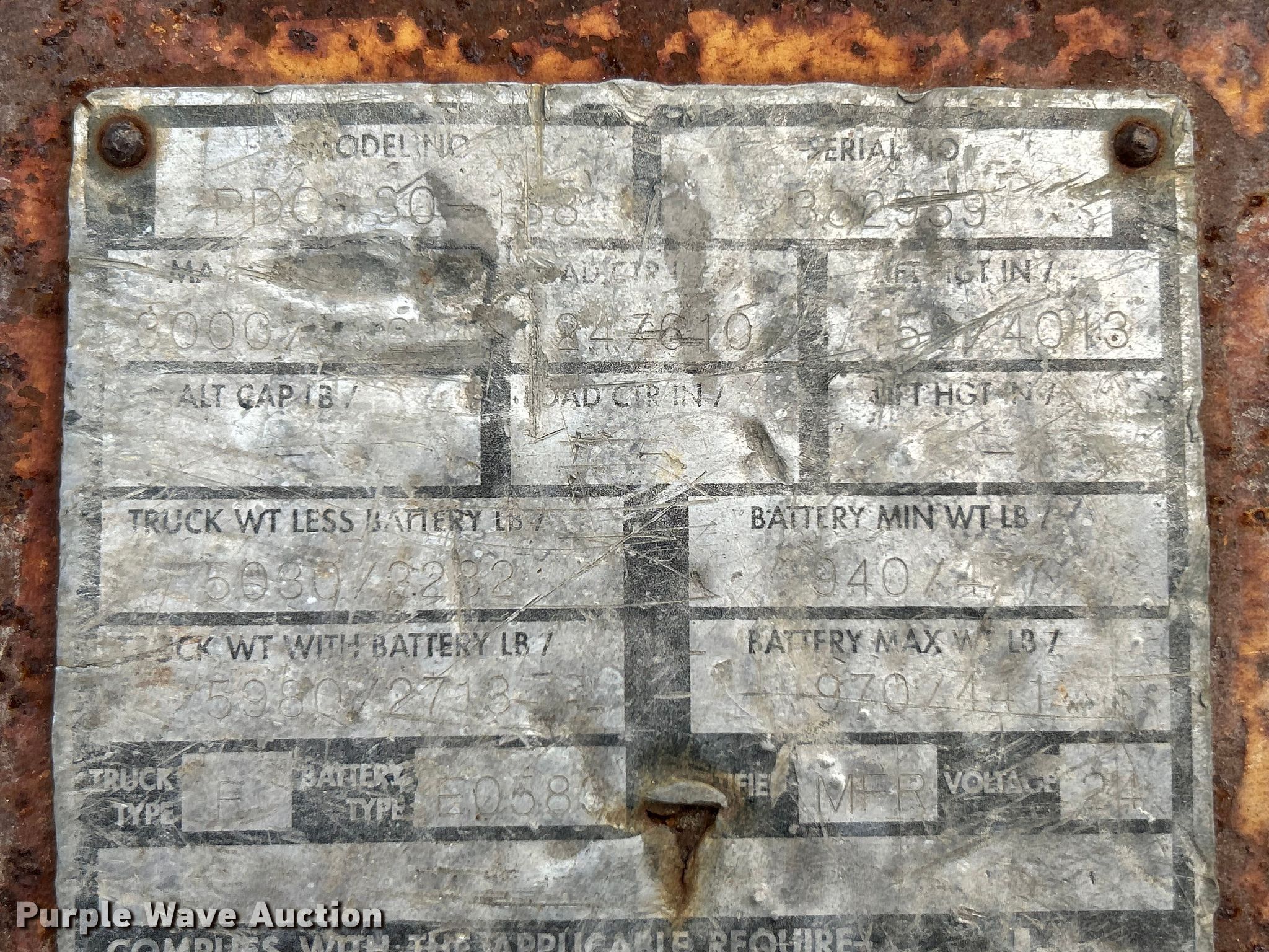 Purple Wave is selling a used Warehouse Forklift in Missouri. This item is a Big Joe PDC 30-158 forklift with the following: Hours: Unknown, Serial: 382959