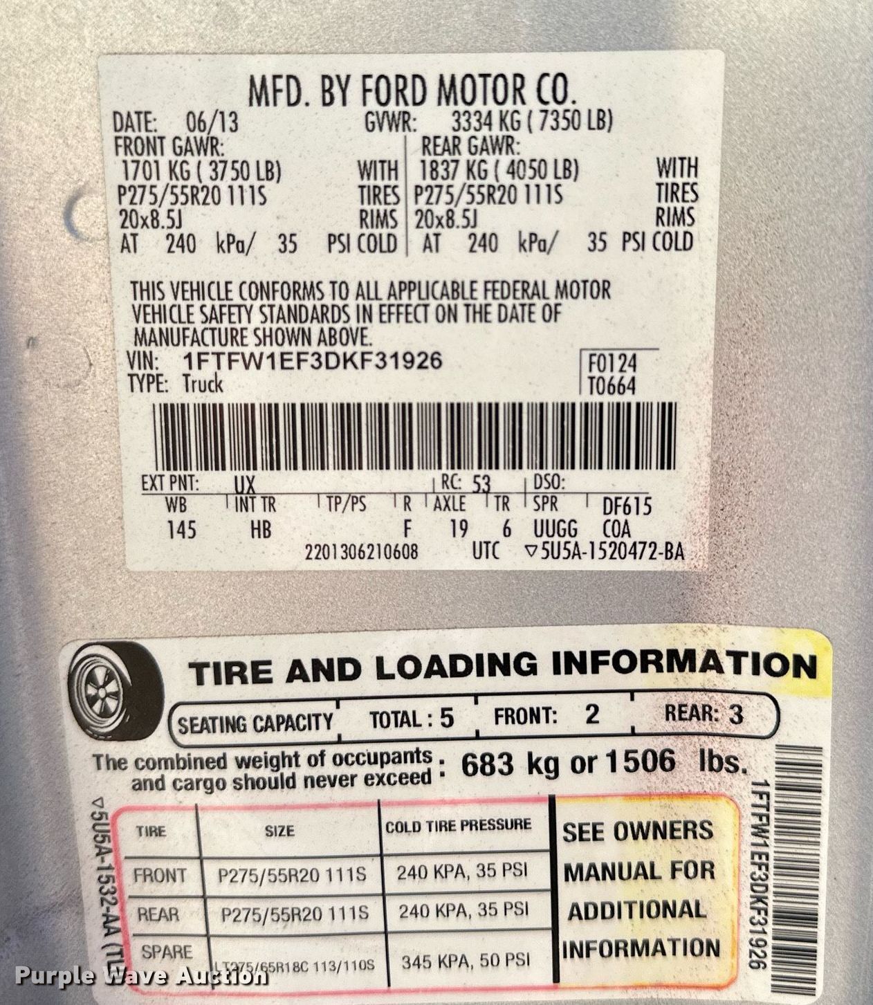 Purple Wave is selling a used 1/2 Ton Pickup or Van in Kansas. This item is a 2013 Ford F150 Lariat SuperCrew pickup truck with the following: Miles: 271,417 on odometer, VIN: 1FTFW1EF3DKF31926