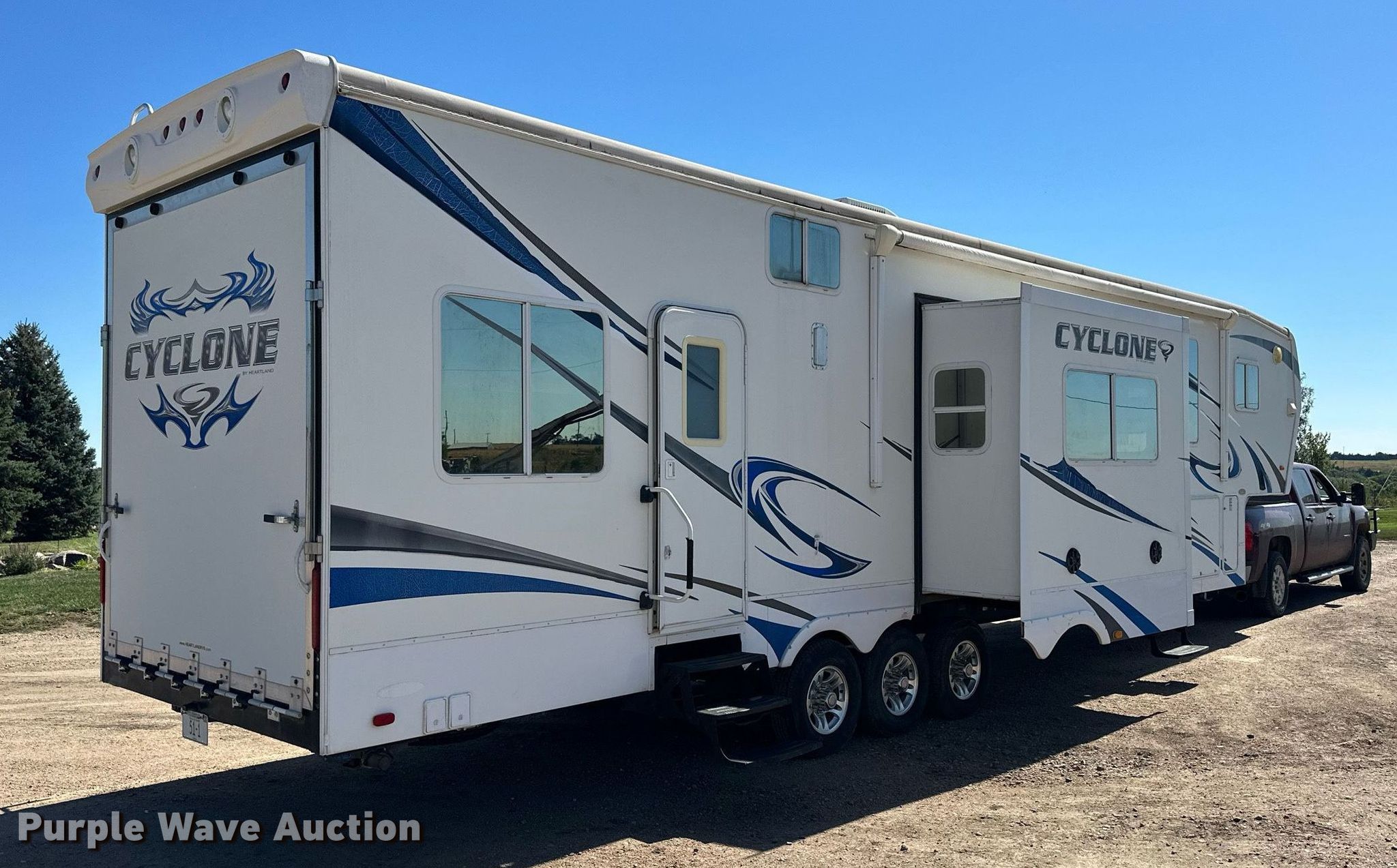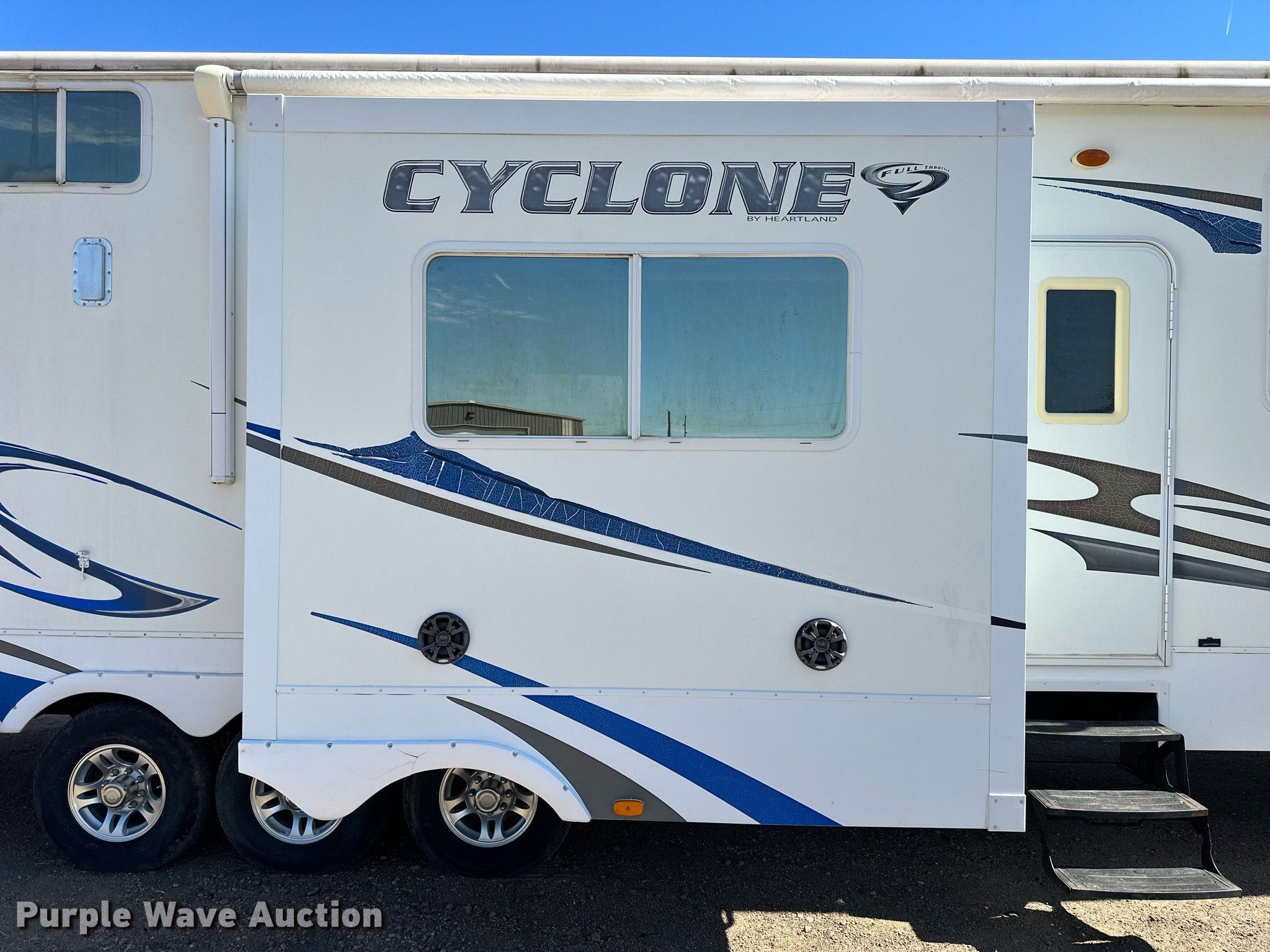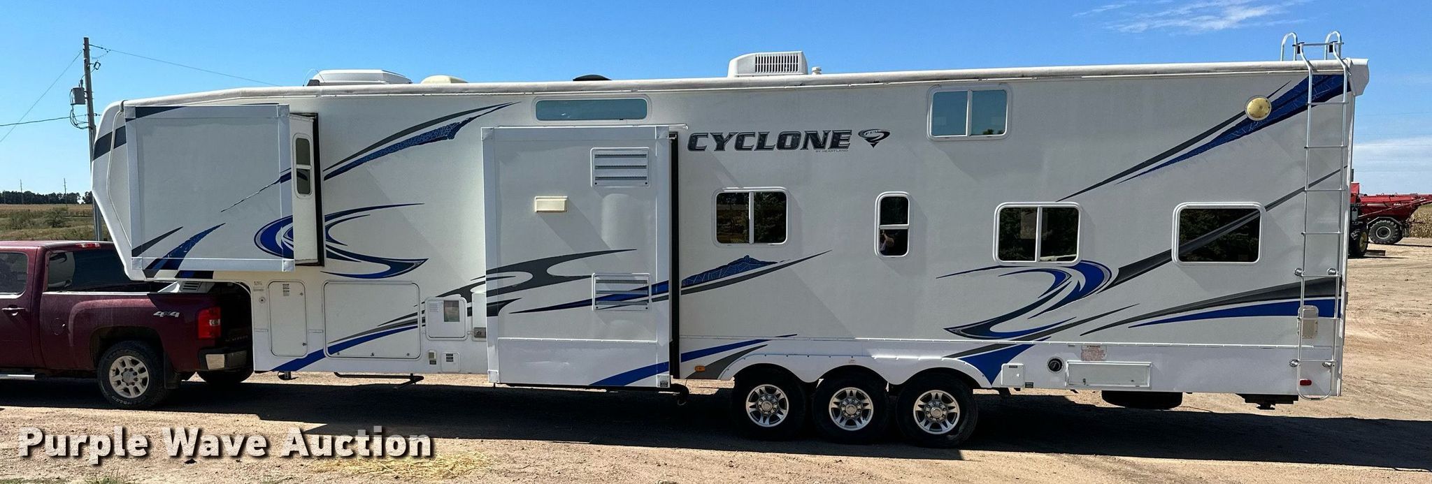 Take a look at this used 2010 Heartland Cyclone 3950 toy hauler camper being sold on October 11th, 2023 in the SOLD! October 11 Vehicles and Equipment Auction made by Heartland. Take a look at all of the item information below or take a look at similar auctions for RVs.