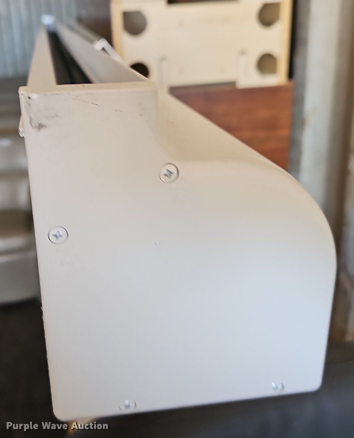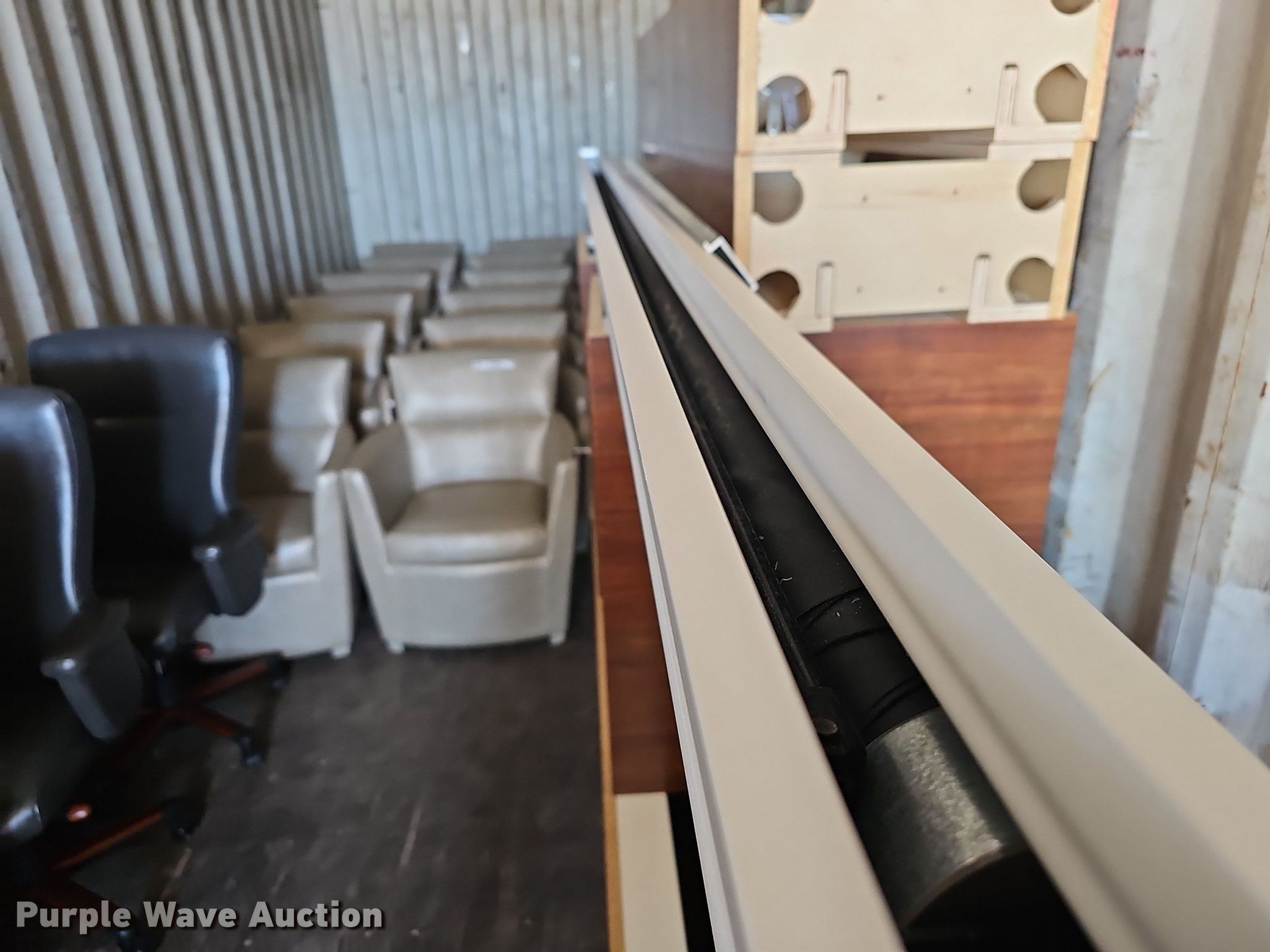 Purple Wave is selling a used Office Supplies and Equip. in Missouri. This item is a Office supplies and equipment with the following: (12) chairs, Projector screen, 110V, Counter top, Trash bin counter top