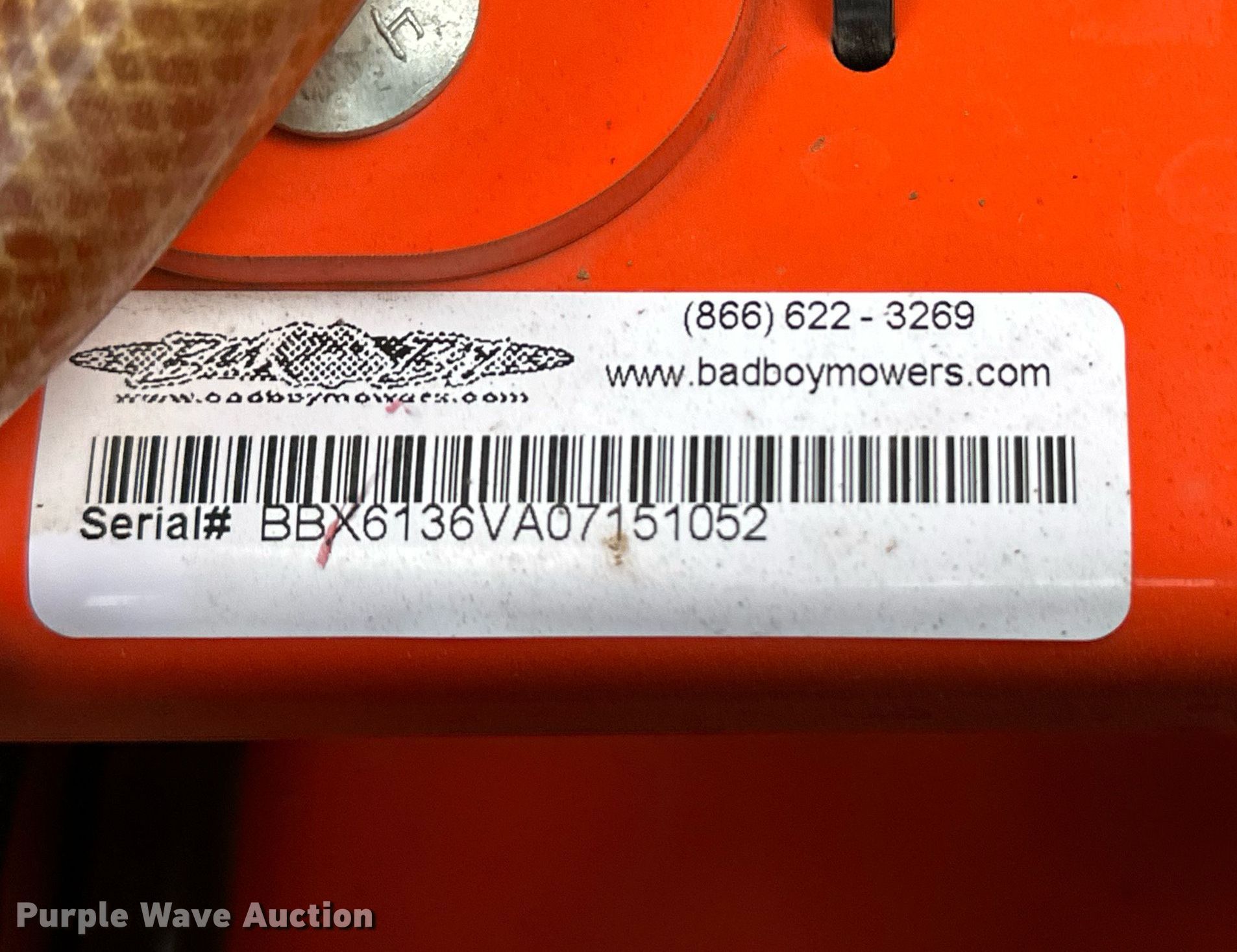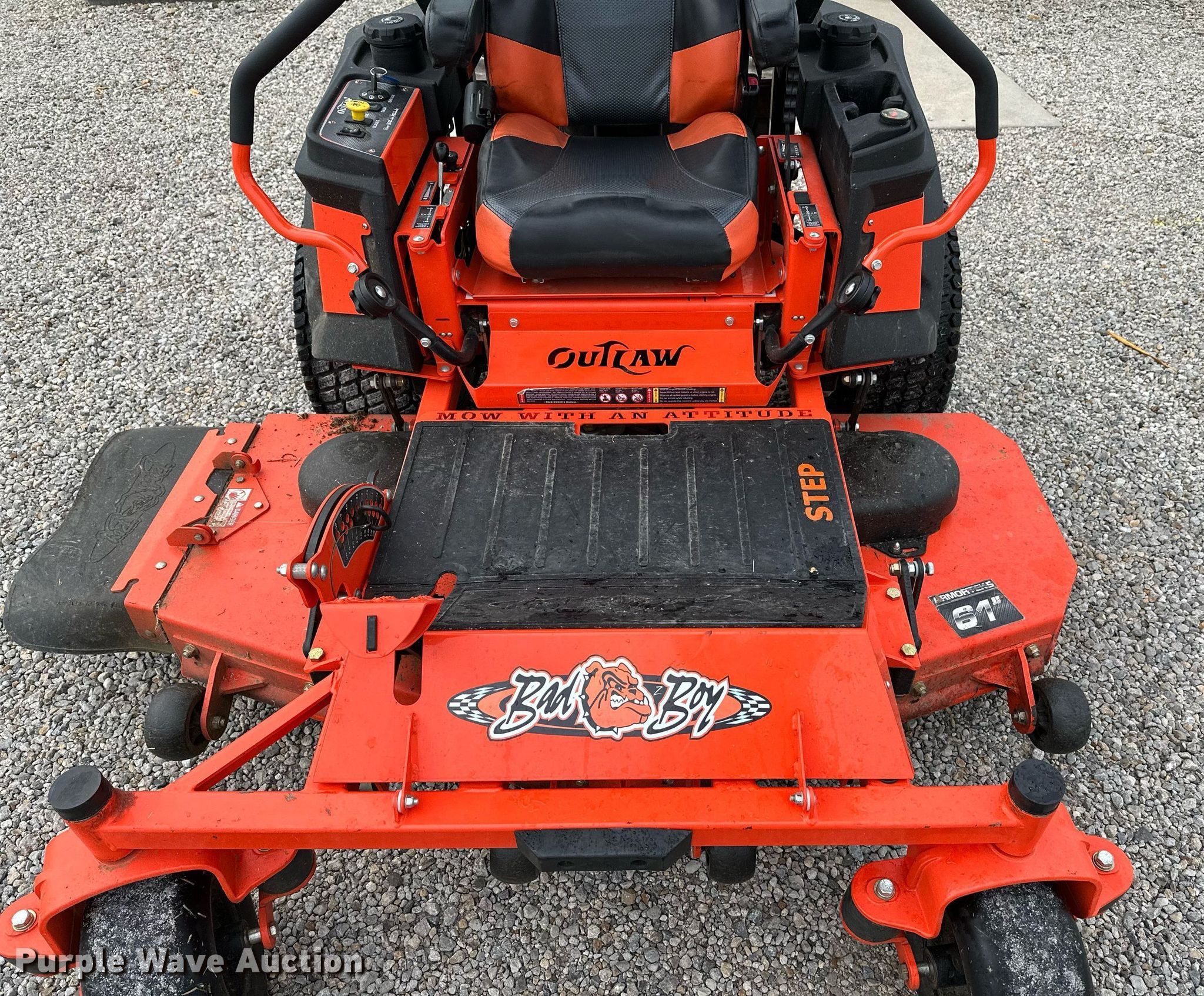 Purple Wave is selling a used Commercial Turf Mower in Kansas. This item is a 2015 Bad Boy Outlaw XP ZTR lawn mower with the following: Hours: 168 on meter, Cutting width: 61", Serial: BBX6136VA07151052