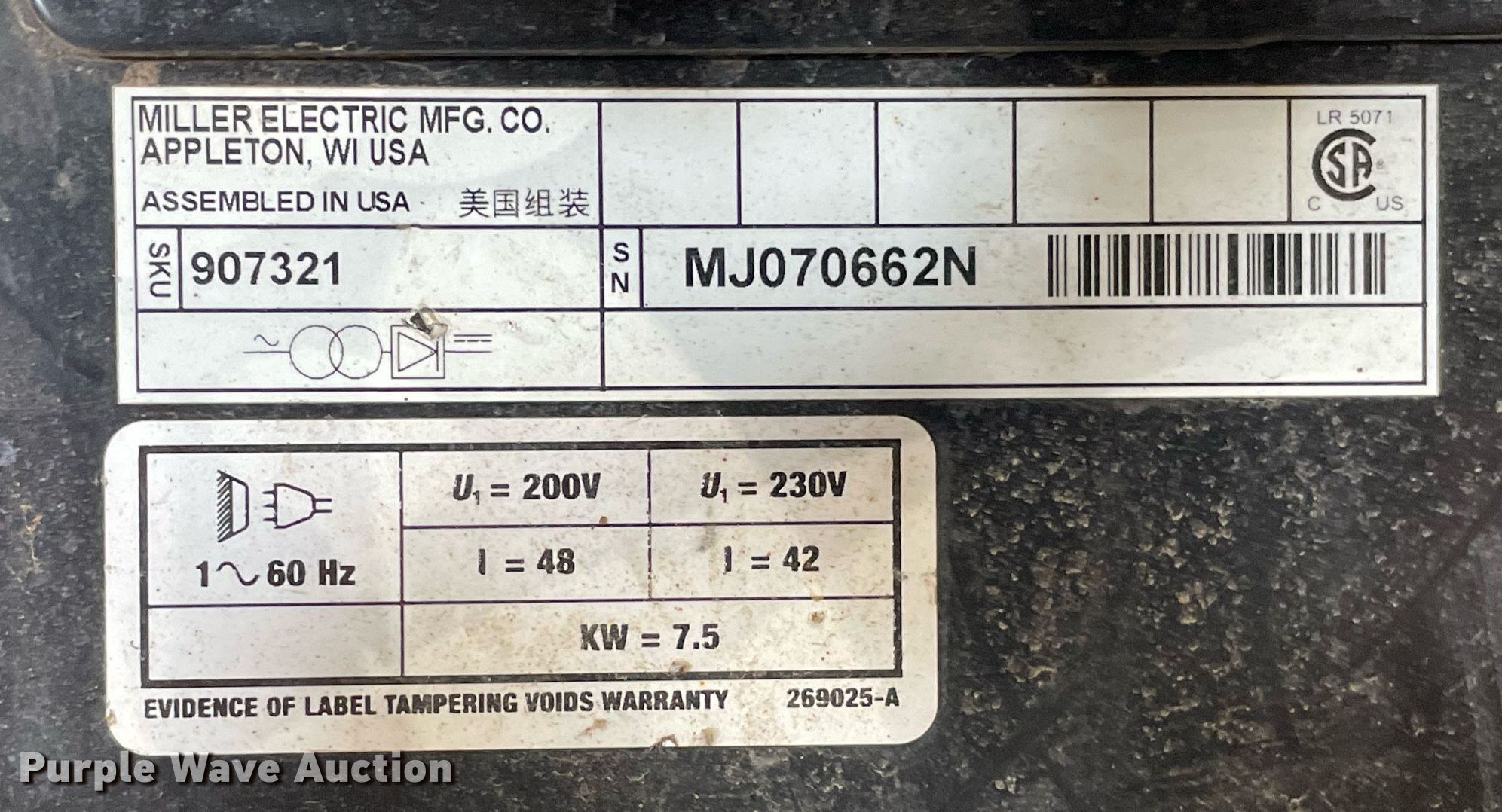 Purple Wave is selling a used Welder (Manual) in Kansas. This item is a Miller Millermatic 252 welder with the following: Serial: MJ070662N
