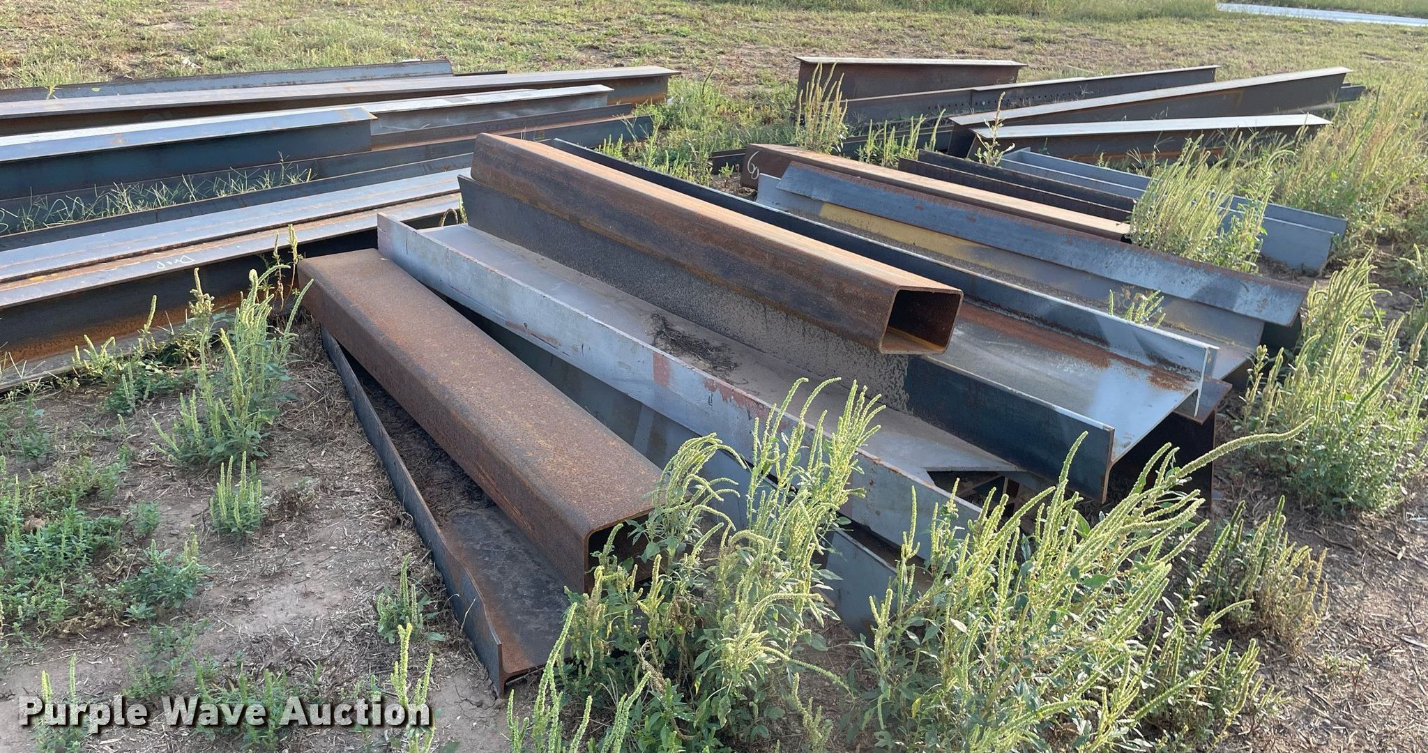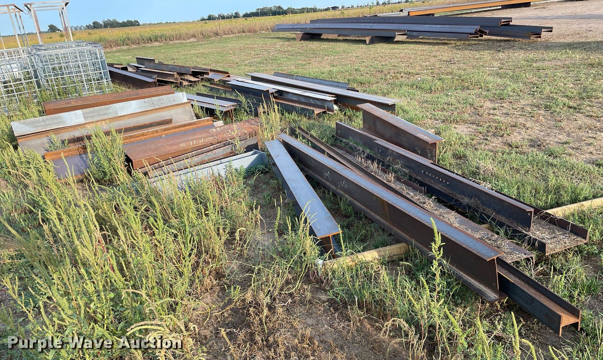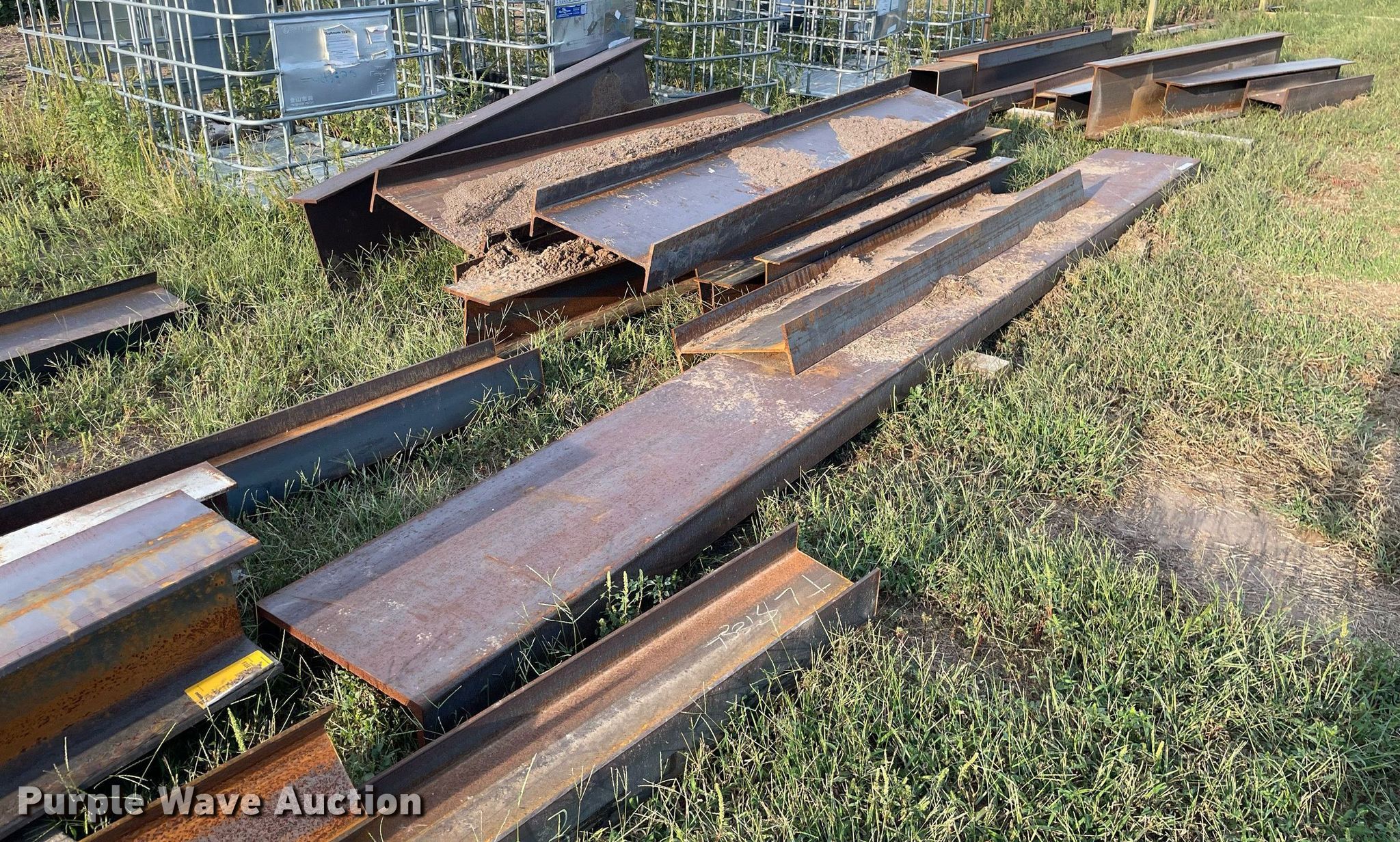 Purple Wave is selling a used Building Materials in Kansas. This item is a Steel I-beams with the following: Approx. 60, Lengths: 4' to 16', Widths: 4" to 20"