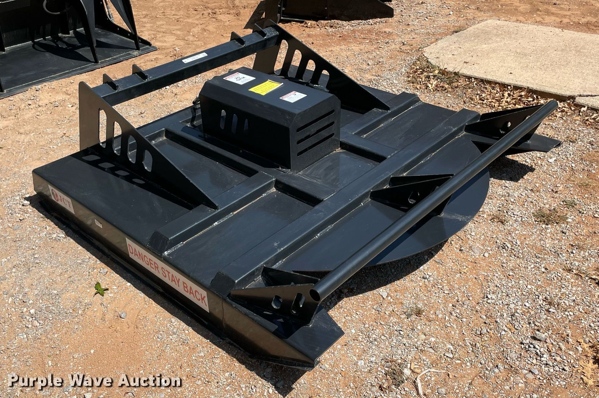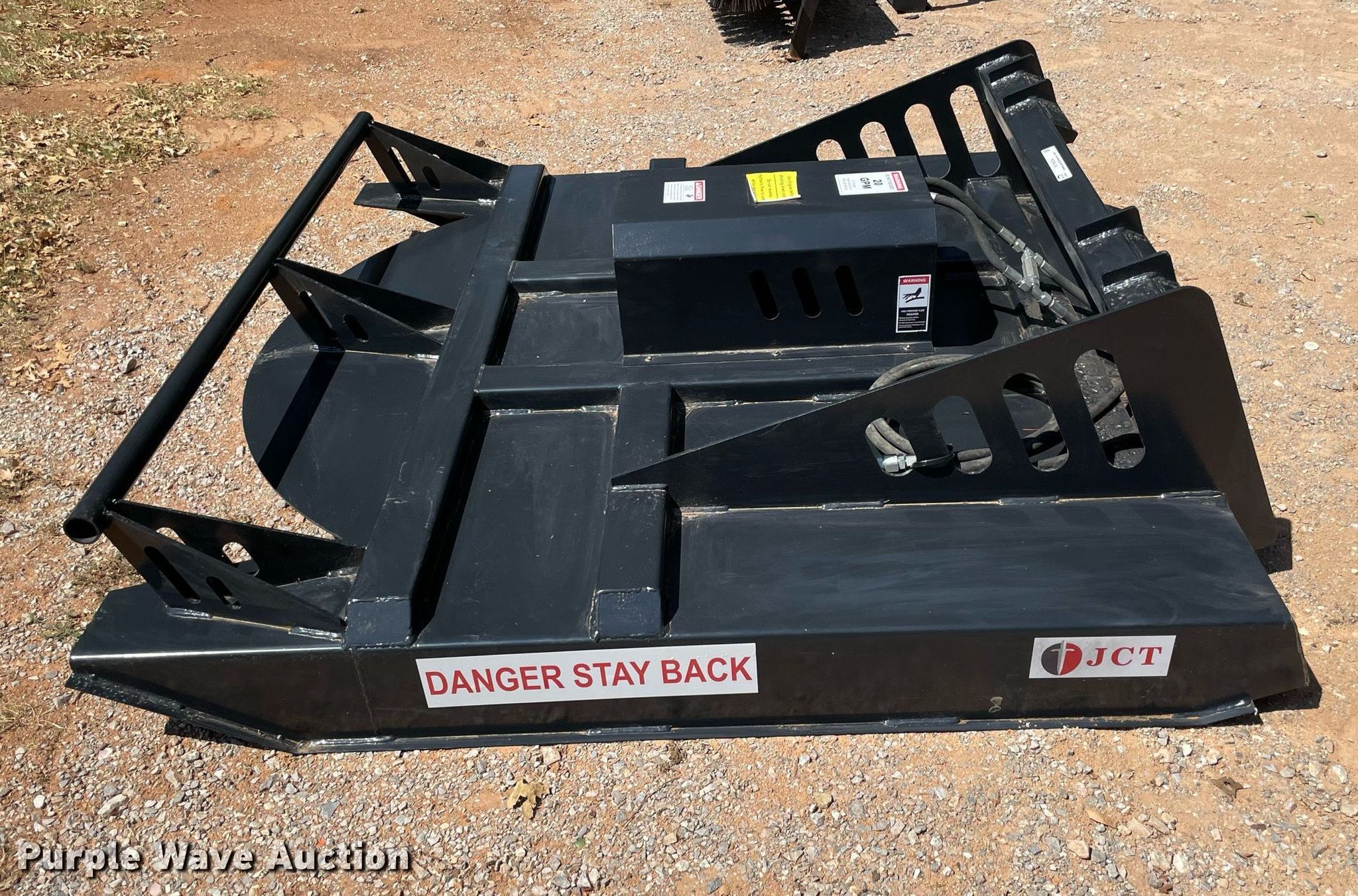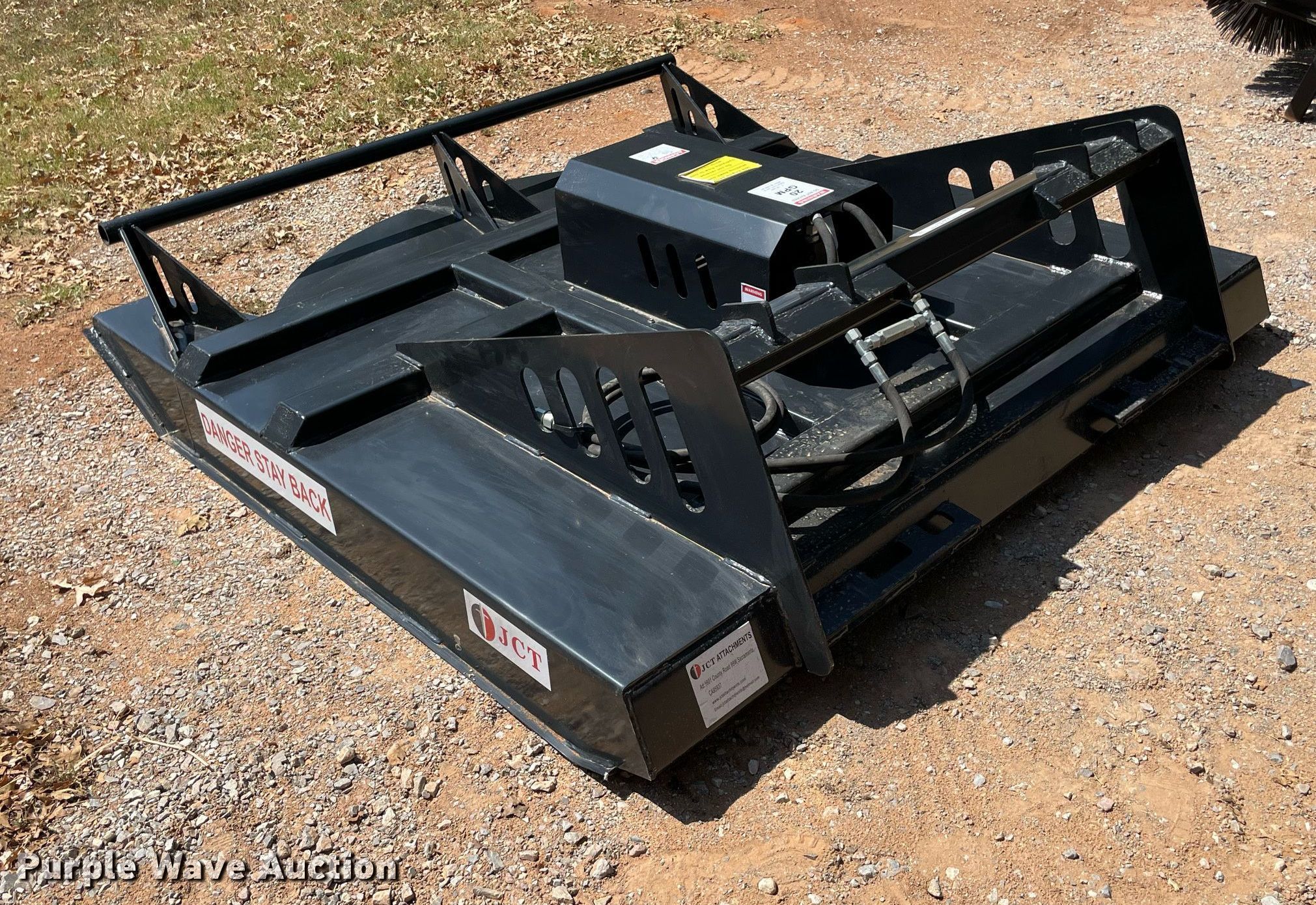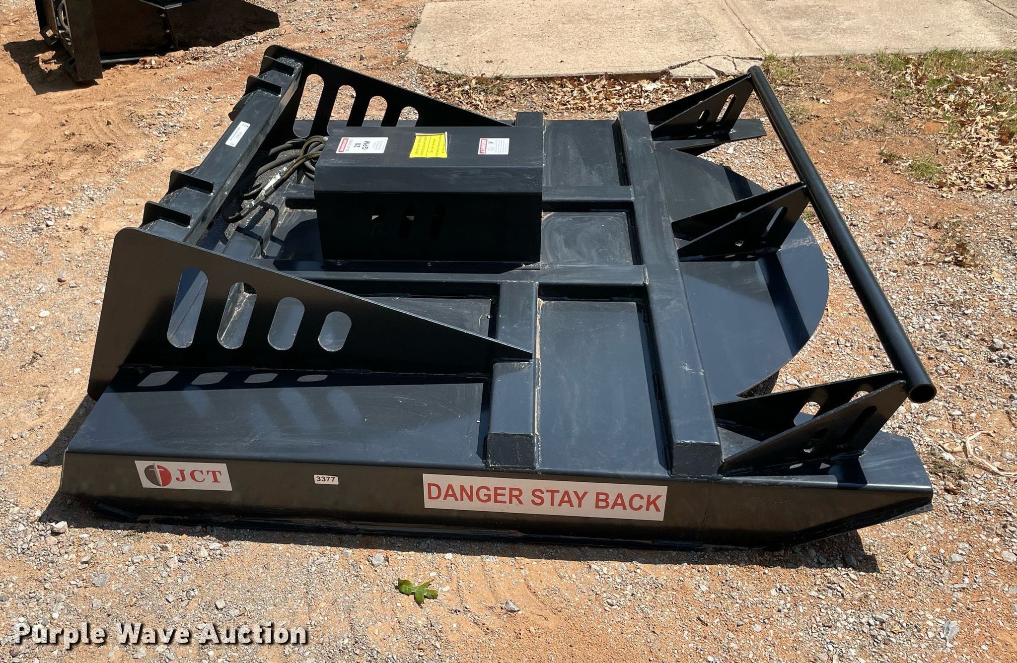 Purple Wave is selling a used Skid Steer Attach. in Oklahoma. This item is a JCT 72" W skid steer rotary mower with the following: JCT 72" W skid steer rotary mower. 24479 Okay Rd. Tecumseh, OK 74873