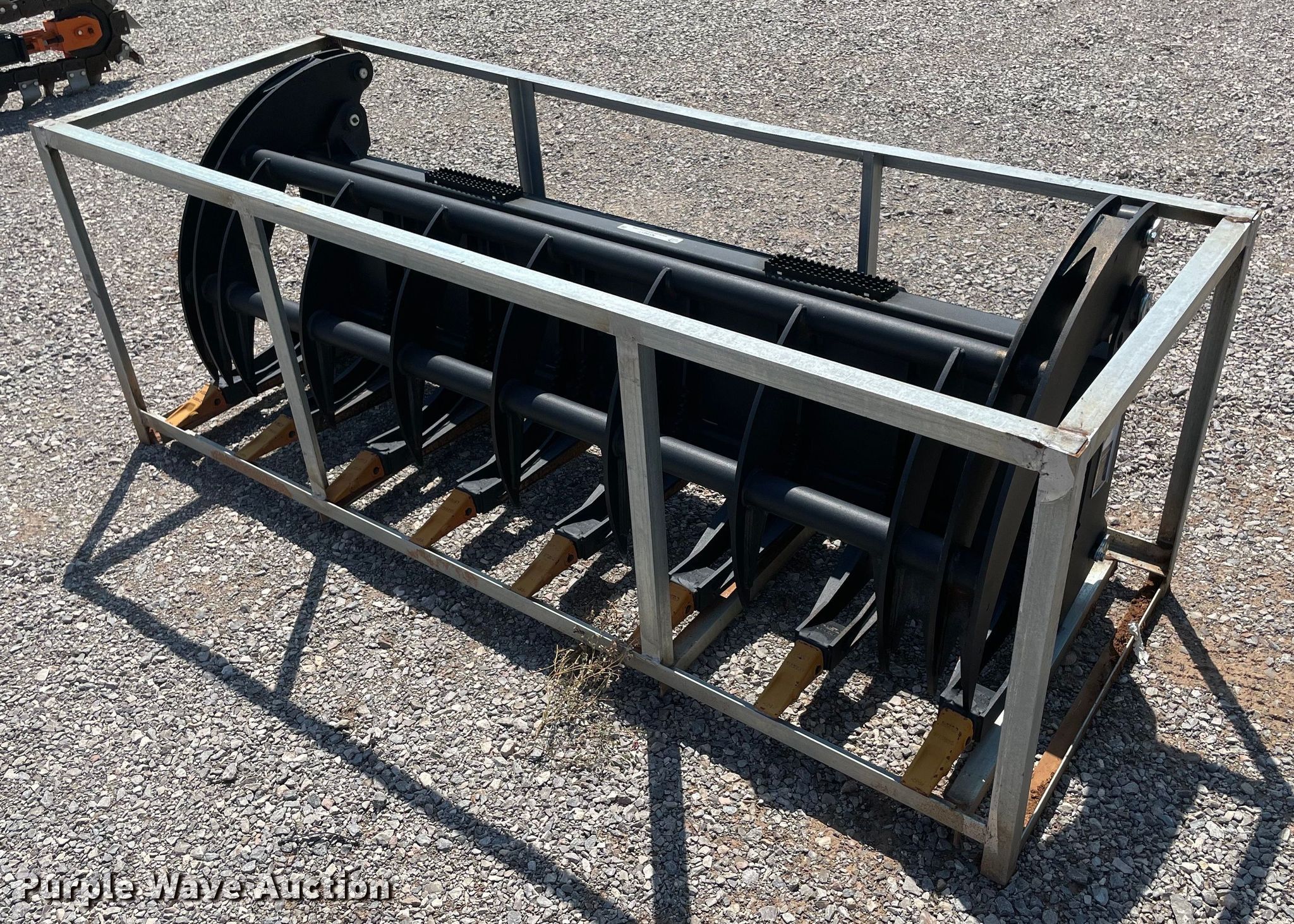Purple Wave is selling a used Skid Steer Attach. in Oklahoma. This item is a 77"W skid steer grapple bucket with the following: 77"W skid steer grapple bucket. Marlow, OK 73055