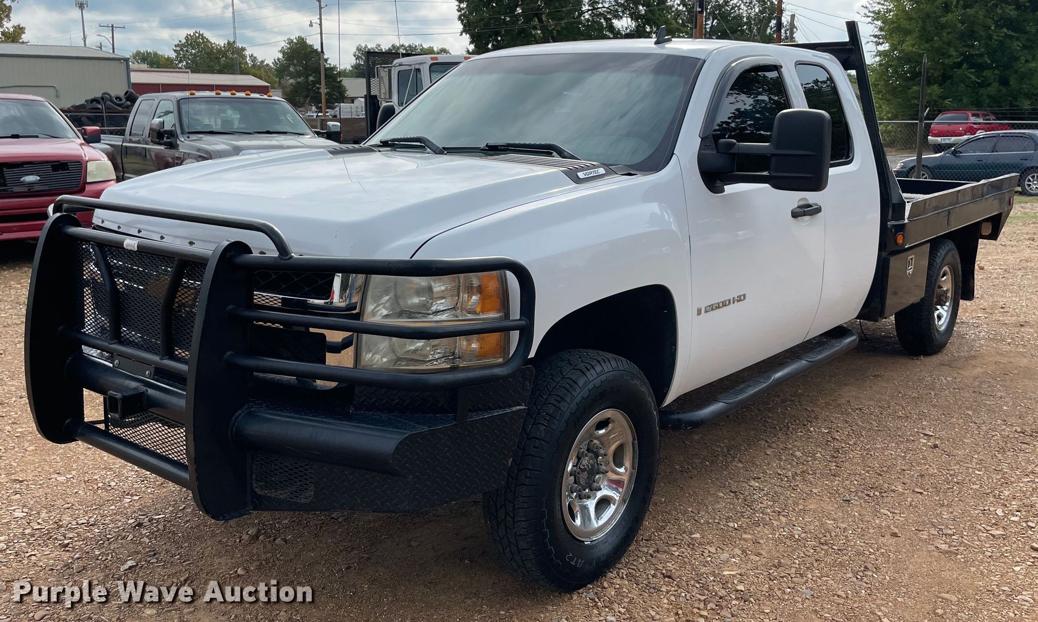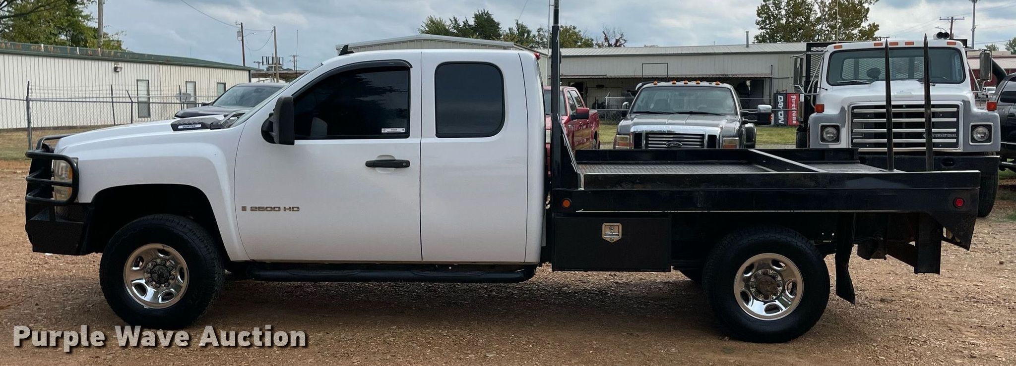 2007 Chevrolet 2500HD bale bed pickup truck. Miles: 357,250 on odometer, VIN: 1GCHK29K07E538451. Engine Displacement: 6.0L V8 OHV, Cylinders: 8, Fuel type: Gas. Transmission Automatic, Four wheel drive. Interior AC, Heat, Cruise control. Features Hydraulic bale bed 103" L x 84" W, Spike, Hitch: Gooseneck. Tires Size: 235/85R16. Notes Dash warning indicator: Check engine, TPMS, ABS, Brake, Airbag, Transmission issue. Oklahoma repo title. Title distribution may be delayed up to 14 days from verification of funds. 208 SW C St. Antlers, OK 74523