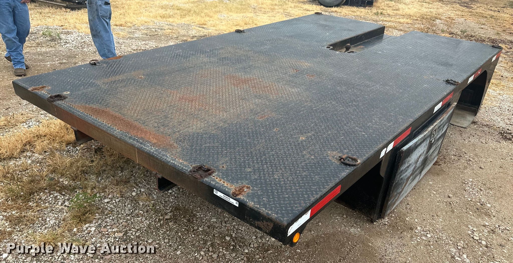 Purple Wave is selling a used Truck Part and Attach. in Kansas. This item is a Flatbed with the following: 13' 9" L x 96" W, Bed type: Steel, Gooseneck hitch