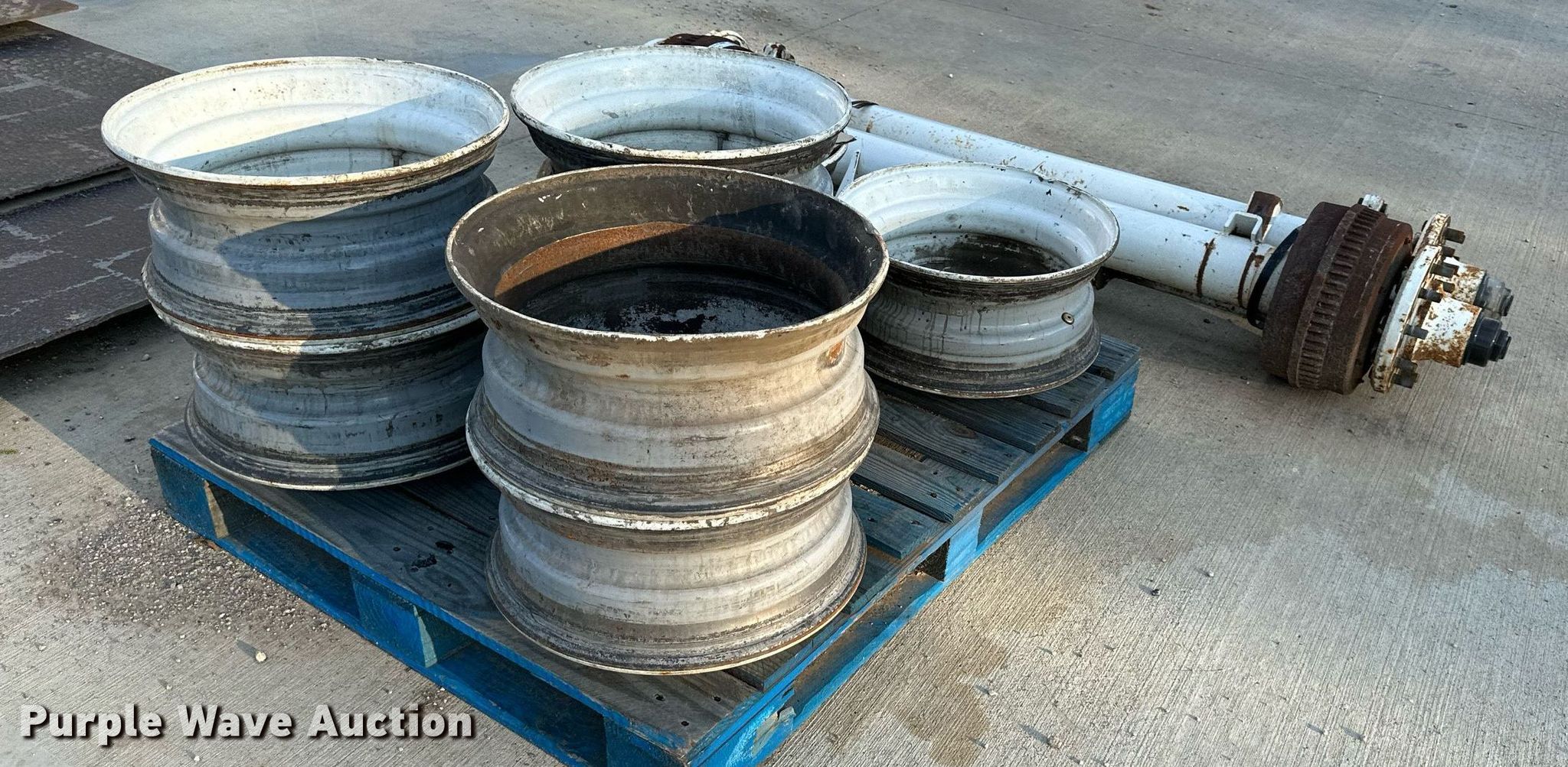 Purple Wave is selling a used Trailer Other in Kansas. This item is a (2) trailer axles with the following: Oil bath hubs, Air brakes, Capacity: approx. 18,000 lbs, (8) wheels, Parts may be missing