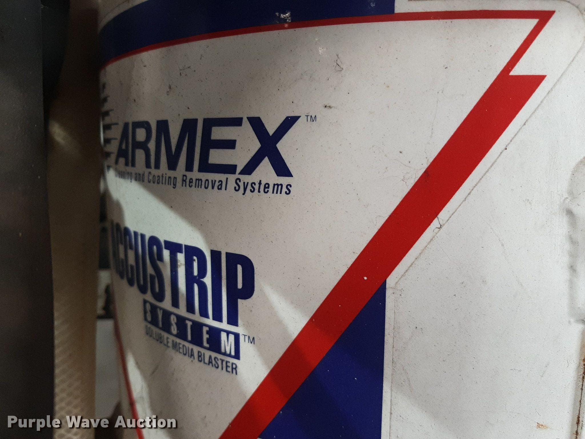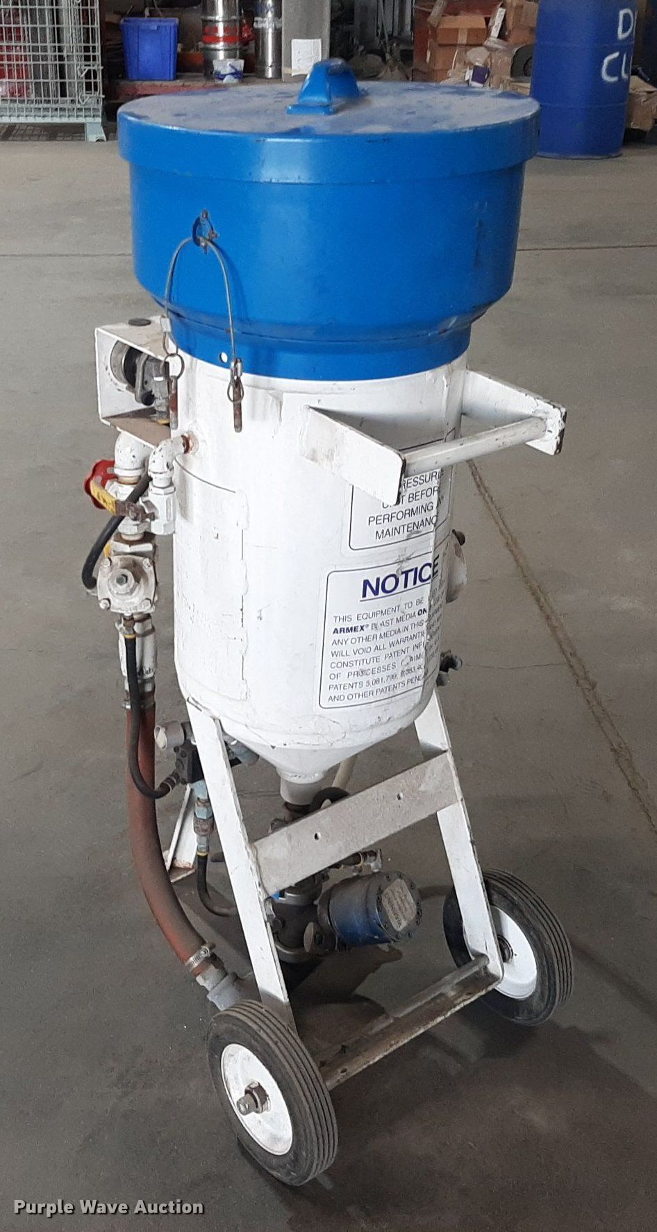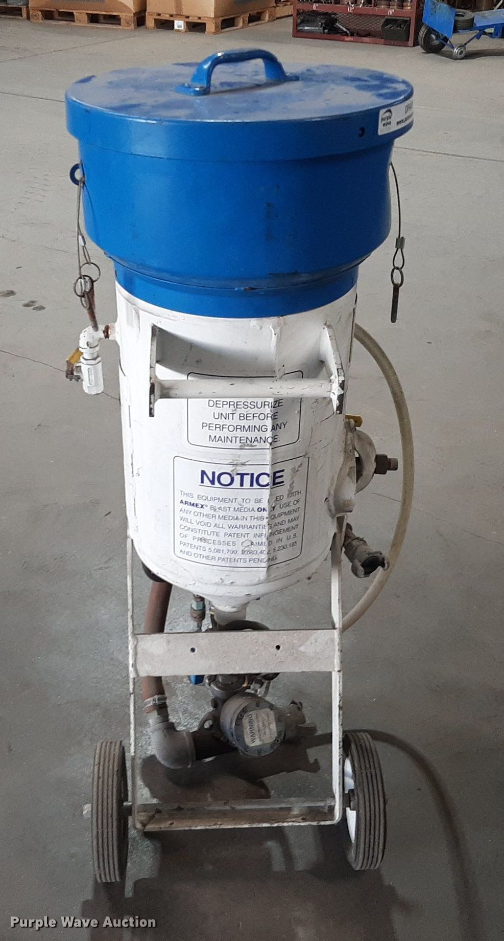 Purple Wave is selling a used Tools in Kansas. This item is a 1998 Armex Soda material blaster with the following: Accustrip System, 15" hopper, 1.5" airline, Unknown operating condition