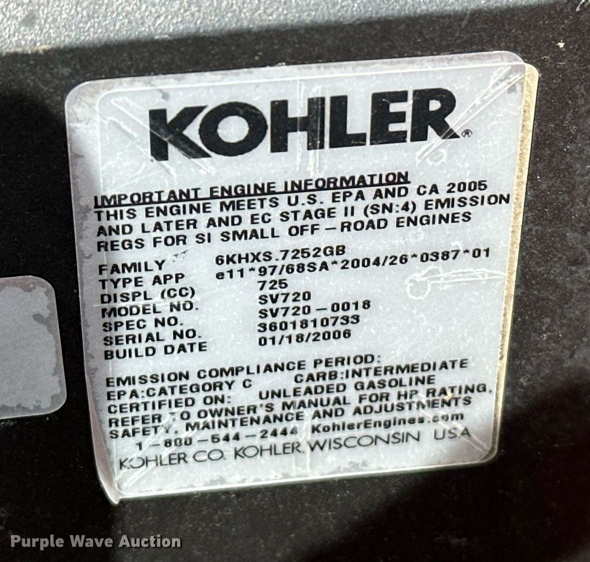 Bad Boy Pro Series ZTR lawn mower. Cutting width: 60", Serial: BBZ6027KO03111025. Engine Kohler SV720, Displacement: 725 cc, Cylinders: 2, Fuel type: Gas. Transmission Hydrostatic. Tires Front: 13X6.50-6, Rear: 20X10.50-8. Notes Flat tire , Possible engine issues, needs tune up. 113632 S 4203 Rd. Checotah, OK 74426