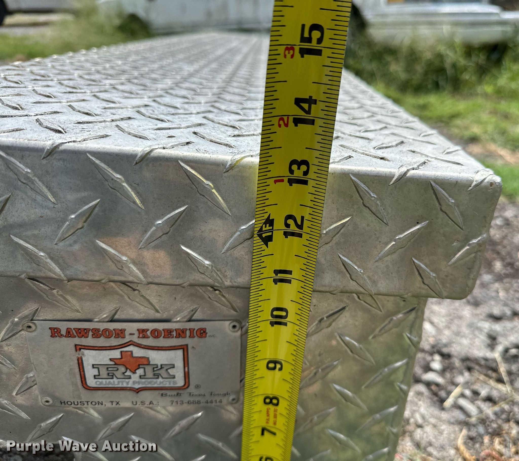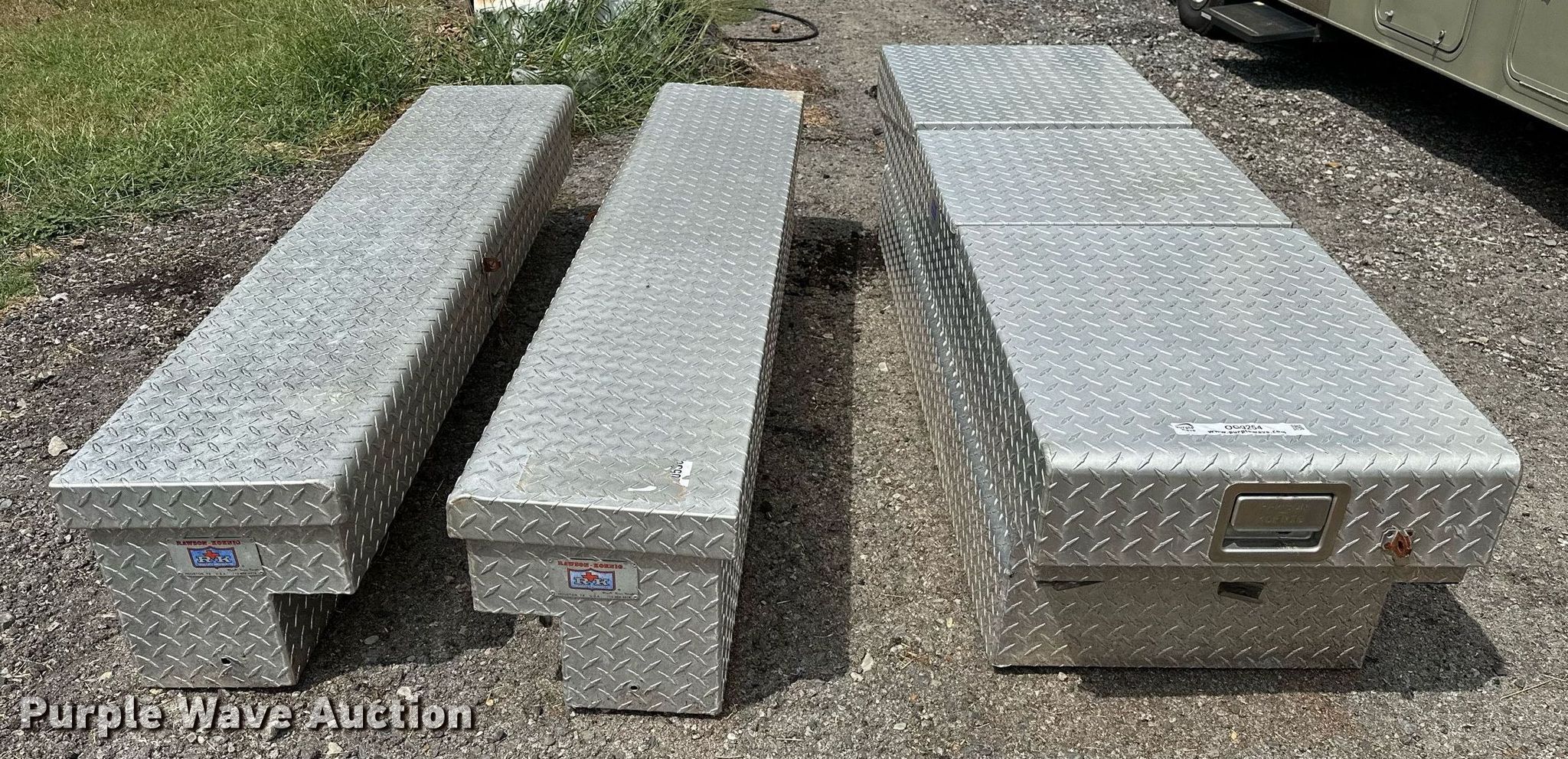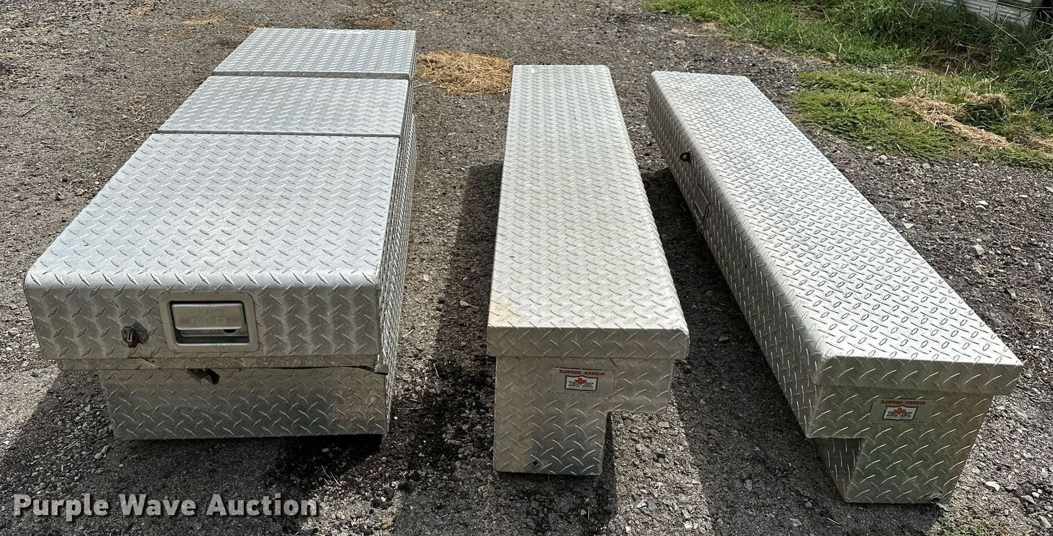 Purple Wave is selling a used Automotive Parts or Acces. in Oklahoma. This item is a Automotive accessories with the following: Auxiliary fuel tank, 48" x 24" x 24", Pump, Volts: 12, Unknown operating condition, (3) Rawson-Koeing toolboxes, (2) 68" x 13" x 13", 70" x 21" x 17"
