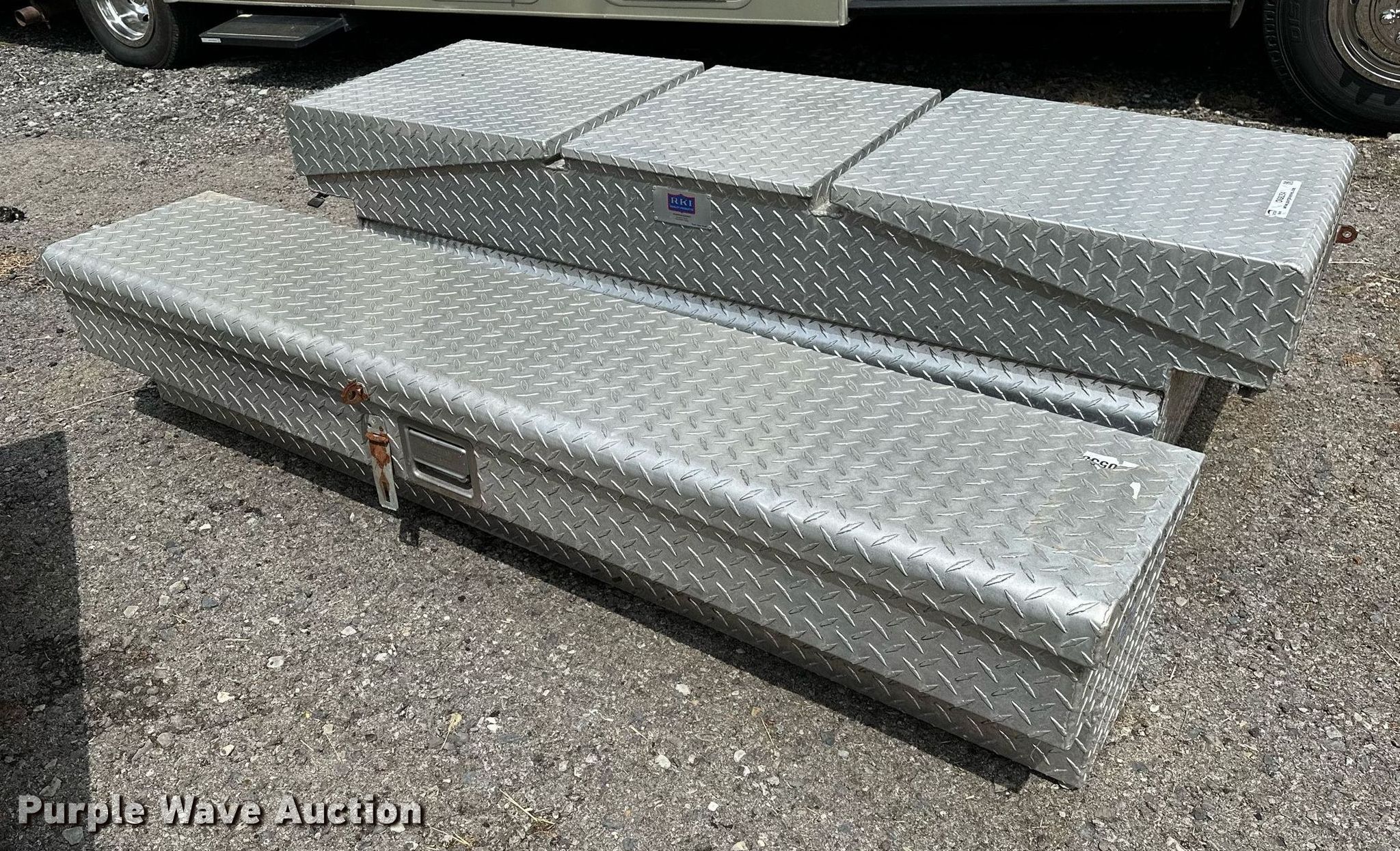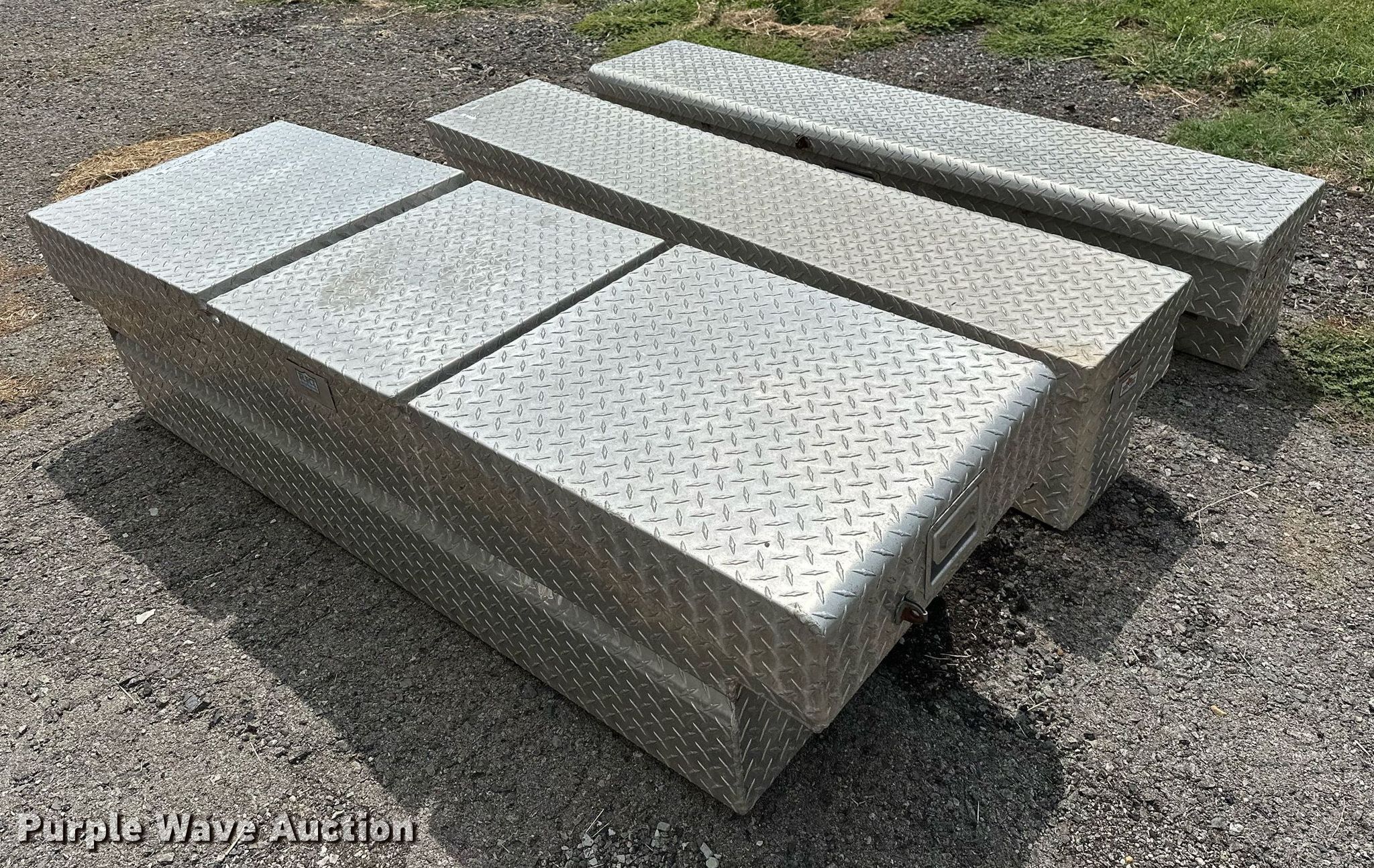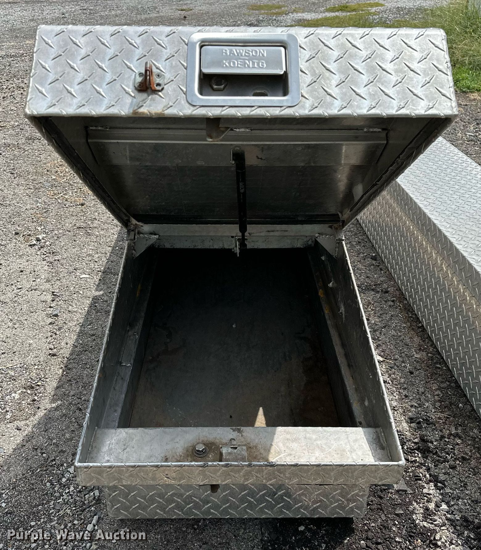 Purple Wave is selling a used Automotive Parts or Acces. in Oklahoma. This item is a Automotive accessories with the following: Auxiliary fuel tank, 48" x 24" x 24", Pump, Volts: 12, Unknown operating condition, (3) Rawson-Koeing toolboxes, (2) 68" x 13" x 13", 70" x 21" x 17"