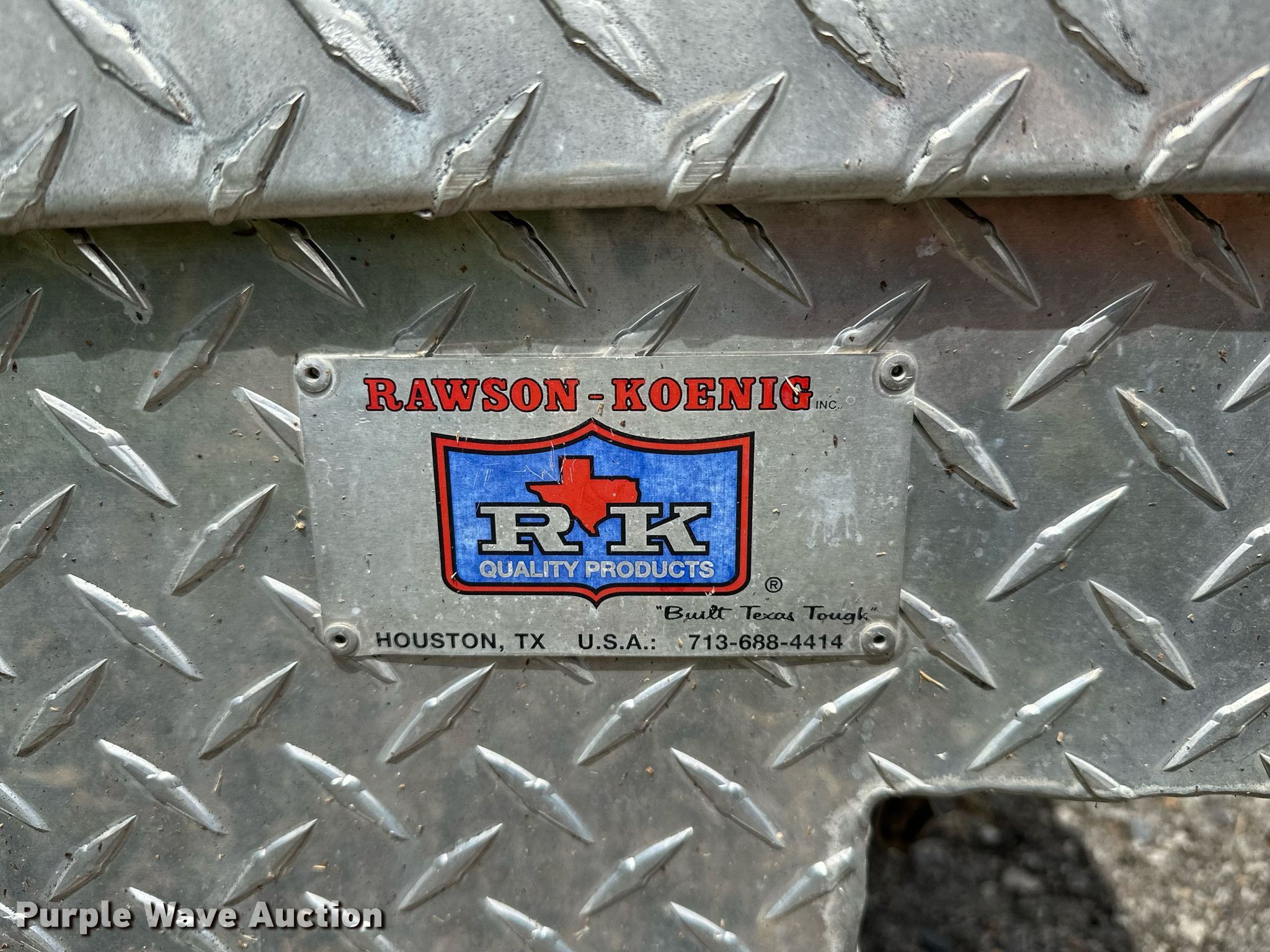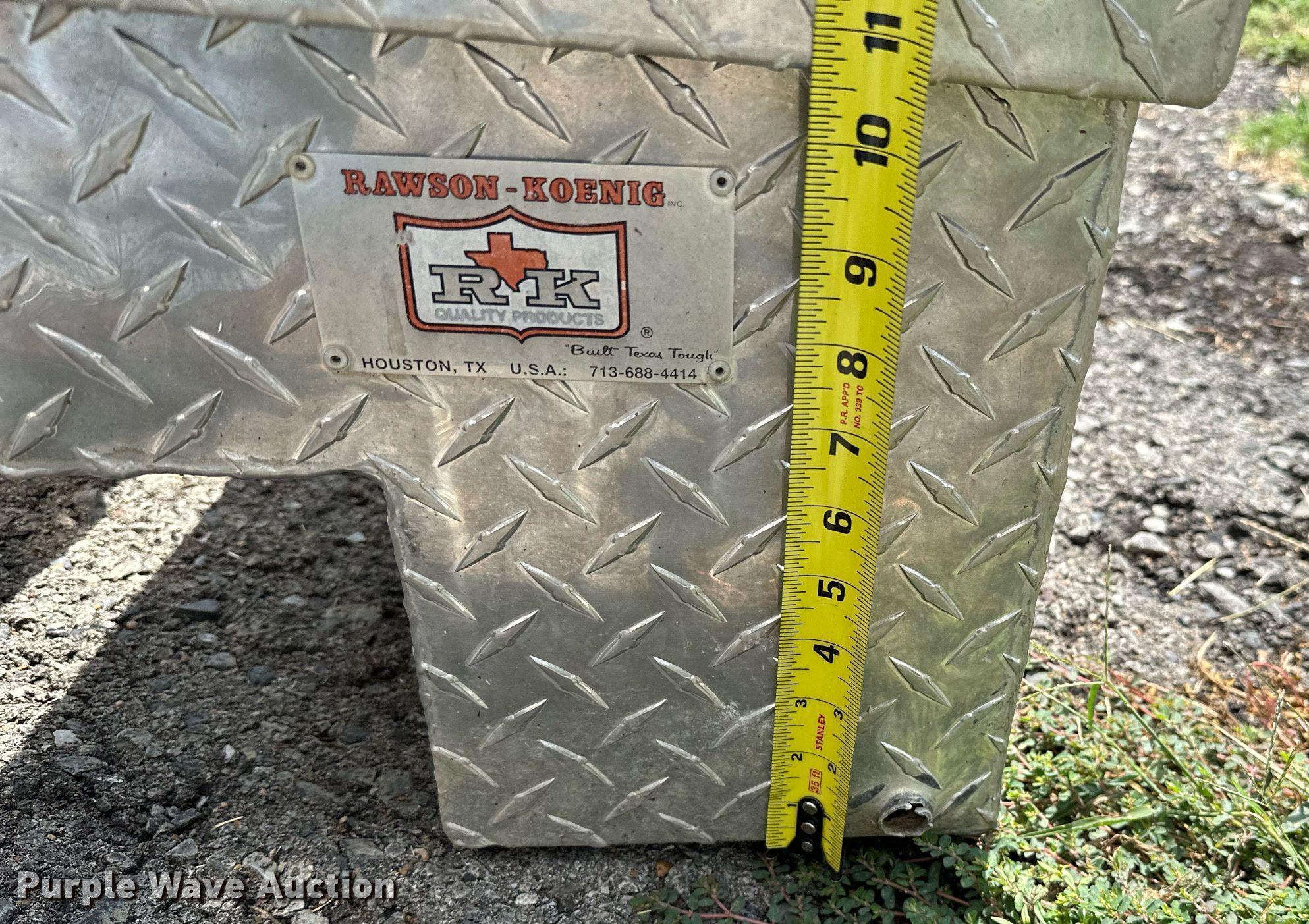Automotive accessories. Auxiliary fuel tank , 48" x 24" x 24", Pump Volts: 12, Unknown operating condition, (3) Rawson-Koeing toolboxes (2) 68" x 13" x 13", 70" x 21" x 17". 113632 S 4203 Rd. Checotah, OK 74426