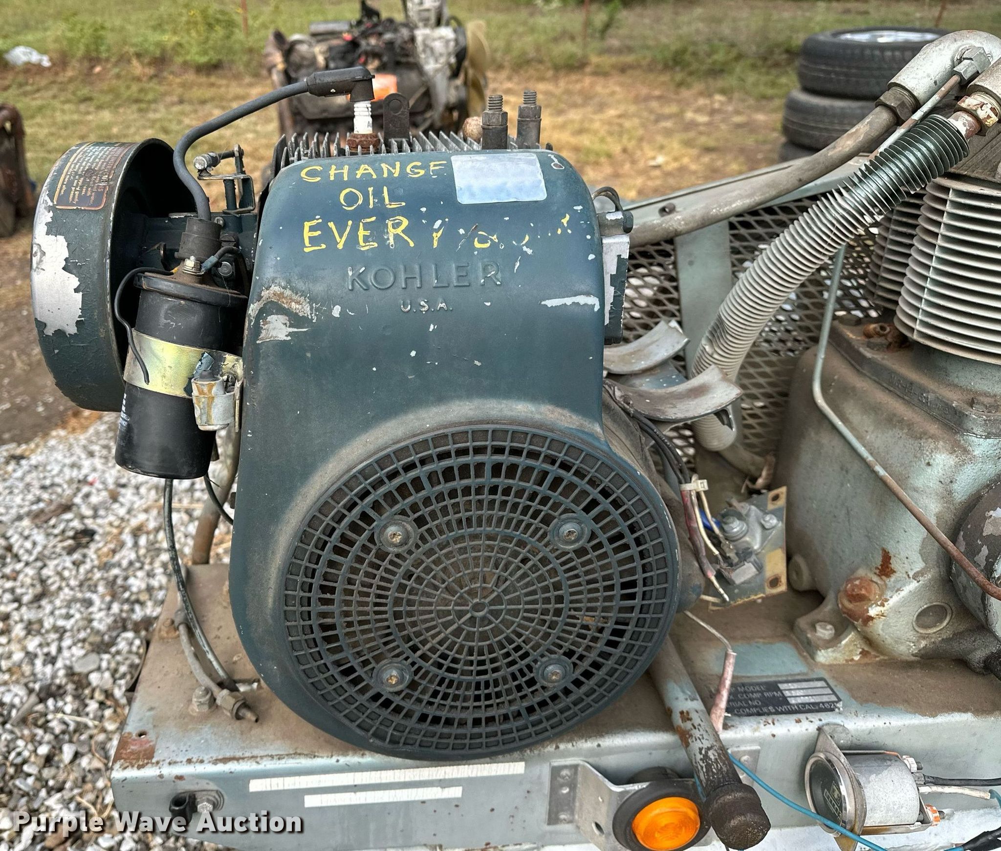 Purple Wave is selling a used Air Compressor in Oklahoma. This item is a 1986 Brunner air compressor with the following: Kohler, Cylinders: 1, Fuel type: Gas