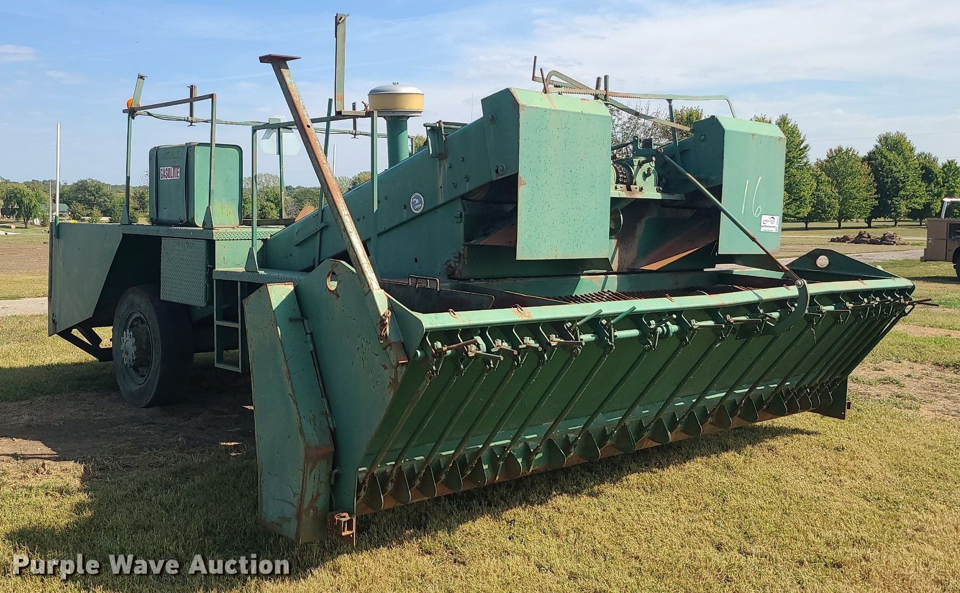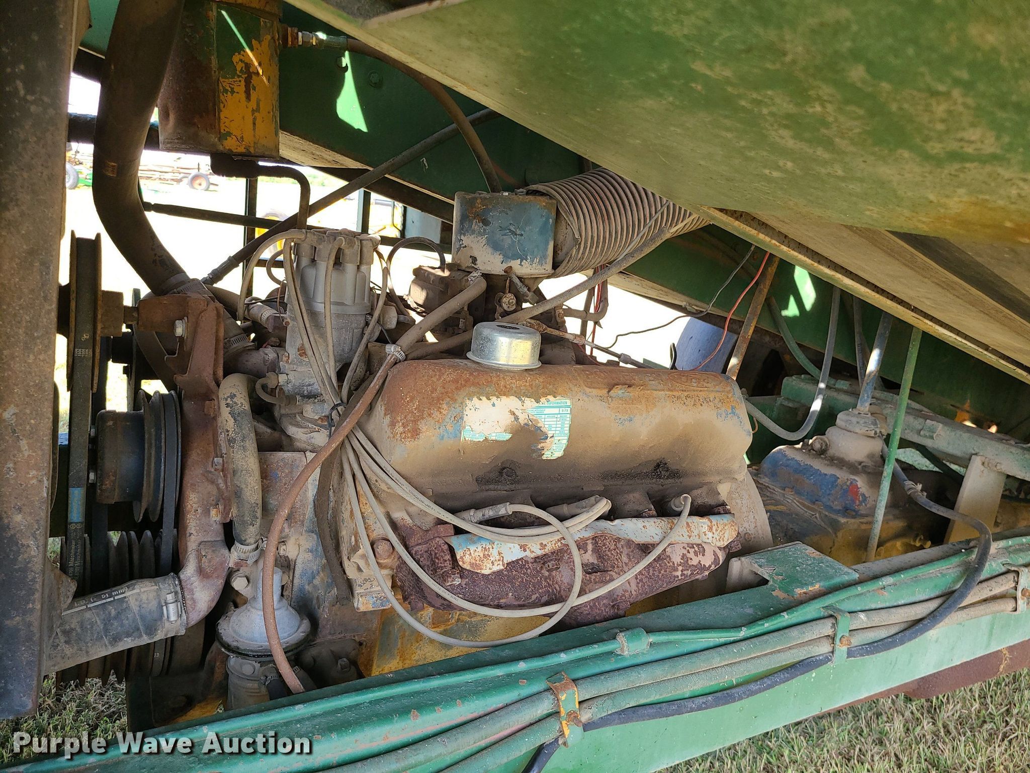 Buffalo-Springfield Co K chip spreader. Hours: 252 on meter, Serial: 70135, Unit #: 16. Engine Ford, Cylinders: 8, Fuel type: Gas. Features Front spread hopper width: 13'6", Material conveyor Width: 12". Tires Size: 10.00-20, Brand: Goodyear. Helt's Turf Farms. 24600 E State Rt. P. Pleasant Hill, MO 64080