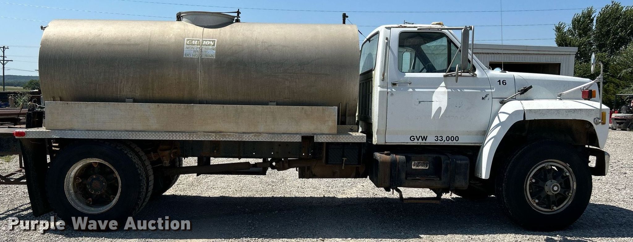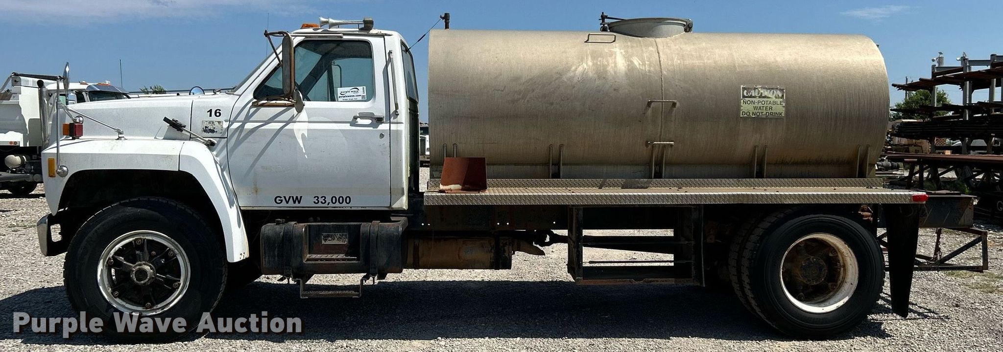 Purple Wave is selling a used Tank Truck or Water Truck in Oklahoma. This item is a 1988 Ford F700 tank truck with the following: Miles: 30,321 on odometer, Hours: 3,640 on meter, VIN: 1FDXK84A0JVA56031, Unit #: 16