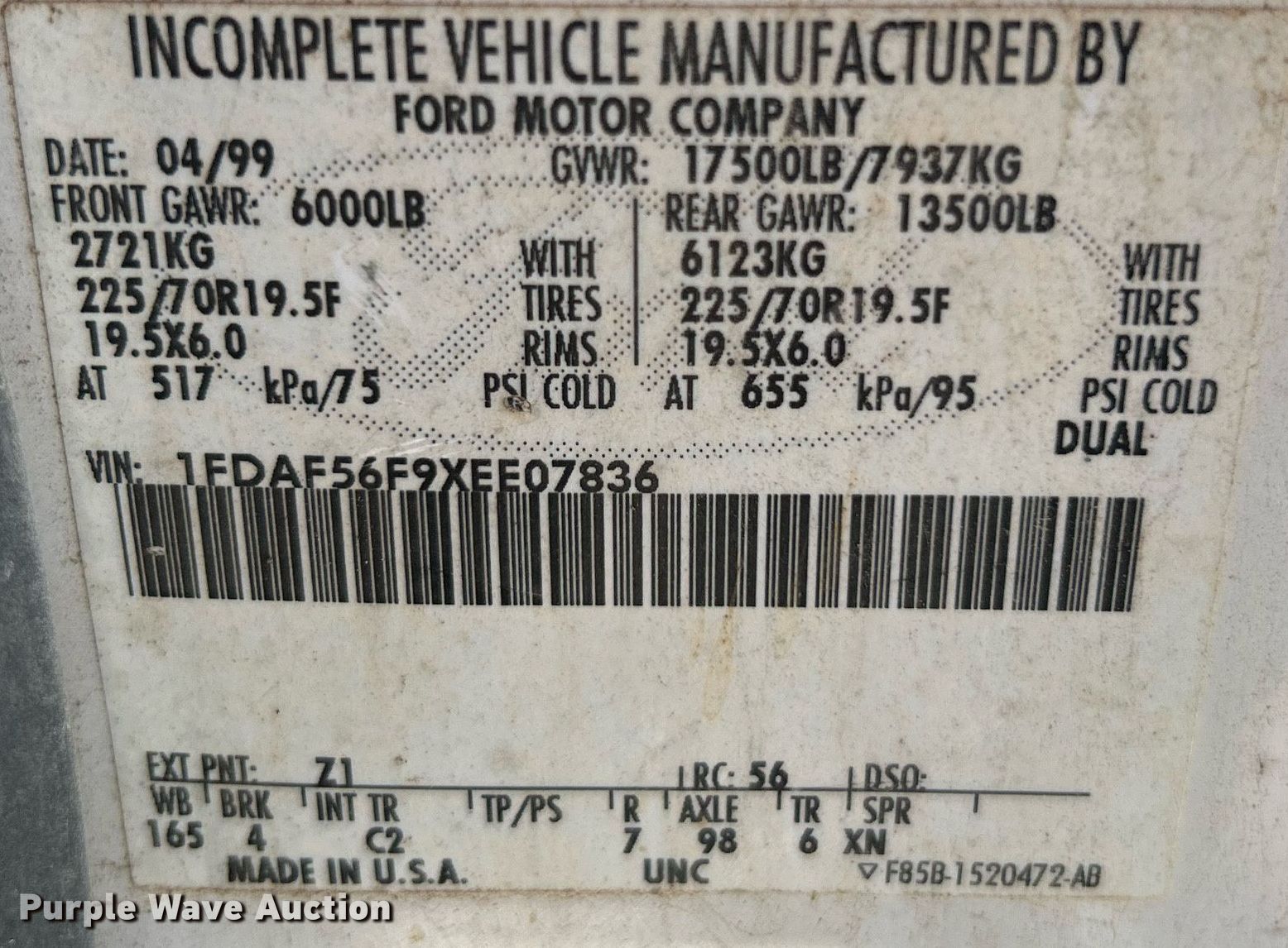 - VIN: 1FDAF56F9XEE07836