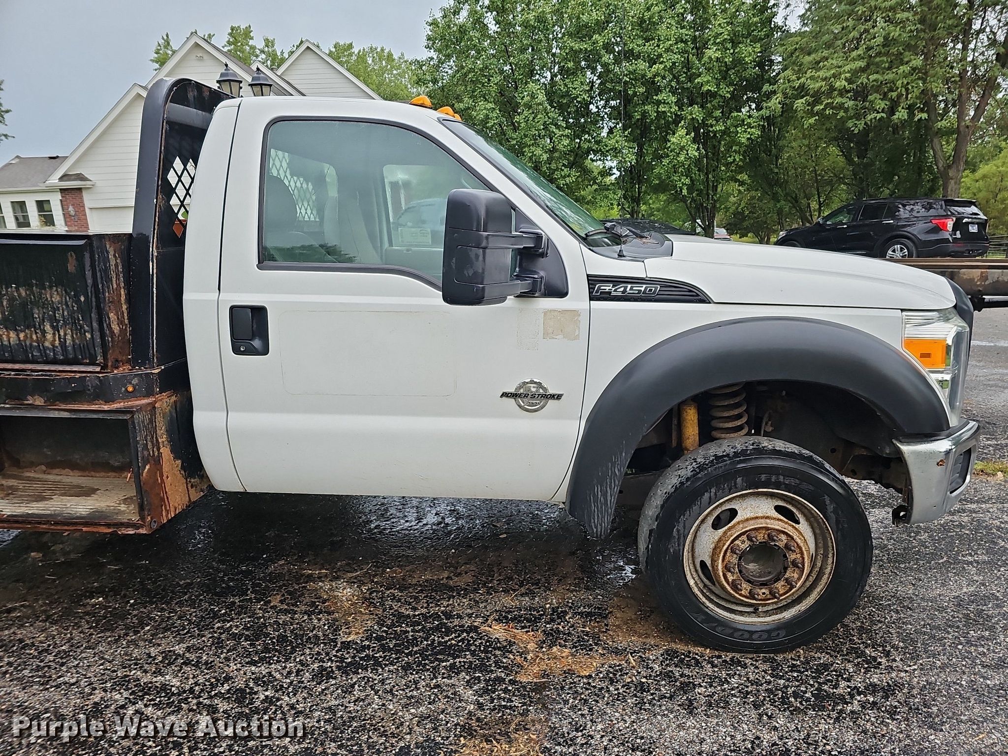 This 2013 Ford F450 Super Duty flatbed truck will sell to the highest bidder regardless of price.