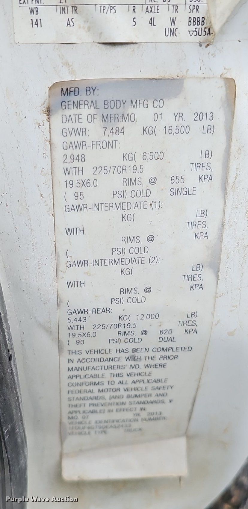 - VIN: 1FDUF4GT9DEA52433