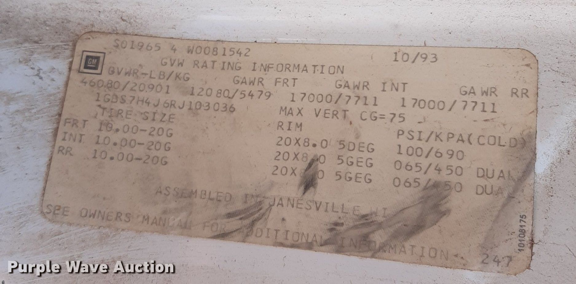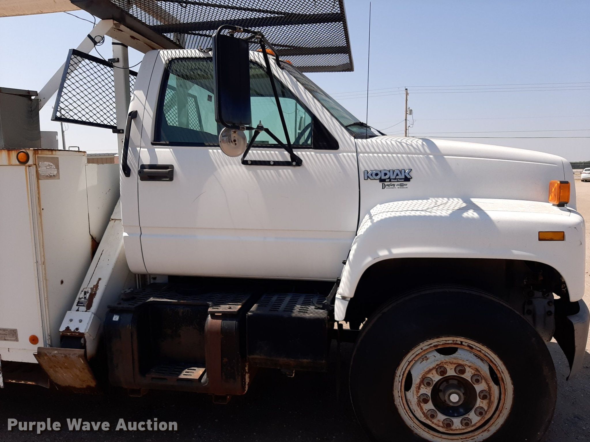 Purple Wave is selling a used Bucket Truck in Kansas. This item is a 1994 Chevrolet Kodiak bucket truck with the following: Miles: 158,238 on odometer, Hours: 12,211 on meter, VIN: 1GBS7H4J6RJ103036