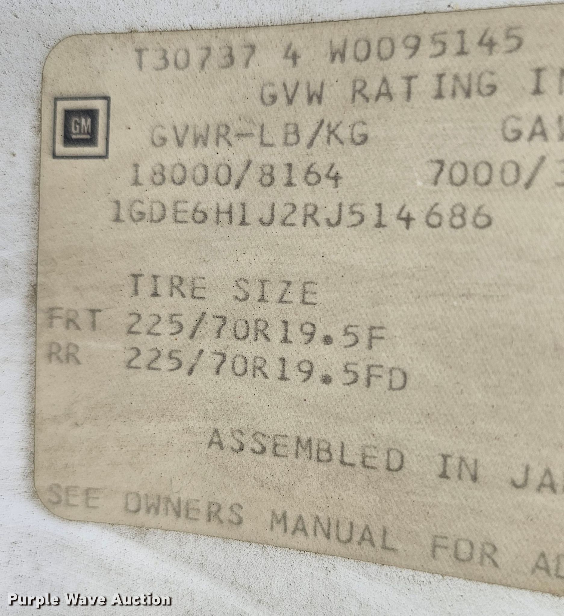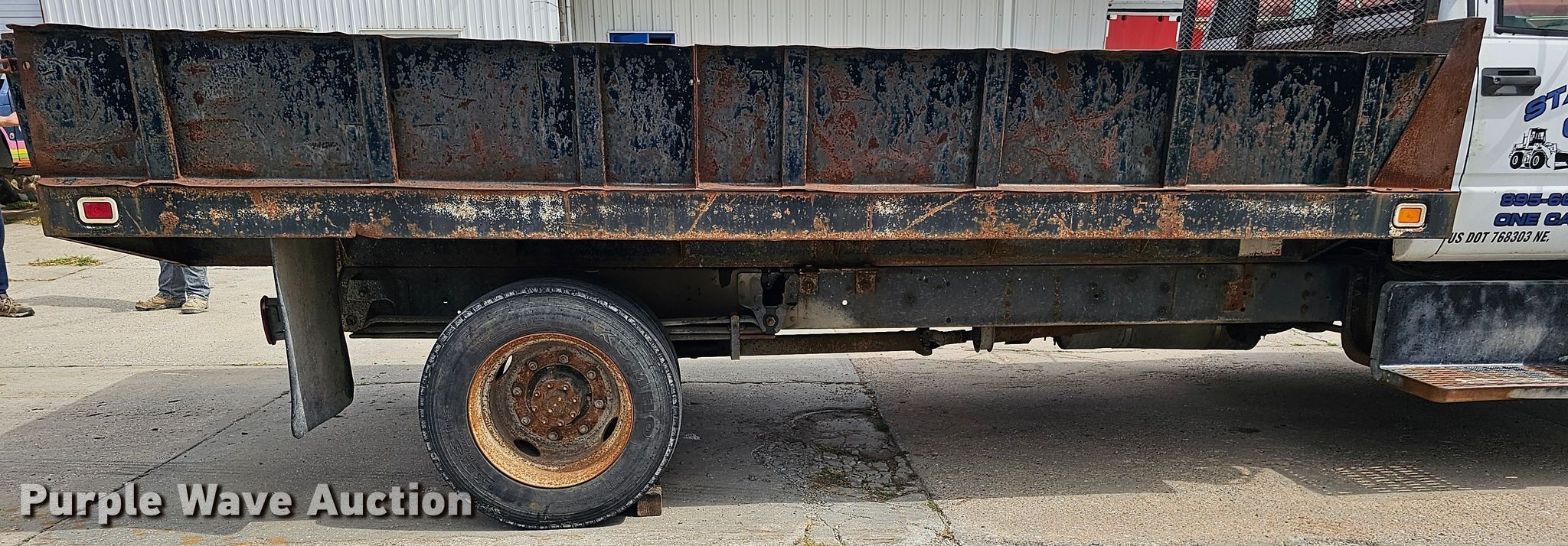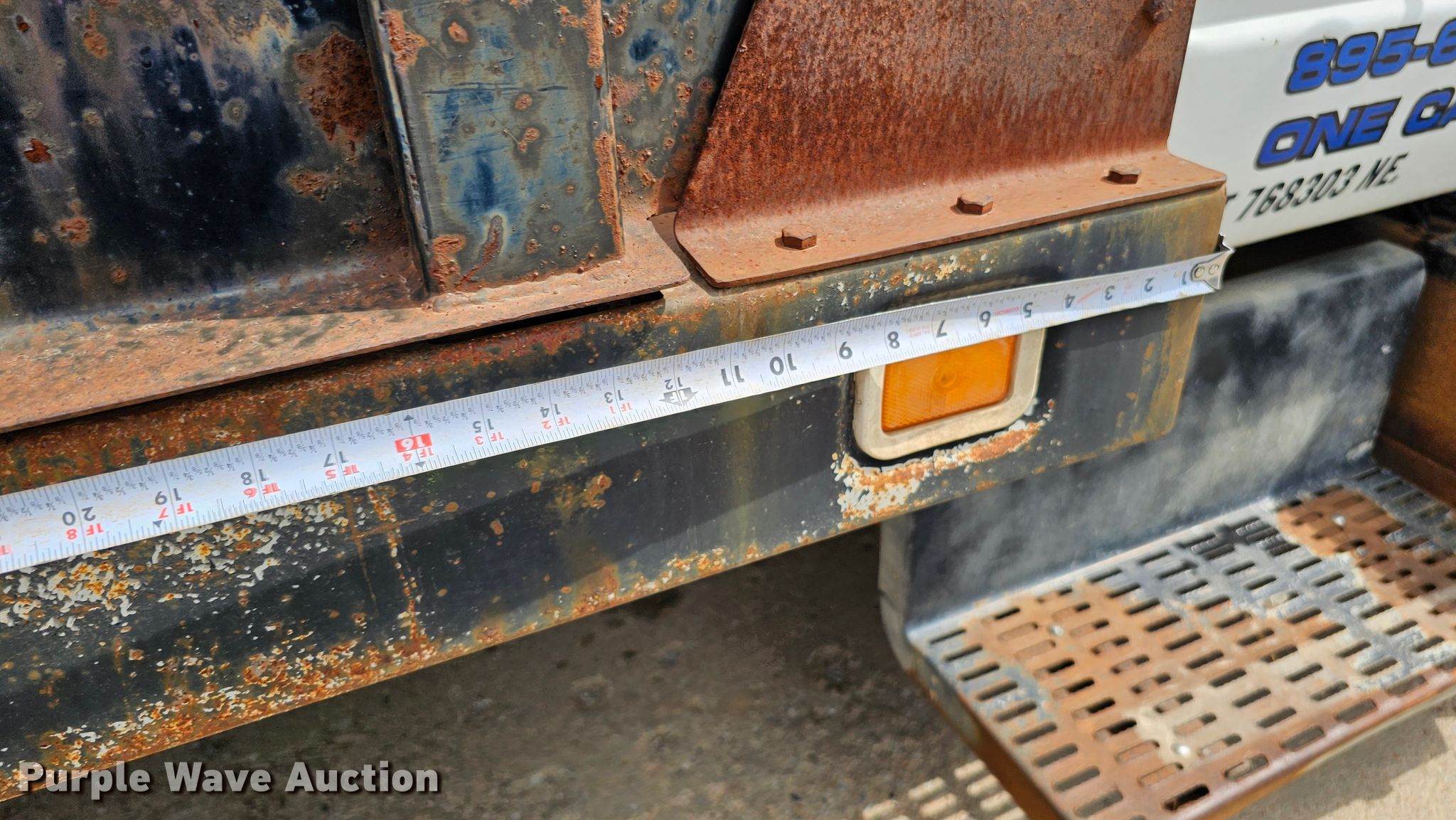 1994 GMC TopKick dump flatbed truck. Miles: 436,747 on odometer, VIN: 1GDE6H1J2RJ514686. Engine Caterpillar 3116, Displacement: 6.6L, Cylinders: 6, Fuel type: Diesel, HP: 170. Transmission Manual, Speed: 6. Chassis Axles: Single, Suspension: Spring, Brakes: Hydraulic, PTO, GVWR: 18,000 lbs, Wheelbase: 194". Interior AC, Heat, Brake controller. Features Dump flatbed Knapheide, Serial: 947791, 14' 3" L x 96" W, Removable sides, Ram: Single. Tires Size: 245/70R19.5. Notes Windshield chipped or cracked, Non-operational park brake, Hydraulic valve body issues. Nebraska title. Title distribution may be delayed up to 14 days from verification of funds. 15299 Chandler Road. Omaha, NE 68138