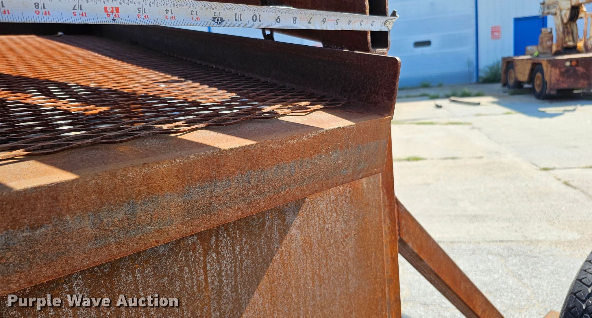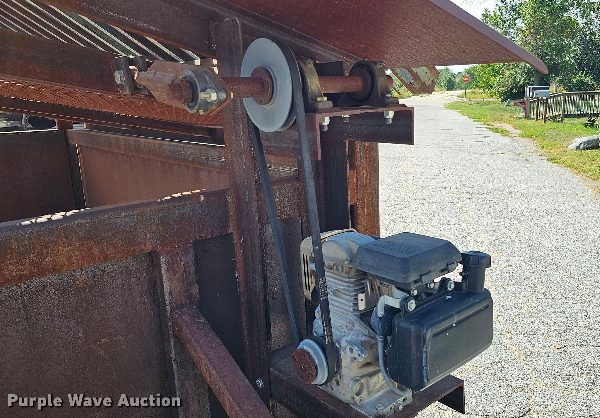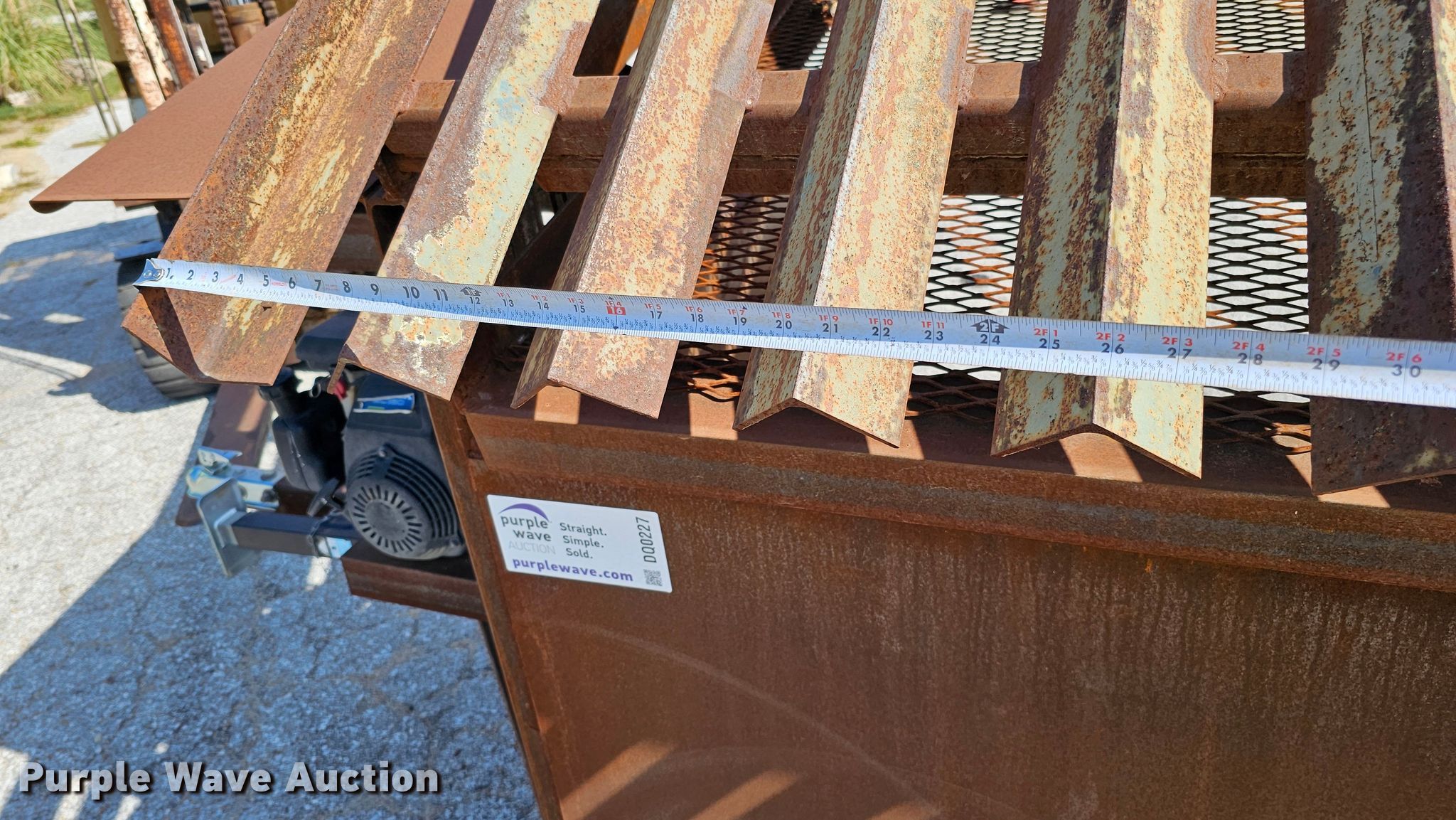 Shop built grizzly bar. Dimensions. Overall: 17'8" L x 70" W x 91" H. Engine Honda GC160, Cylinders: 1, Fuel type: Gas, Recoil start. Features Screen deck Length: 116", Width: 52", Decks: Single, Screen size: 3/4", Input hopper Length: 10' 4", Width: 72", Grizzly bar 2" spacing, Vibrating. Chassis Hitch: 2" ball, Landing gear: Single leg. Tires Size: P235/70R15. Transfer of ownership documentation will be a bill of sale. 15299 Chandler Road. Omaha, NE 68138