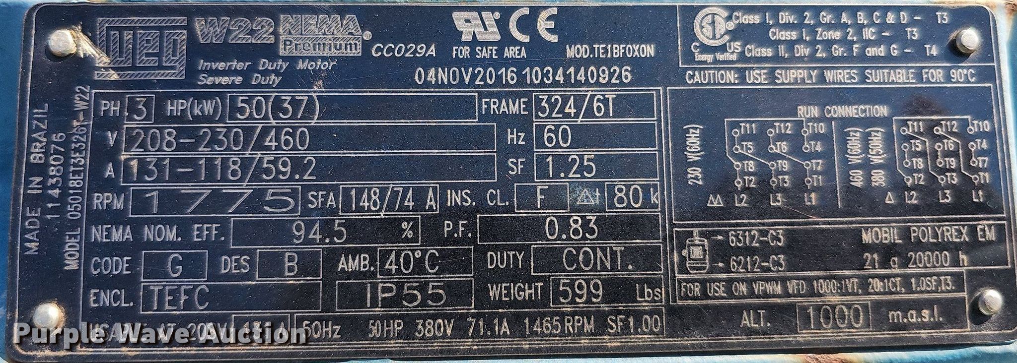(3) sol-clay washers. Eagle Iron Works sol-clay washer. Serial: 9788. Electric Motor Lincoln M4115T, HP: 50, Volts: 230/460, Phase: Three. Features 19' 6" L x 55" W x 47.5" H. Notes (2) additional 16' 7" L screws Unused, Parts may be missing, Non-operational unit. Sol-clay washer. Electric Motor Weg W22, HP: 50, kW: 37, Volts: 208-230/460, Phase: Three. Features 20' L x 54" W x 29" H. Notes Parts may be missing, Non-operational unit. Sol-clay washer. Electric Motor Lincoln A.C. Serial: 3175479, HP: 40, Volts: 230/460, Phase: Three. Features 19' 8" L x 54" W x 29" H. Notes Parts may be missing, Non-operational unit. Western Sand & Gravel. 249 County Rd G. Ashland, NE 68003