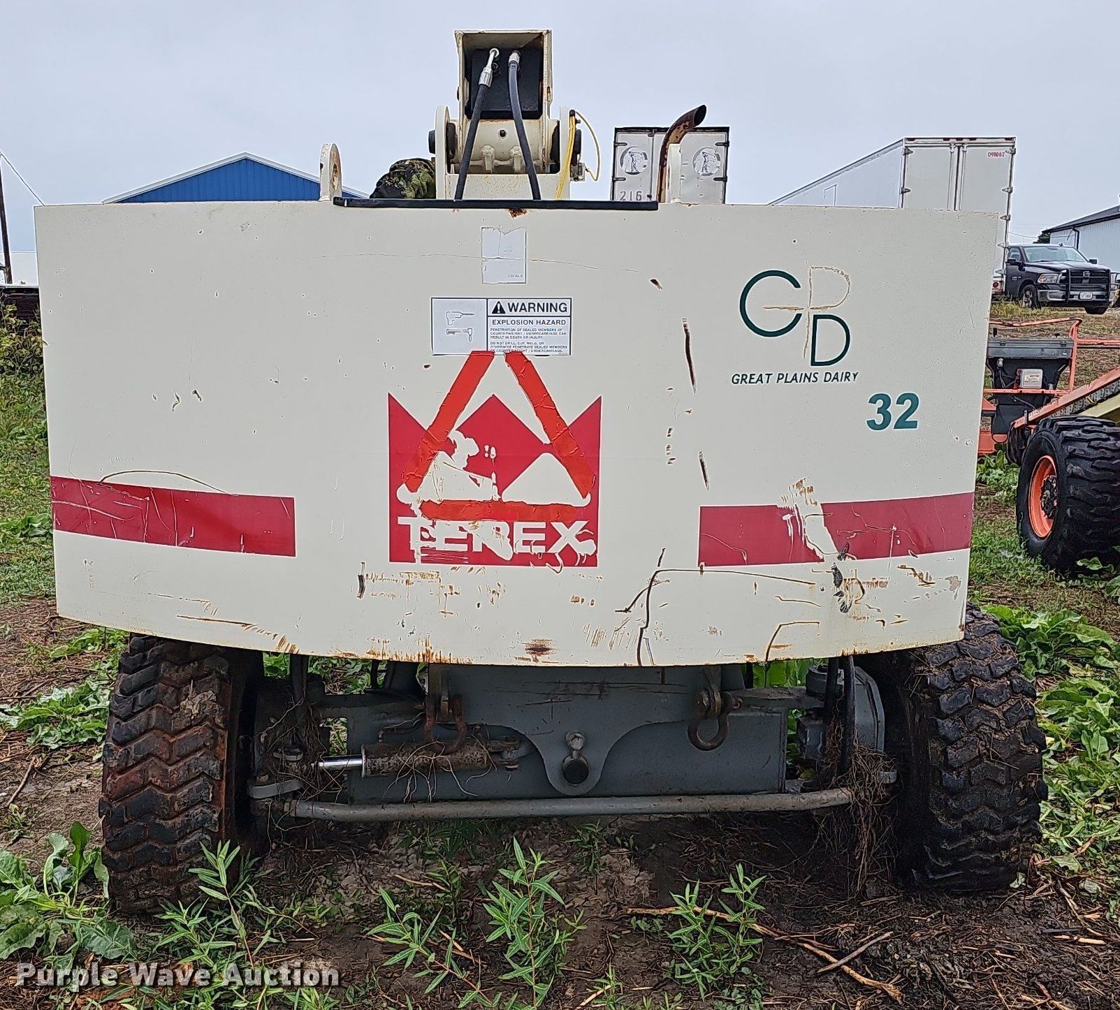 1999 Terex TB44 boom lift. Hours: 3,352 on meter, Serial: 99610258. Engine Ford LRG-425P-6006-A, Serial: 00598-1-01-99, Displacement: 2.5L, Cylinders: 4, Fuel type: Gas. Chassis Four wheel drive. Features Rough terrain, Maximum lift capacity: 600 lbs, Maximum reach length: 37', Maximum lift height: 44', Platform: 96" L x 36" W, AC power outlet, Controls: Platform, Ground, Platform rotation: Hydraulic. Tires Tire size: 12-16.5, Foam filled. Notes Hydraulic leaks, Spark plug missing, Unknown operating condition. Roll Door, Inc. 21803 R & R Road. Gretna, NE 68028