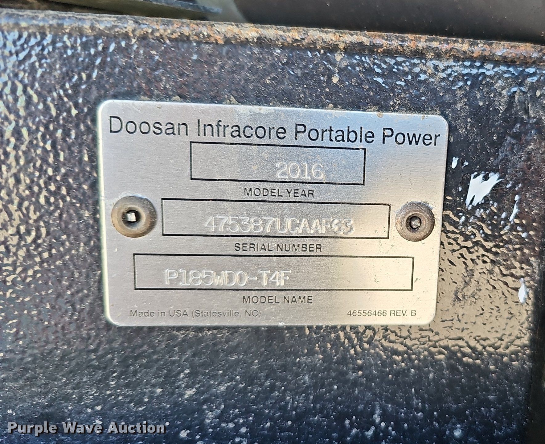2016 Doosan P185WDO-TF air compressor | SOLD! October 12 Construction Equipment Auction