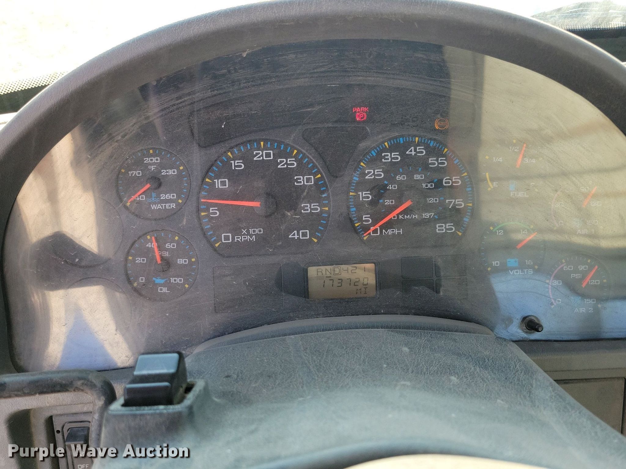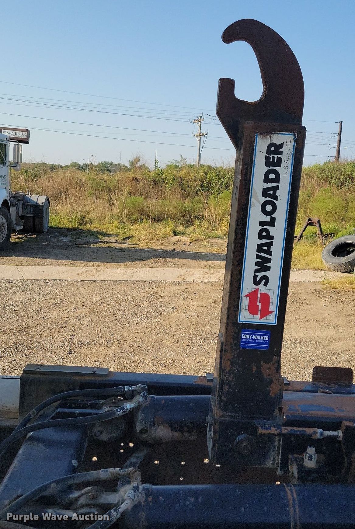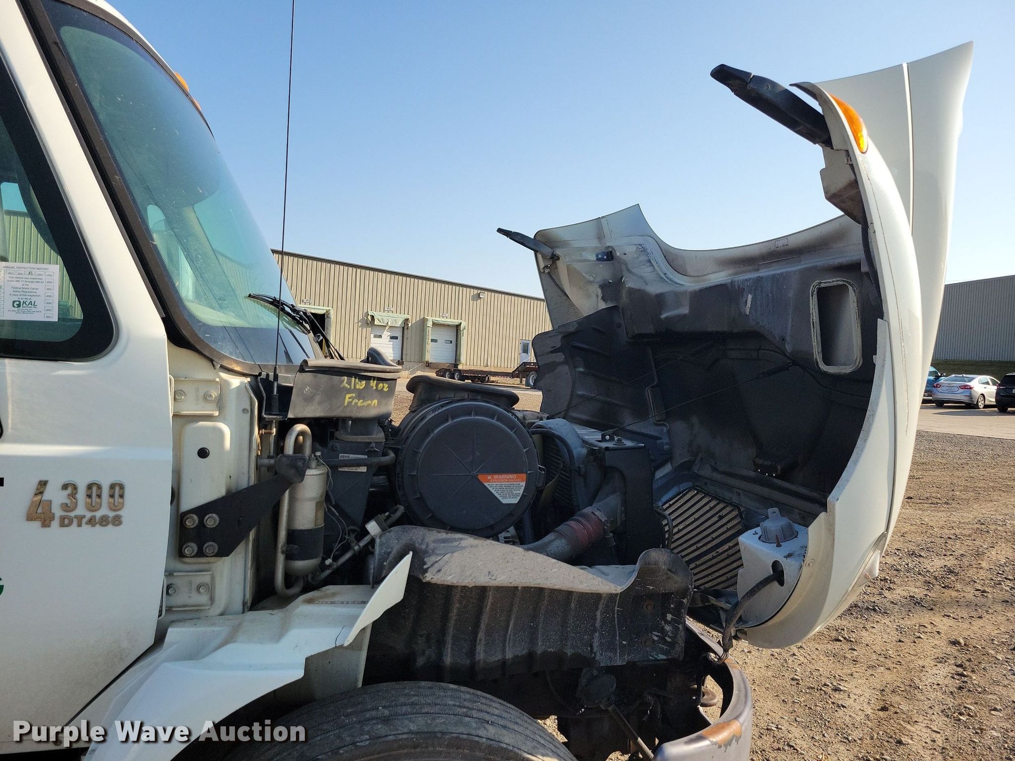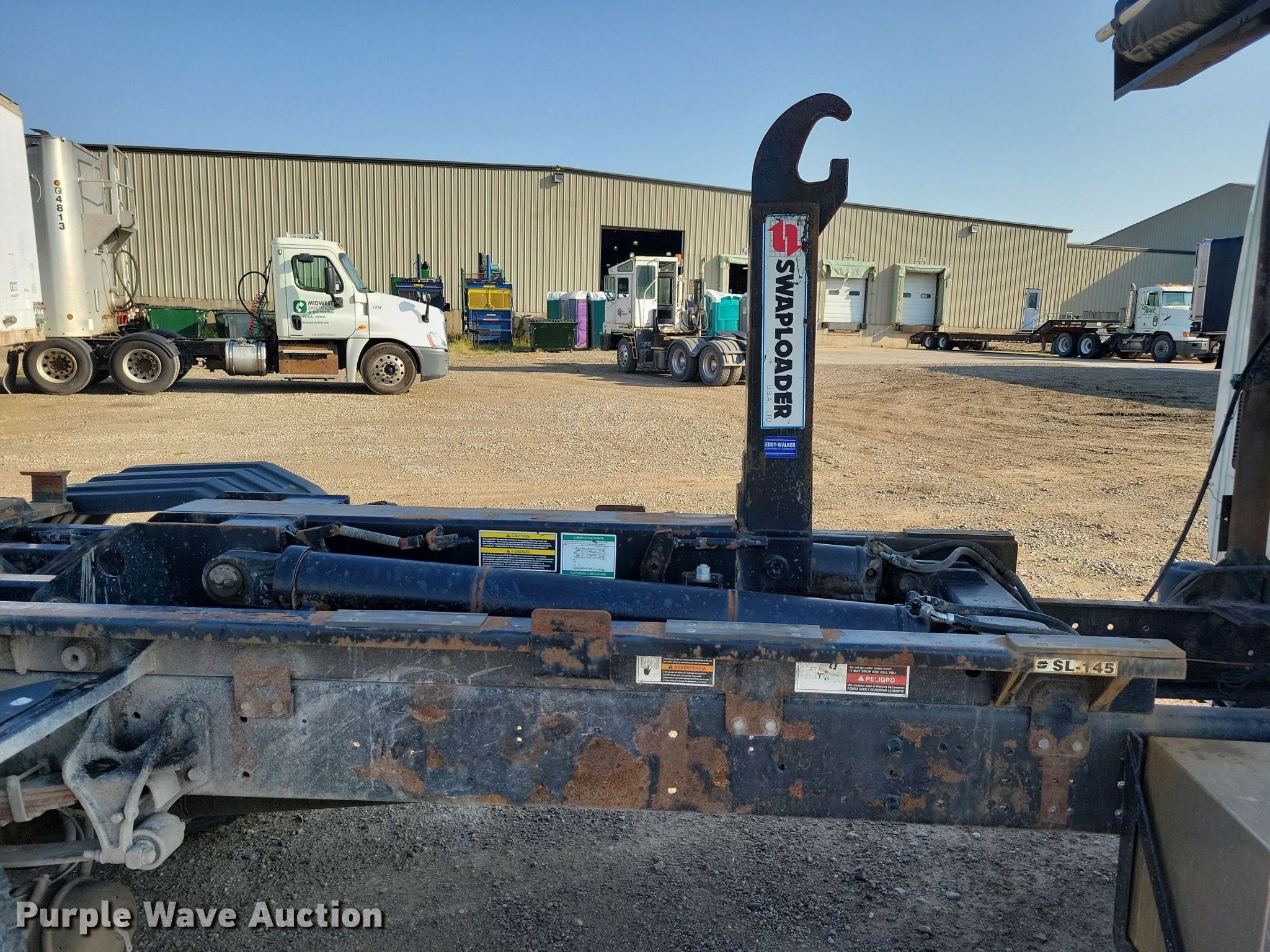 2007 International 4300 hook lift truck. Miles: 173,720 on odometer, VIN: 1HTMMAAN87H366566, Unit #: 114. Engine International DT466, Cylinders: 6, Fuel type: Diesel. Transmission Automatic. Chassis Axles: Single, Suspension: Spring, Brakes: Air, PTO, Wet kit. Interior AC, Heat, Cruise control, Auxiliary controls. Features Hook lift bed Swaploader SL-145, Serial: VO1002, 12' L x 43" W, Roll tarp, Capacity: 14,000 lbs, Ram: Double. Tires Front: 11R22.5, Rear: 275/80R22.5. Notes Dash warning indicator: ABS. Iowa title. Title distribution may be delayed up to 14 days from verification of funds. Midwest Sanitation & Recycling. 815 W 10th St. Pella, IA 50219