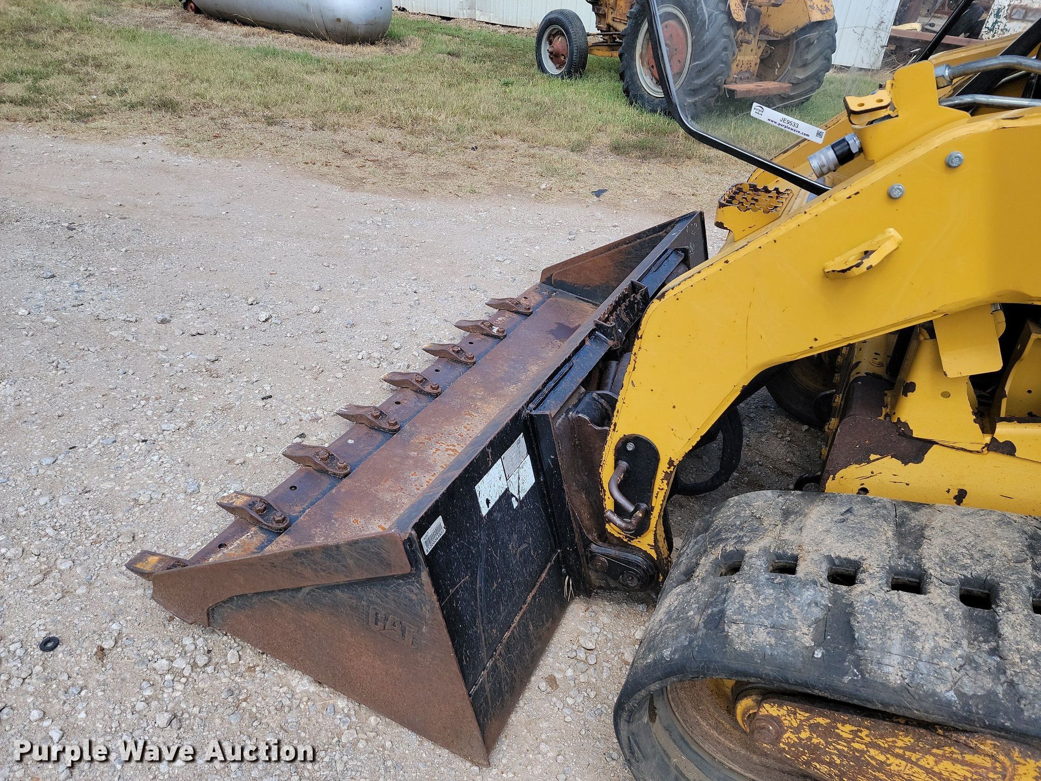 2010 Caterpillar 279C tracked skid steer loader. Hours: 3,820 on meter, Serial: CAT0279CJMBT01136. Engine Caterpillar C3.4T, Displacement: 201cu.in, Cylinders: 4, Fuel type: Diesel, HP: 84, kW: 63. Transmission Hydrostatic, Two speed travel. Operators station Enclosed cab, AC, Heat, Bucket control: Hand, Electronic Monitoring System panel. Features Auxiliary hydraulics, Quick coupler: Hydraulic, Bucket Caterpillar, Width: 79", Cutting edge: Weld-on, Teeth: Bolt-on. Tracks Width: 18". Notes Non-operational radio. Fredonia, KS 66736