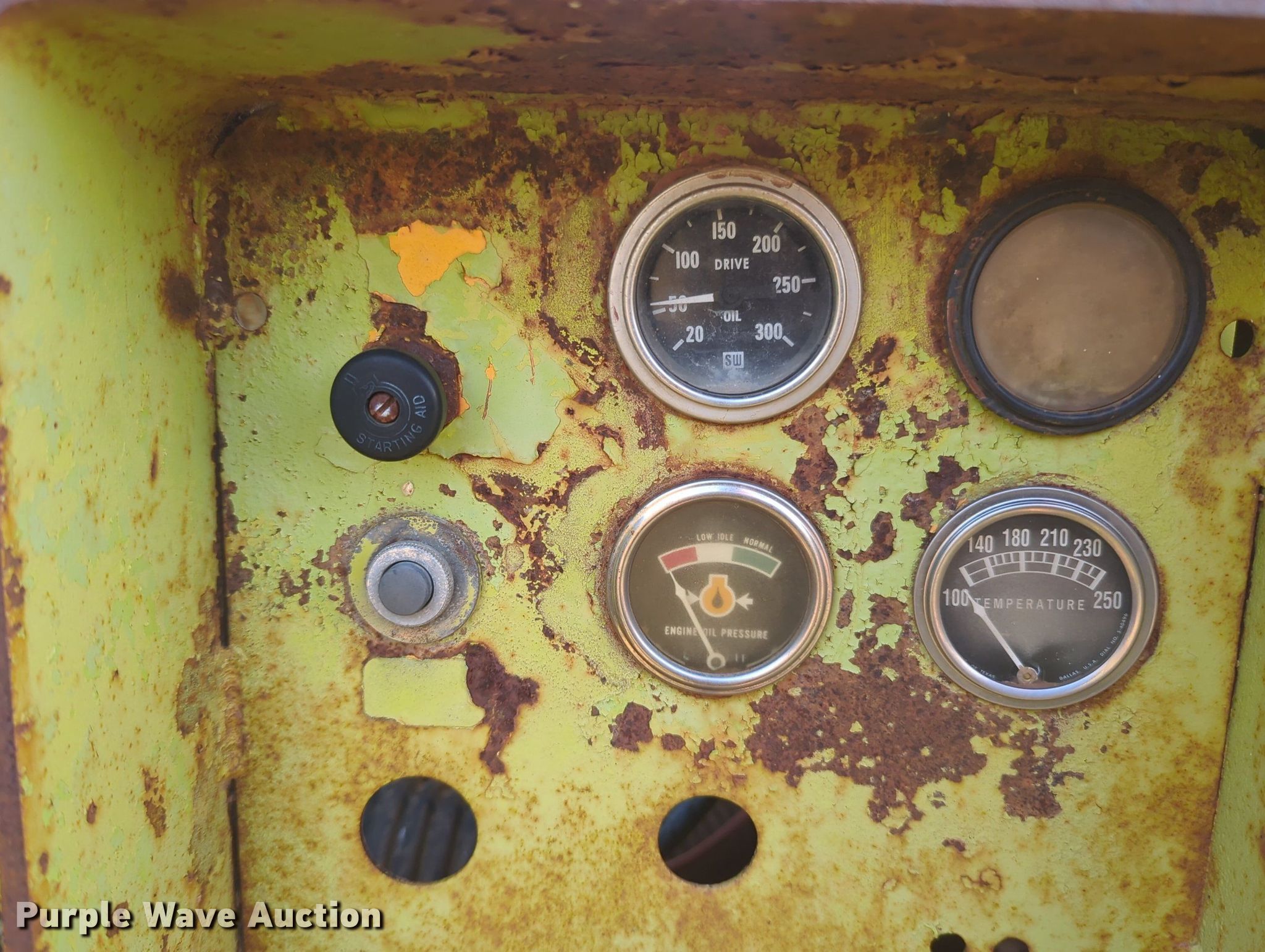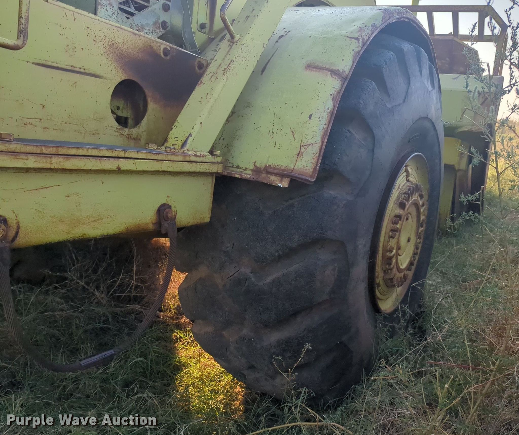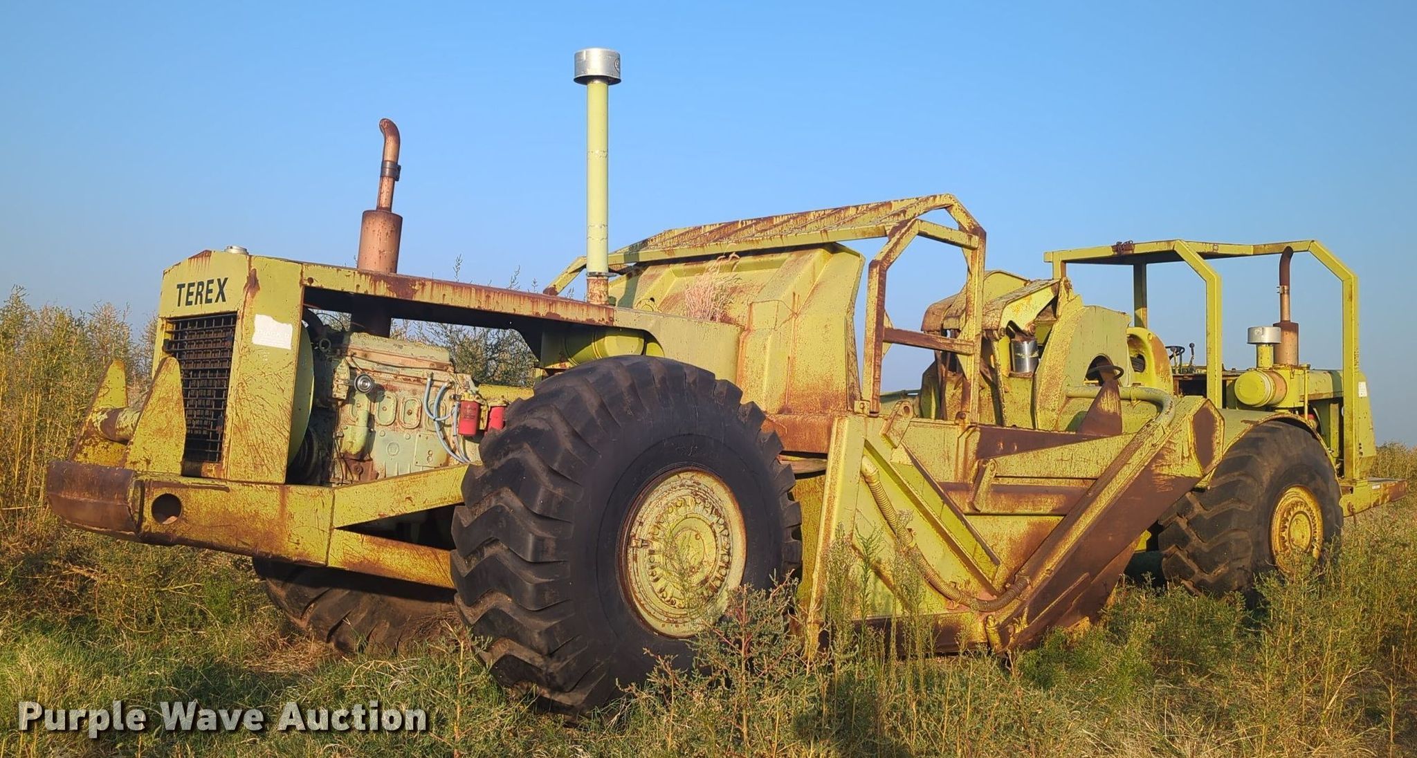 Terex TS14 conventional scraper. Hours: 565 on meter. Engine Detroit Diesel, Cylinders: 6, Fuel type: Diesel. Second engine Detroit Diesel, Cylinders: 4, Fuel type: Diesel. Transmission Powershift, 6F - 1R. Chassis Brakes: Air. Features Bowl capacity: 14 cu.yd., Hydraulic lift, Scraper controls: Lever controls No. of controls: 3. Tires Size: 29.5R25. Notes Dead battery. Goltry, OK 73739