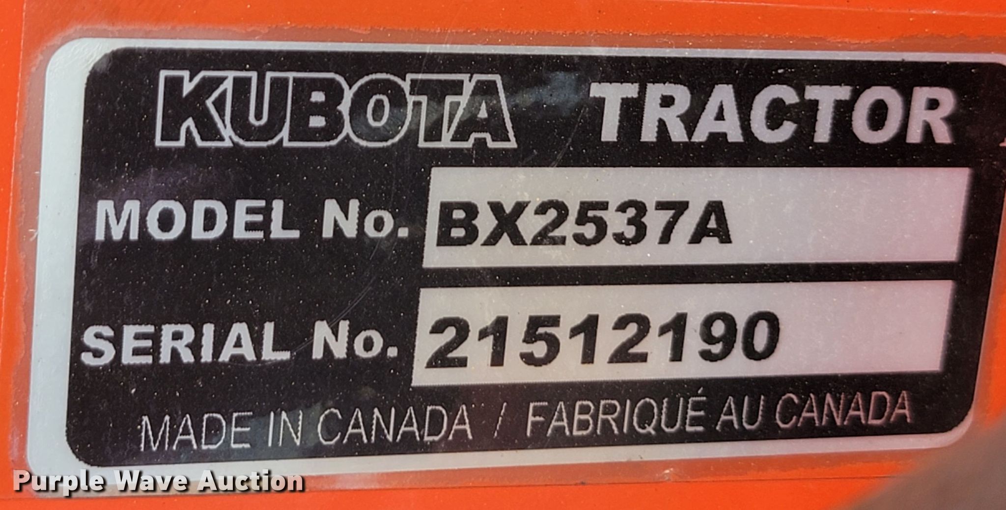Purple Wave is selling a used Ag Tractor Loader or Attach. in South Dakota. This item is a Kubota BX2537A 48" W broom with the following: Serial: 21512190