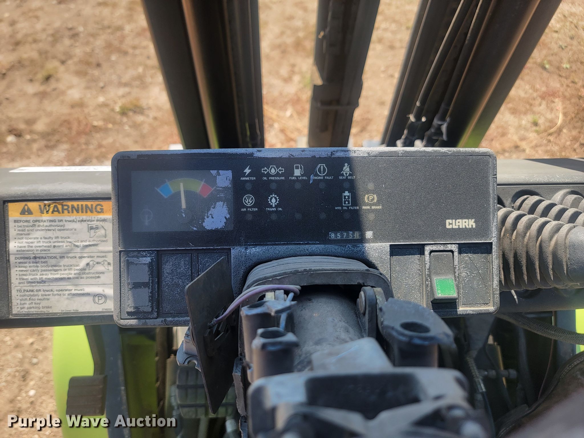 Purple Wave is selling a used Cushion Tire or Pneumatic Forklift in South Dakota. This item is a Clark CCP25 forklift with the following: Hours: 8,575 on meter